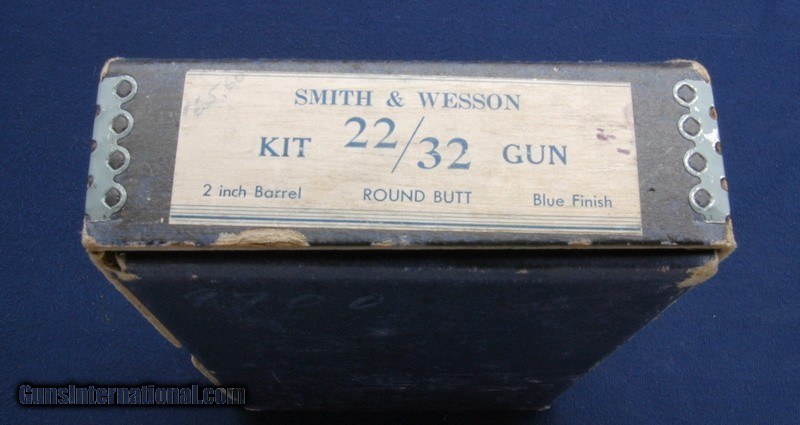 Description: Here's a real cherry. Very, very early (1955) S&W Kit Gun in .22LR. 4 digit serial number, flat latch, orig box in very good condition numbered to the gun. Grips numbered to the gun, very light turn line, looks like fired very, very little if at all. Most of these very early ones were ridden hard and put up wet so to speak. Seeing one in this condition with the box is very, very rare. Peruse the pics and see for yourself! $35 shipping to the lower 48, 3% surcharge for using a CC. If you choose to pay with a personal check, we will hold the item for up to 10 days to make sure that it clears. Please expedite such pymts as we will hold an item on your word for 5 days. SOLD |
