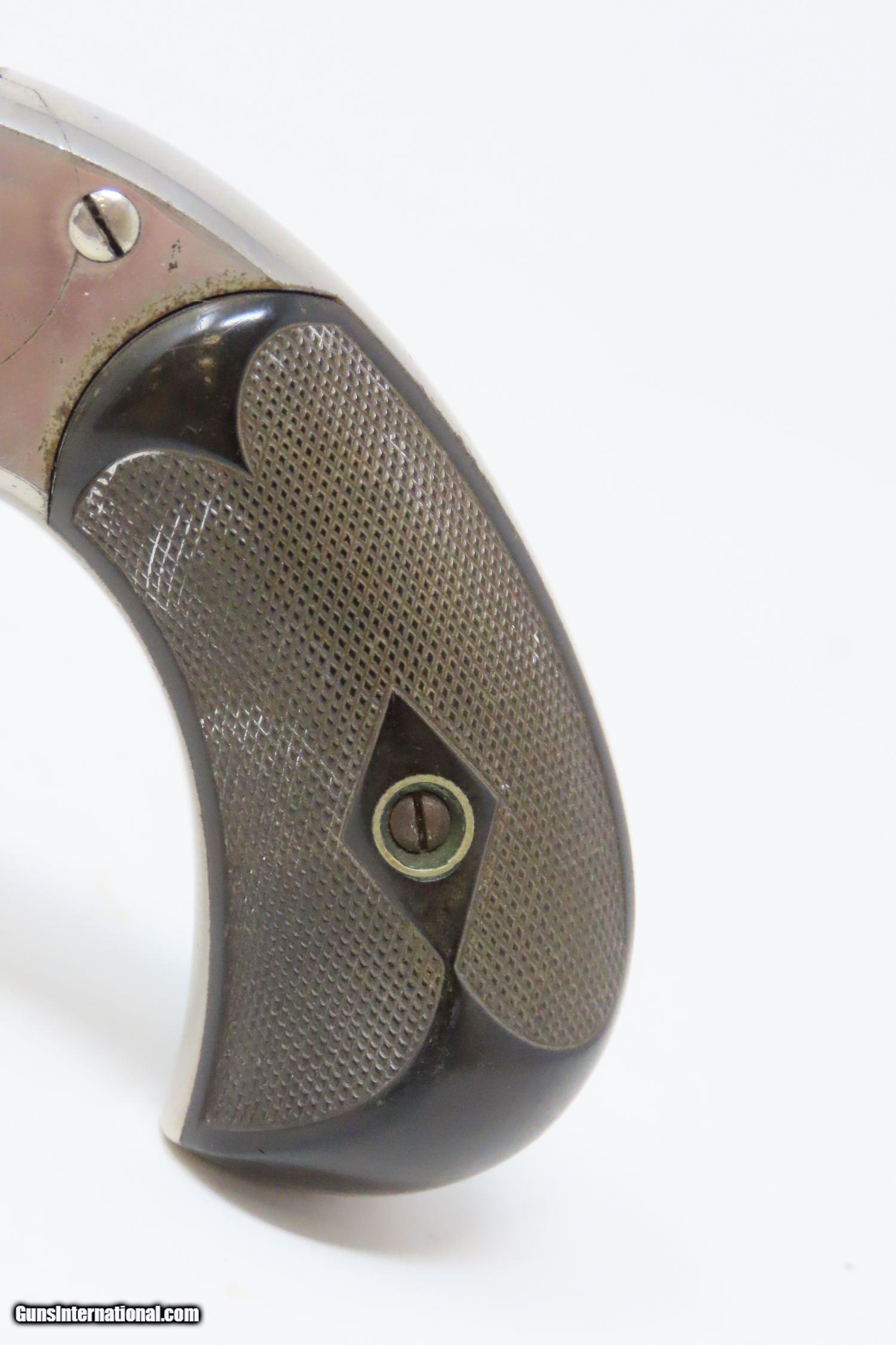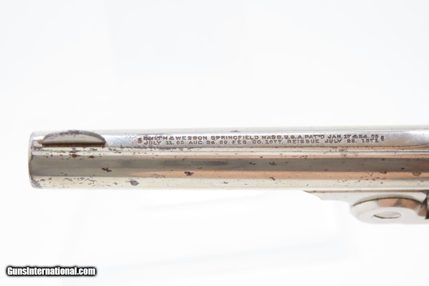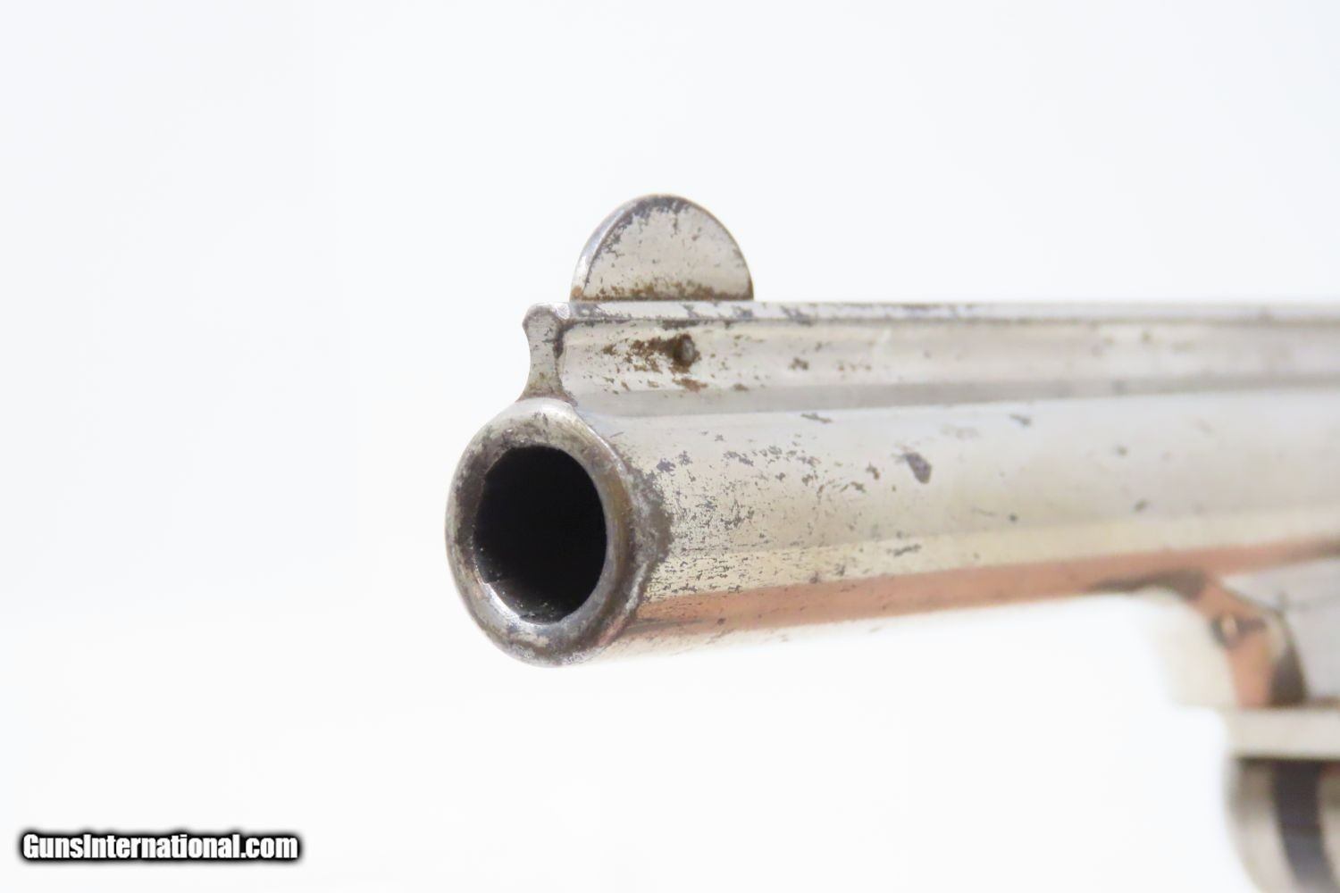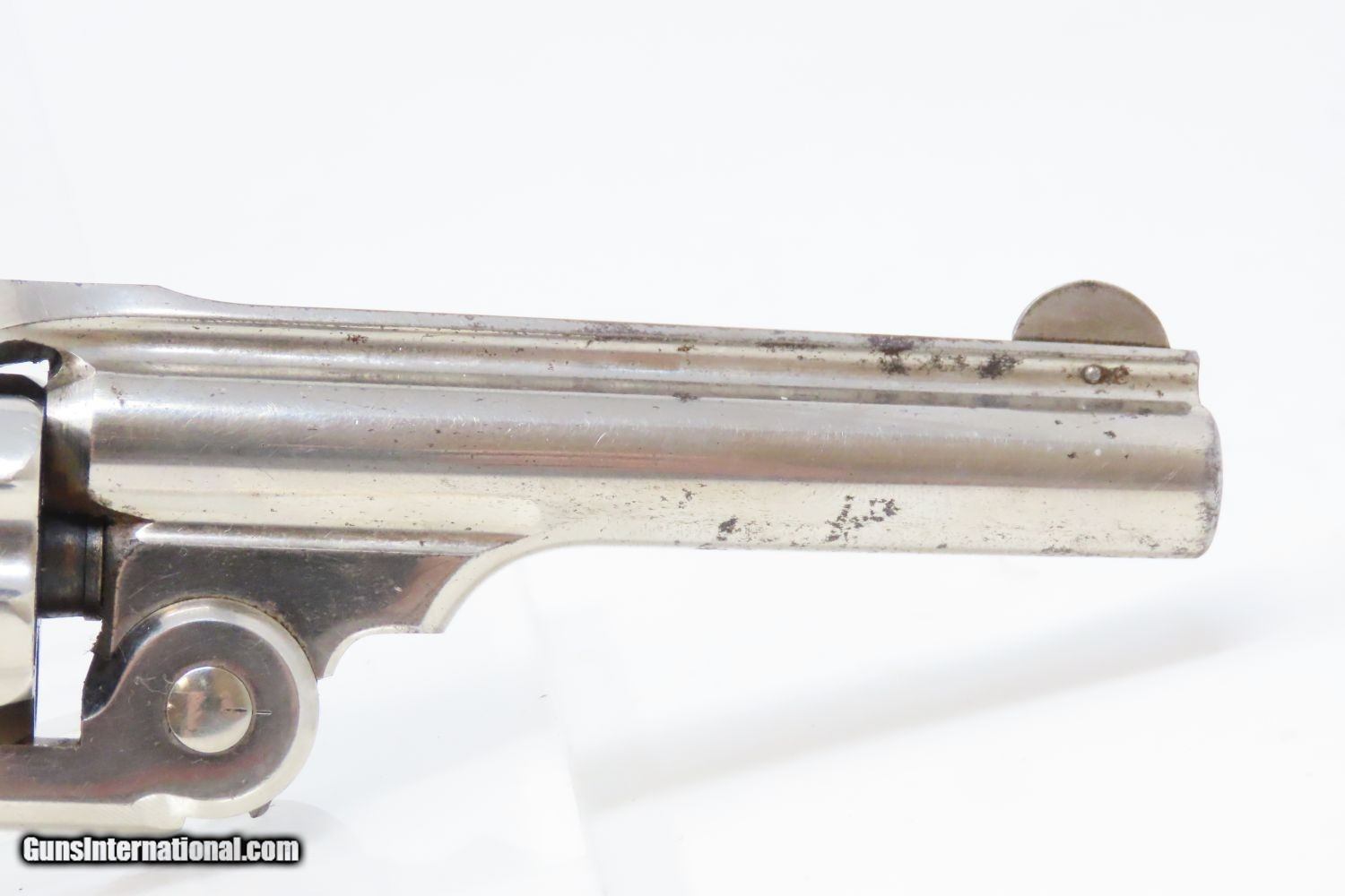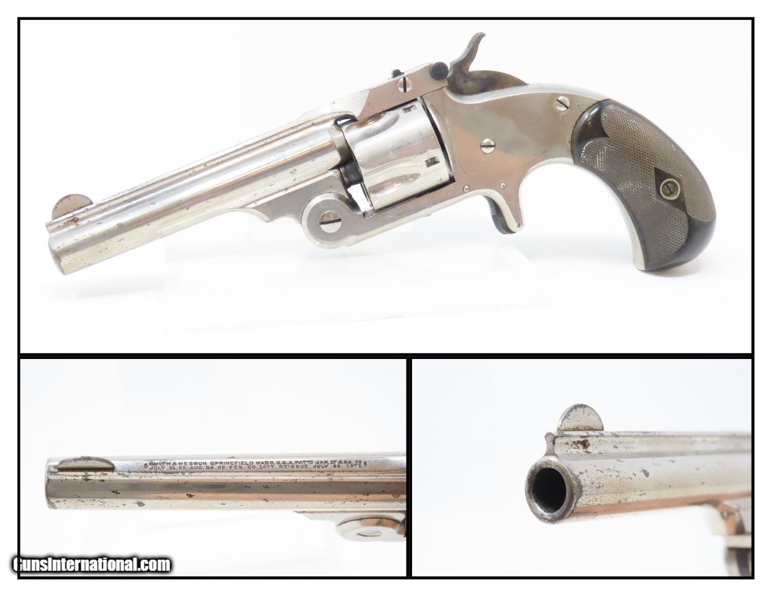 Description: Antique SMITH & WESSON .32 “Wild West” SINGLE ACTION REVOLVER Spur Trigger Model 1-1/2 AUTOMATIC EJECTOR Centerfire Revolver Here we present an antique Smith & Wesson .32 Single Action Revolver, also referred to as the “1-1/2 Frame Centerfire Revolver”, manufactured circa 1878 in Springfield, Massachusetts. Smith & Wesson manufactured approximately 97,599 of these revolvers during its 14-year production run. This model represented the first .32 S&W centerfire caliber top-break revolver that automatically ejected spent cartridges upon opening. Similar in appearance to the Model 1-1/2 2nd Issue, this model came with a 5-shot fluted cylinder and bird's-head grip of either wood or checkered hard rubber. This model pivots downward on opening and features a rebounding hammer that made the weapon much safer to fully load. Not everyone was carrying Colt Single Action Army revolvers on their hips. Most folk were carrying small revolvers like this in their pants, jacket, or vest pockets, or purses in the case of women. The Smith & Wesson revolvers were among the best and the quality is both seen and felt in this example. The overall condition is very fine. Excellent action. Bright original nickel finish and case colors. Very bright bore with nice rifling. Firm, good grips. A beautifully preserved S&W from the 1870s! Own the original! This is a legitimate antique and not a reproduction. Barrel is 3-1/2 inches. Caliber: .32 S&W Overall condition as seen in photos. Very Fast. Very Safe. FREE SHIPPING WORLDWIDE. Delivered directly to your door by express mail! Guaranteed AUTHENTIC & Includes CERTIFICATE OF AUTHENTICITY. ancestryguns $1345 #210094 SOLD Antique: Yes |