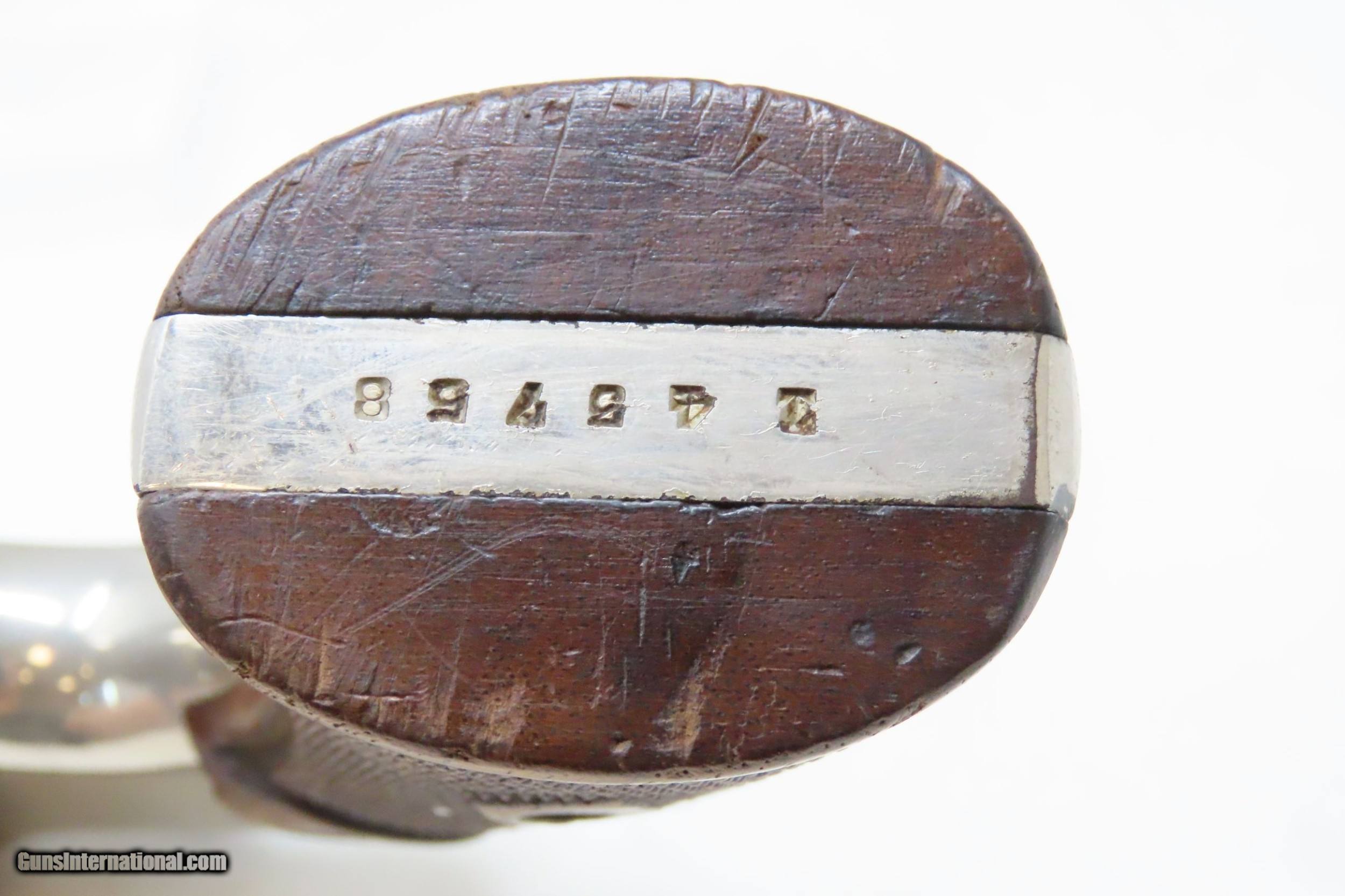 Description: c1930s SMITH & WESSON .32-20 WCF “Hand Ejector” Model 1905 6” Revolver C&R Nice Fourth Change CONCEAL & CARRY Revolver Here we present a C&R Smith & Wesson .32-20 WCF Hand Ejector Model 1905 Fourth Change Revolver manufactured circa the late 1930s with a production run between 1915 and 1940 in Springfield, Massachusetts. The serial number range of these ran from 67,701 to 144,684 before production was stopped in 1940. The “Hand Ejector” models were the first time S&W made a revolver with a swing-out cylinder. Interestingly, there is no cylinder latch, but the action opens by pulling forward on the exposed portion of the cylinder pin. This frees the spring tension and allows the cylinder to swing free. Another novel feature of this model is the cylinder stop location, which is located in the top of the frame over the cylinder. This revolver is chambered for .32-20 Winchester Centerfire cartridges, has a 6-shot fluted cylinder and was offered with 3.25", 4.25" and 6" long barrels. The overall condition is fine. Original nickel finish and case colors. The numbers match. The action is excellent. The bore is shiny bright with sharp rifling. The grips are in great shape. This firearm is classified as a Curio & Relic. Barrel is 6 inches. Caliber: .32-20 Winchester Center Fire Overall condition as seen in photos. Very Fast. Very Safe. FREE SHIPPING. Will need to be sent to your local FFL or C&R licensee. This firearm is classified as a Curio & Relic. Guaranteed AUTHENTIC & Includes CERTIFICATE OF AUTHENTICITY. ancestryguns $1250 #226813 SOLD Curio/Relic: Yes |