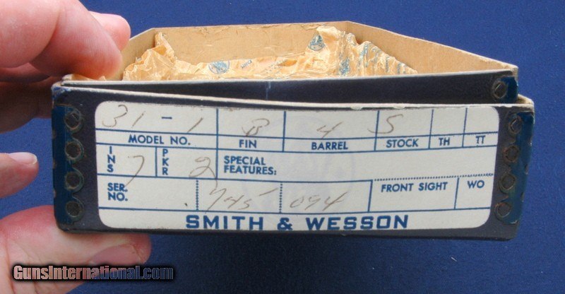 Description: Early flat latch S&W 31-1, made in 1964. Collector condition with the original box. Minty in and out. Right grip panel numbered to the gun. Mint bore and action. Priced to sell! $40 shipping to the lower 48, 3% surcharge for using a CC. If you choose to pay with a personal check, we will hold the item for up to 10 days to make sure that it clears. Please expedite such pymts as we will hold an item on your word for 5 days. SOLD Handgun Caliber: .32 S&W Long (.32 Colt New Police) |