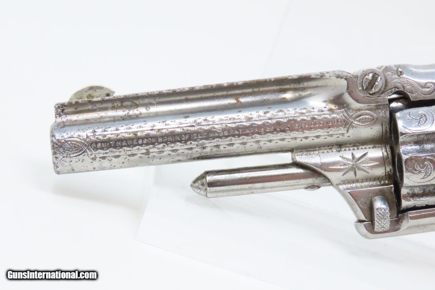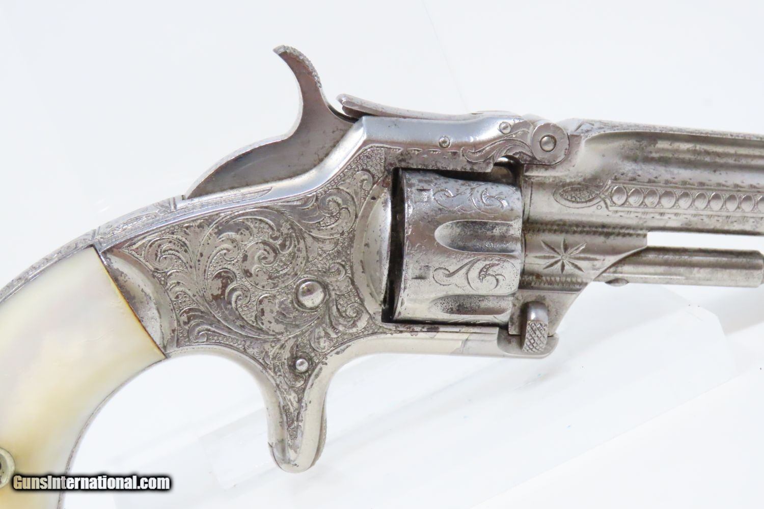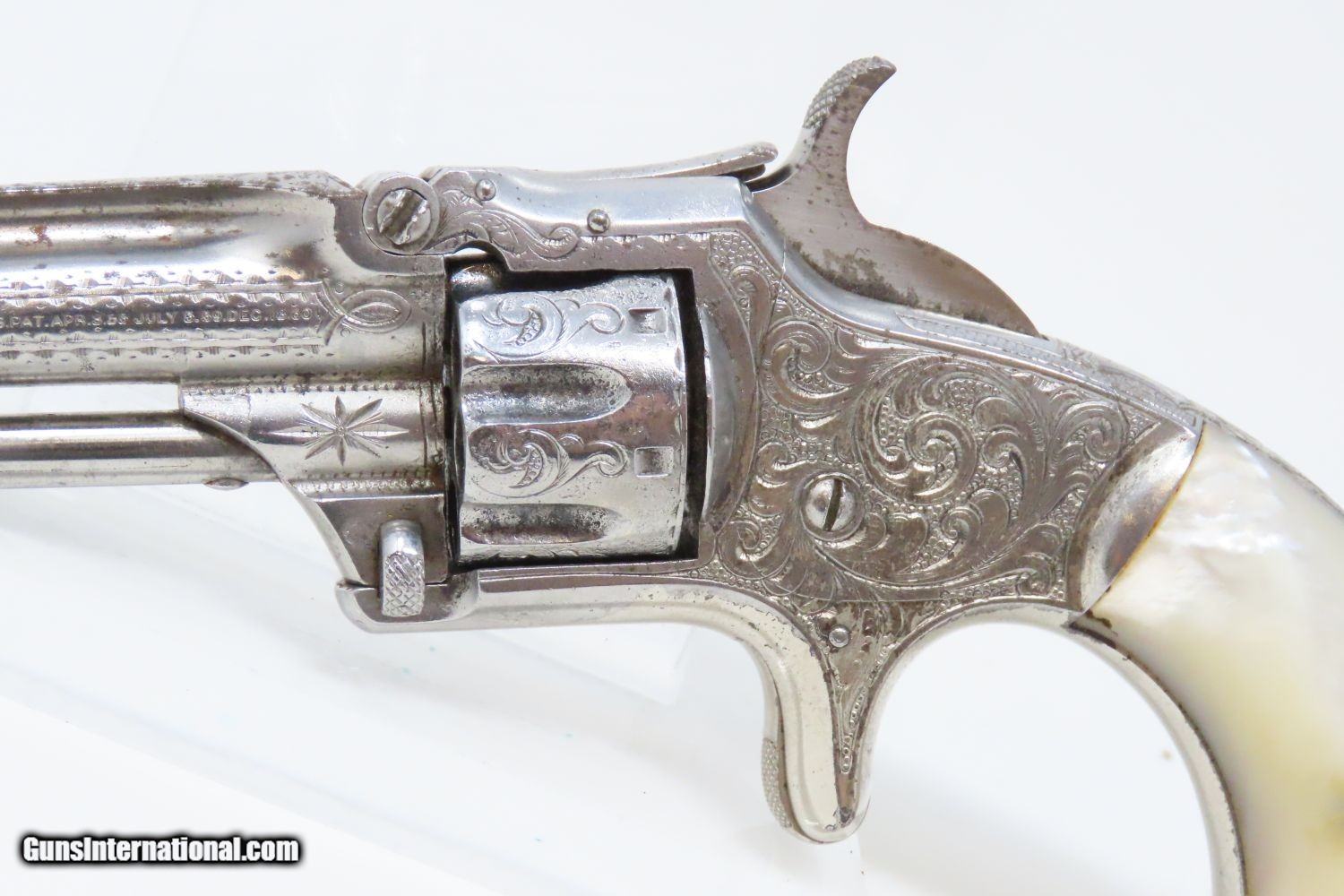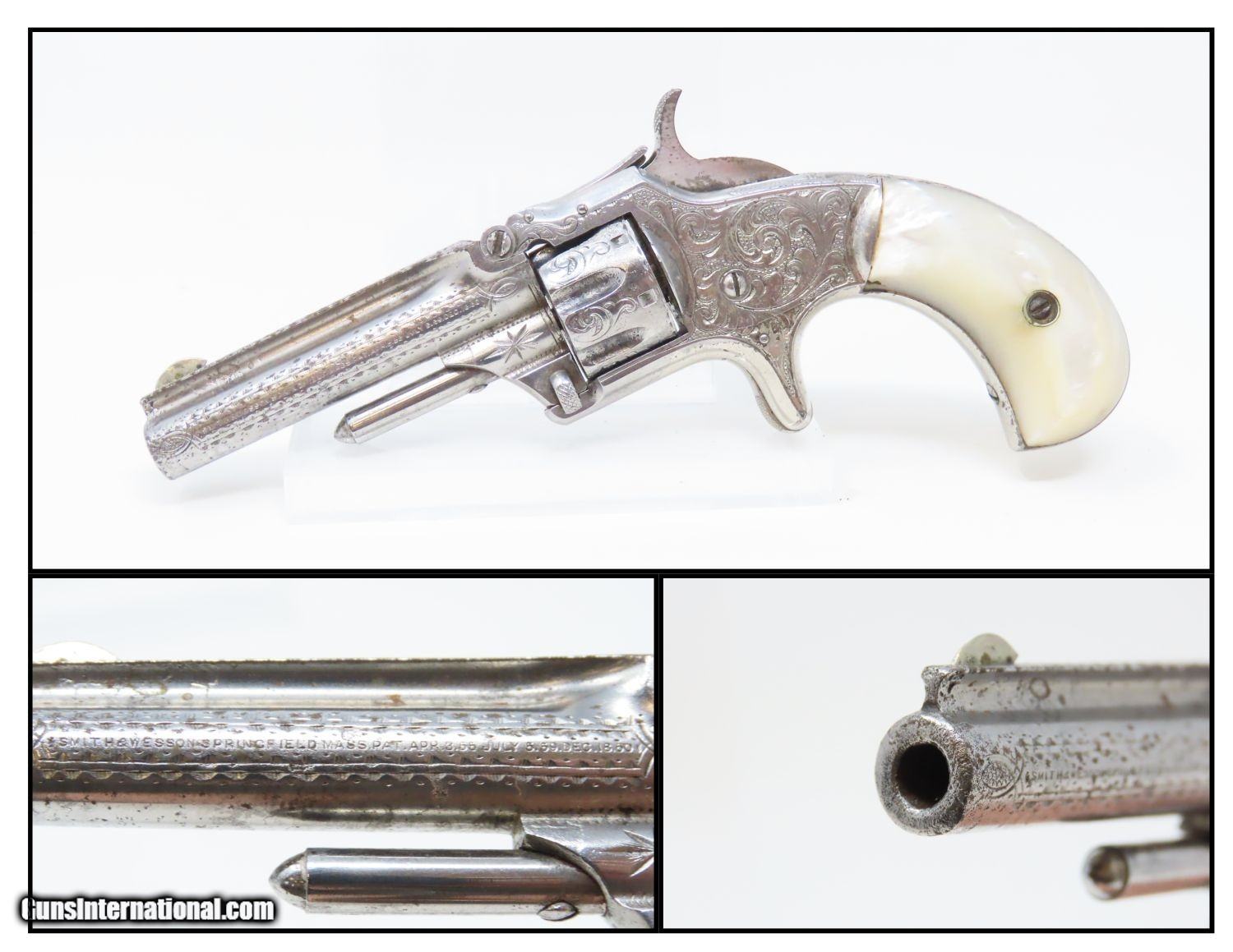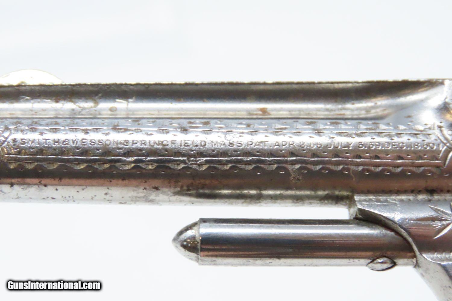 Rare Short-Barreled ENGRAVED Nickel PEARL 1870s SMITH & WESSON No1 Revolver