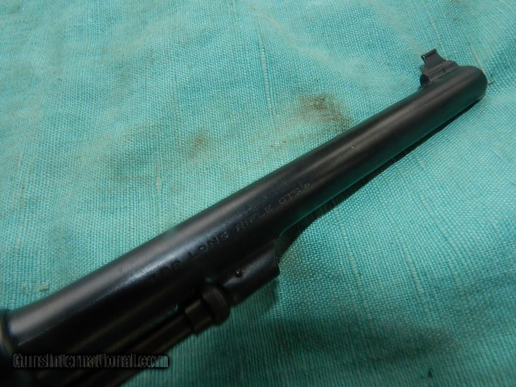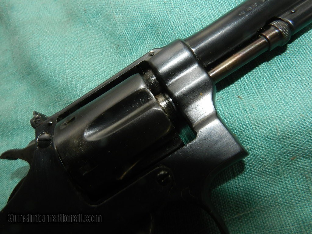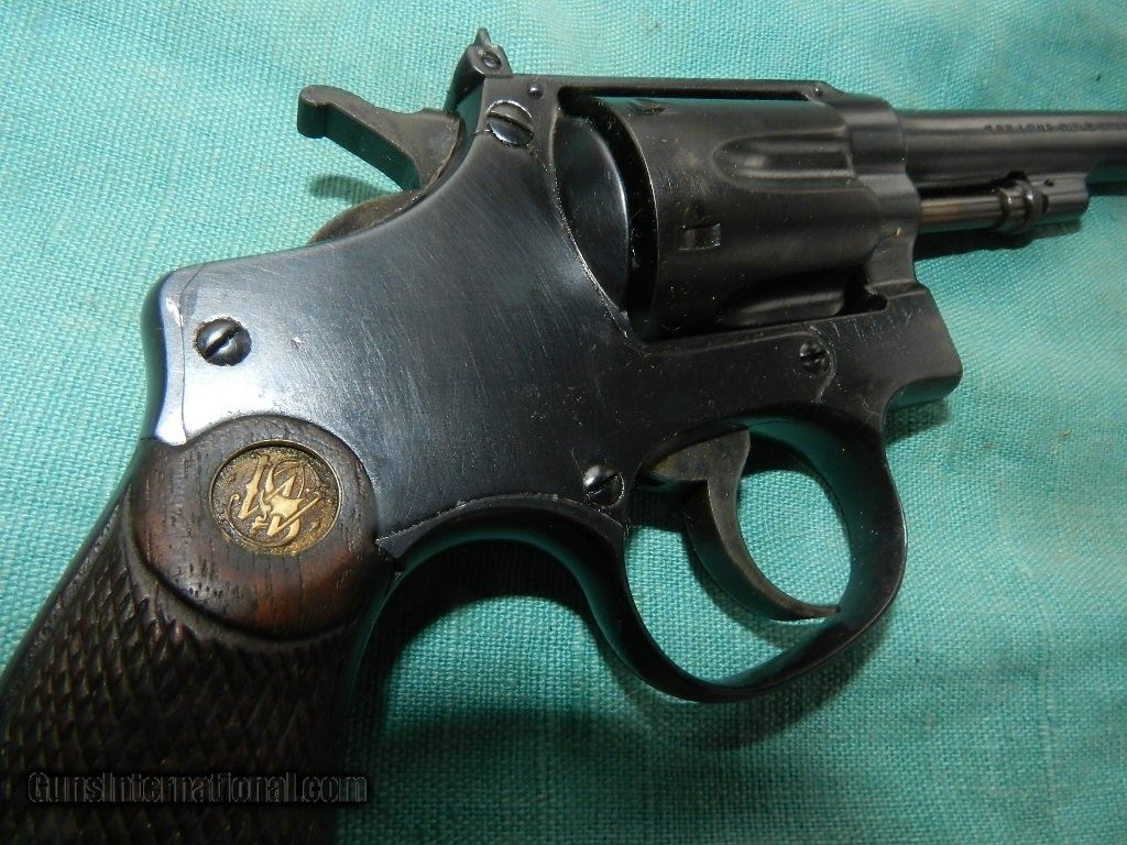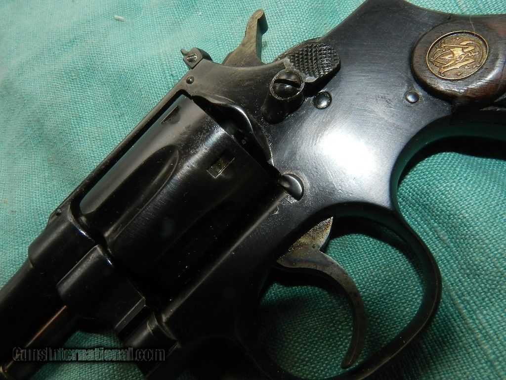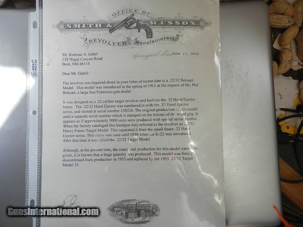 Description: A S&W .22lr cal. model 22/32 revolver with a SN 2796ZZ, 22 LR, 6" barrel with a lightly frosted bore showing a small bulge about 1 1/2" from the muzzle from inside not that noticable, and would dnot affect the accuracy of this gun. The metal surfaces of this 1919 made "Bekeart" style revolver retain about 93% blue, and appears to be a professional reblue, but not modern hot salts blue /black coloring. The service trigger and hammer retain bold case-hardened colors with operational wear. The diamond checkered replacement walnut factory stepped service grips with gold S&W medallions rate about very good showing diamond point wear and other handling marks, but still show up good,without any serious damage. The revolver features a Paine bead front sight and adjustable rear sight. All appropriate parts are correctly numbered to the gun. A factory letter is included and indicates this gun was shipped as described above, except with target extension grips, on October 10, 1919, to William H. Hoegee Co. of Los Angeles, California. Overall a rare gun, but not too expensive for a collector to own and enjoy shooting.Shipping may be higher than stated as shippers raise their prices twice year without notice! When buying a gun always have it examined by a competent gunsmith before shooting. To buy a gun from me you must get a direct email for me, with details, and shipping cost. We don’t have a web site .I prefer money orders or a check. Item ships when funds come in. If you can only pay with a card let me know. I try to keep guns affordable, which means I make less money than most dealers. You won’t get altitude sickness, or nose bleed, with my prices! I consistently have the best selection of older guns If you attempt to buy, you must still contact us for details . Best to email to buy. Sometimes a local person can stop buy and purchase before the gun is removed. Sometimes not home to get calls. Some guns are required shipment to a gun dealer near you for a transfer to you when it arrives. Otherwise many older or black powder guns ship to your door. With the widest selection of older guns at great prices, We don’t have a store, and sell on the internet only. I’m easy to get along with. Thank You. SOLD Curio/Relic: Yes |