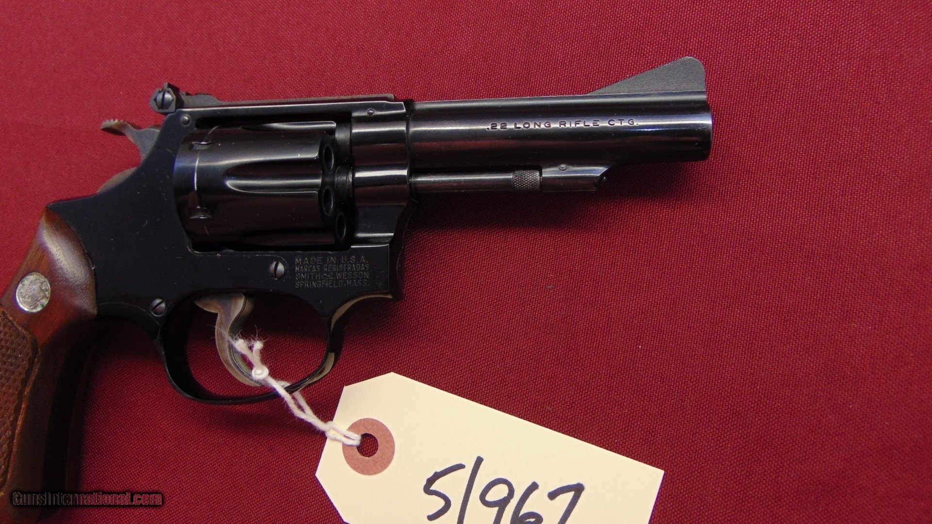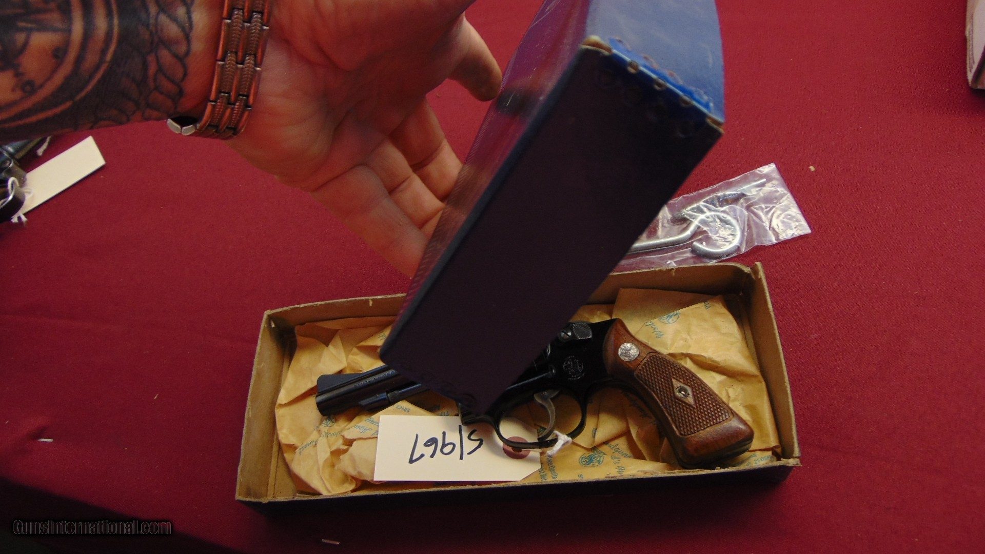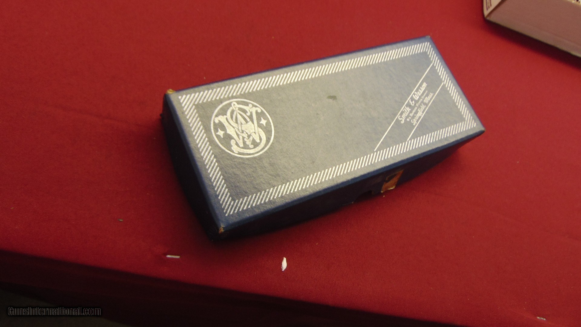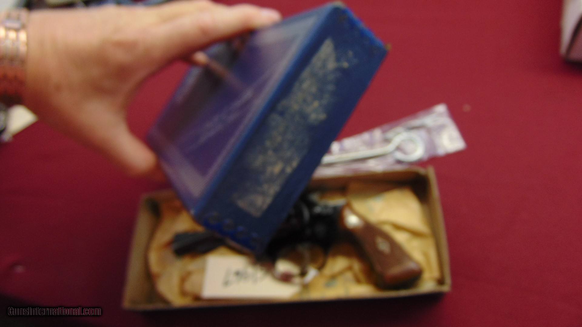 Description: SMITH & WESSON MODEL 43 22/32 AIRWEIGHT REVOLVER KIT GUN SER# 115378, CALIBER 22LR, 3 1/2 INCH PINNED BARREL WITH AN EXCELLENT BRIGHT BORE. EXCELLENT BLUE FINISH WITH ONLY A CYLINDER LINE. A NICE SOLID GUN THAT LOOKS LIKE IT WAS USED VERY LITTLE. ADJUSTABLE REAR SIGHT, ORIGINAL EARLY DIAMOND CHECKERED GRIPS . MUST BE SHIPPED TO FFL LIC . ADD 35.00 UPS GROUND SHIPPING FOR RIFLES ADD 35.00 UPS 2ND DAY AIR SHIPPING FOR HANDGUNS EASTERN BRANCH FIREARMS Questions e-mail or call Glen at Eastern Branch Firearms 207-215-5021 Fax number 207-588-7605 TERMS – PLEASE READ BEFORE I DO NOT HAVE A LAYAWAY OPTION ( I DO ACCEPT CREDIT CARDS ) -- I GET ALOT OF REQUEST FOR TRADES, I WOULD PERFER NOT TO DO TRADES ON MY INTERNET LISTINGS. LEGAL REQUIREMENT- Modern firearms must be transferred through a licensed FFL dealer in your area. to supply a signed copy of local dealer’s license before shipment will be made. A C&R License is acceptable for C&R firearms only (guns determined to be C&R’s by ATF and guns known to be at least 50 years old). California law will NOT allow shipment of C&R handguns direct to a C&R holder in the State of California, a 01 FFL LIC. dealer must be used. Antique firearms require to supply proof of age. Some areas still require an FFL transfer for antique & black powder firearms (New Jersey, NYC, etc.) Large capacity magazine restrictions: New Jersey - 15 round maximum for semi-automatic firearms only. California - 10 round maximum for all magazines. Maryland - 20 round maximum for all magazines. Massachusetts - over 10 rounds. Hawaii - 10 round maximum for all handgun magazines. PAYMENT OPTIONS- We accept money orders, cashier’s checks , bank checks. sorry no personal checks. We accept all major credit cards please add 3% to the ’s cash discount price.(Maine Residents to pay 5% sales tax) .Handguns and long guns do need to be shipped separate. PLEASE do not send payment via FED EX . USPS & UPS are fine. Thank you. We include a signed copy of our FFL with each firearm shipped SAFTY NOTICE- Buyer is solely responsible for determining that a used gun is safe to shoot. The firearms offered have not been test fired but have been given a visual inspection only for purposes. It is a requirement that every used firearm is inspected by a qualified gunsmith before firing. By , the buyer agrees to hold seller harmless against damages, injury, or death caused by defective merchandise. RETURN POLICY- All firearms come with a 3-day non firing , non messing with ( turning srews ,taking apart,removing parts, scoping. firing, cleaning or messing with in anyway) inspection/return privilege.Inspection is based on a visual review of the gun to confirm the gun is in the condition stated. In the case of a return, buyer pays all shipping charges & if paid for with a credit card buyer absorbs the 3% credit card charges . So please ask questions BEFORE you bid. Thanks for Looking and Good Luck!! U.S. sales only, no exports…this includes antiques. I will ship to third party for exporting- SOLD |