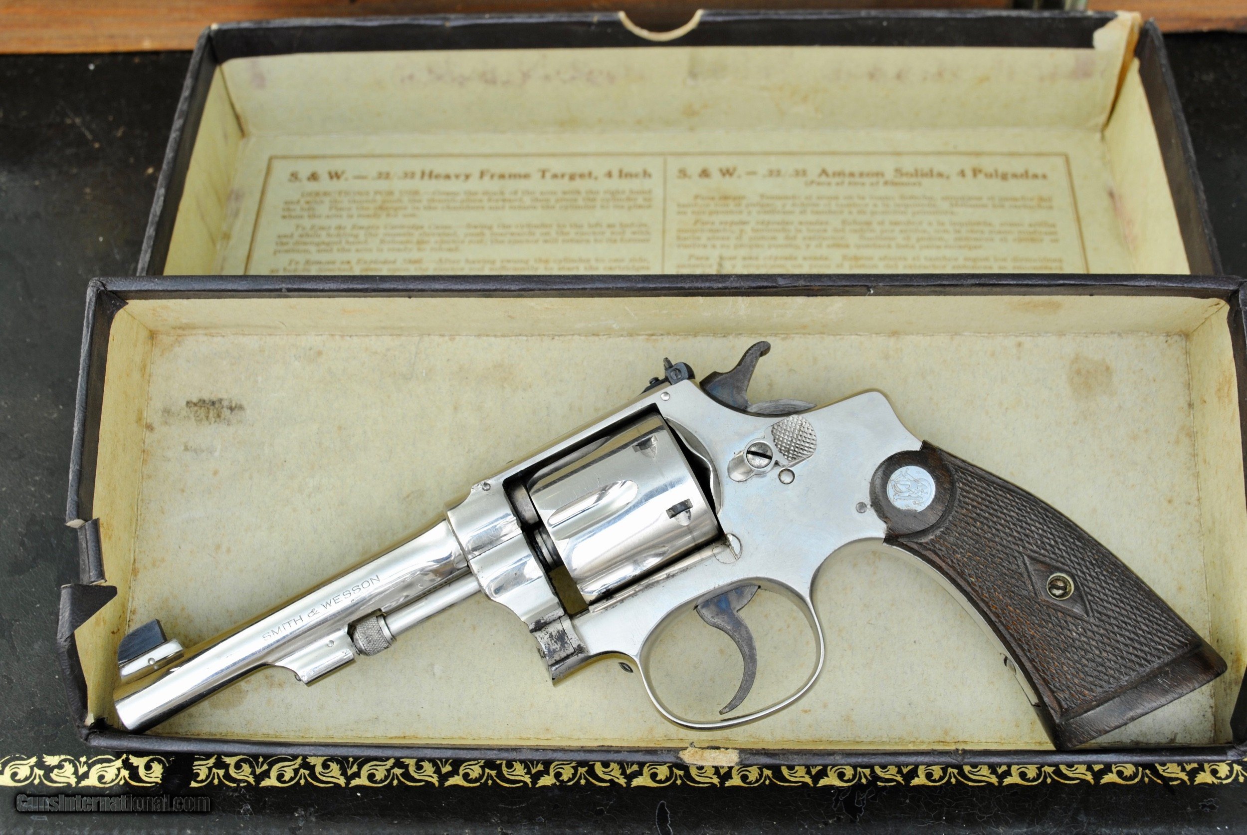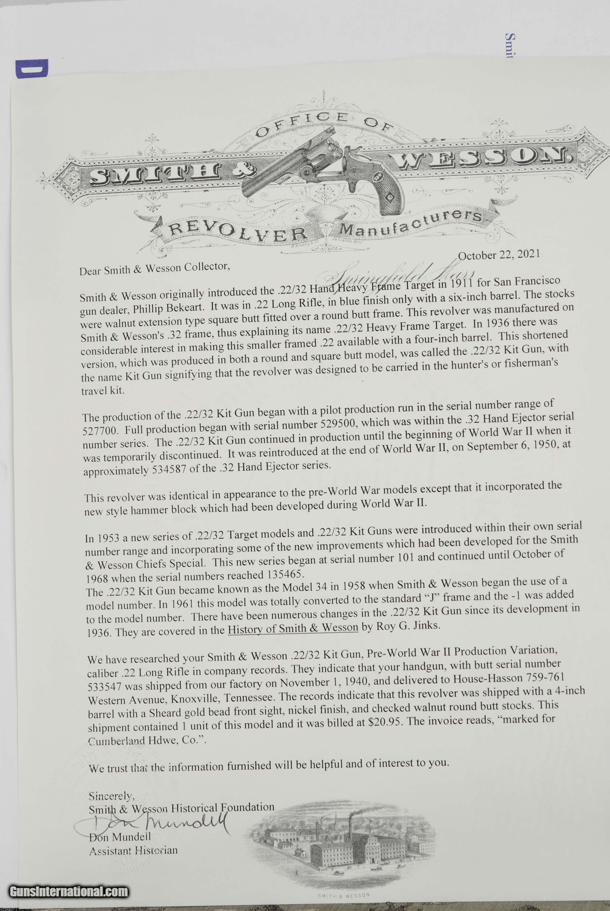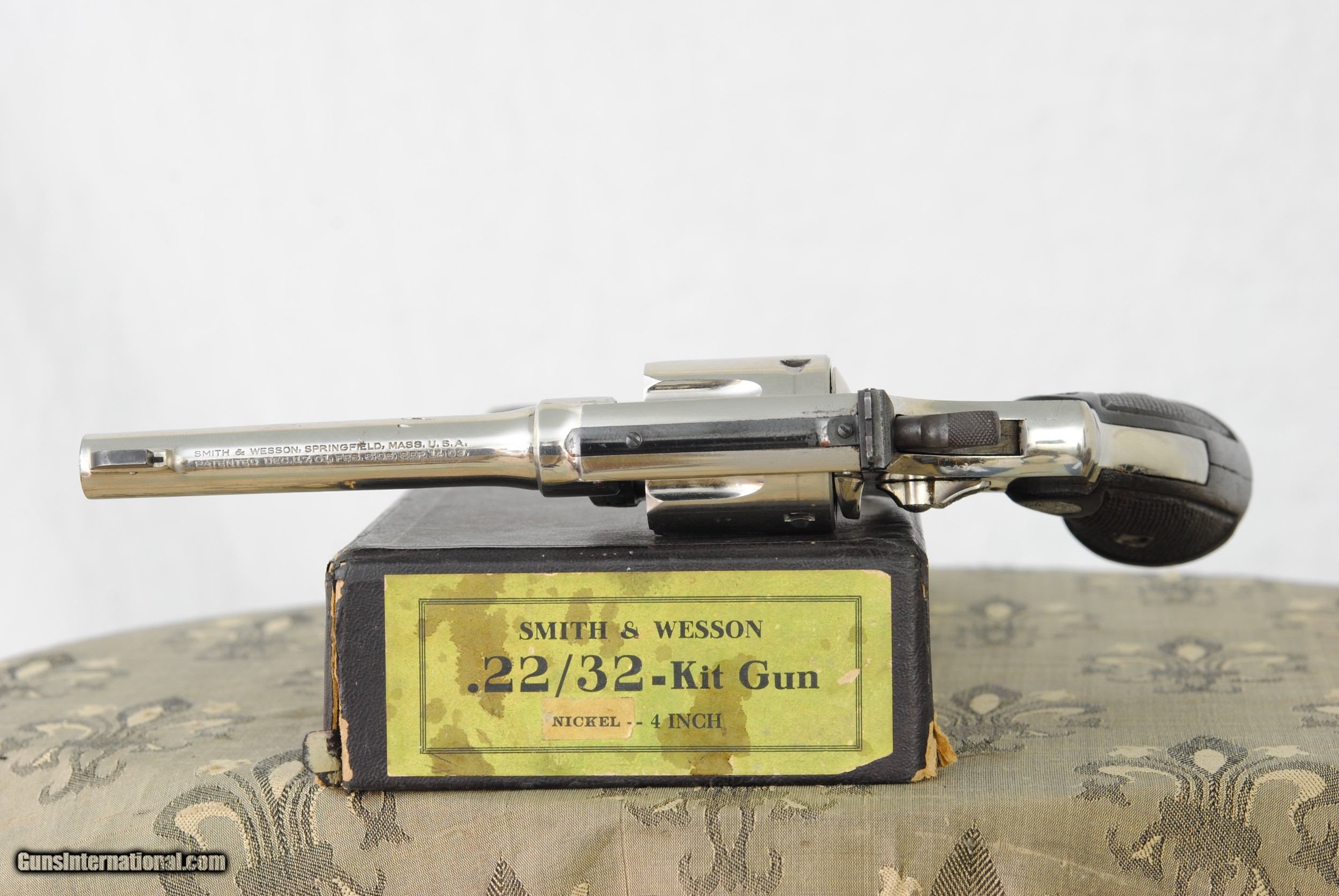 SMITH & WESSON PRE WAR KIT GUN IN 22 LR - 1940 PRODUCTION - NICKEL PLATED WITH BOX - RARE PIECE COMPLETE WITH FACTORY LETTER - SALE PENDING