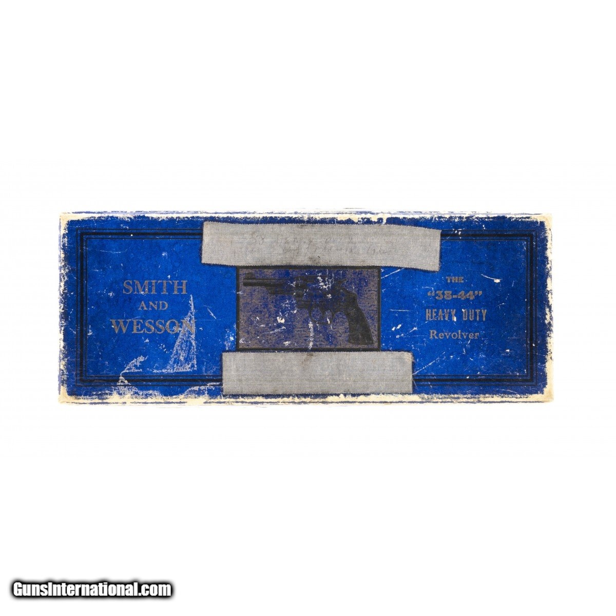 Pre-war Heavy Duty revolver with 5"" barrel and blue finish. Has about 95% original bright blue finish with a bit of muzzle and edge wear. The bore and action are excellent. The grips are excellent with sharp checkering and are numbered to the gun. Comes with original box, which shows some wear. A great example of a pre-war Heavy Duty.