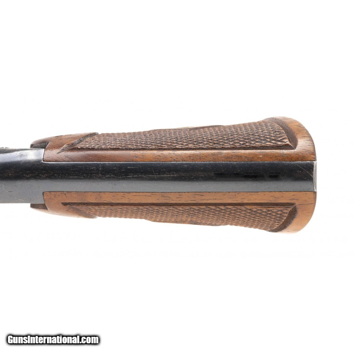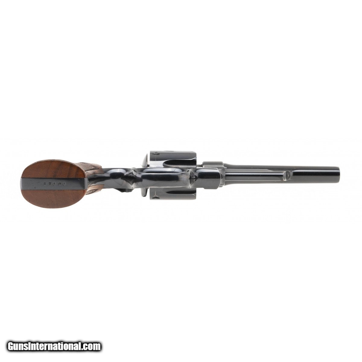 Description: " Pre-war Heavy Duty revolver with 5"" barrel and blue finish. Has about 95% original bright blue finish with a bit of muzzle and edge wear. The bore and action are excellent. The grips are excellent with sharp checkering and are numbered to the gun. Comes with original box, which shows some wear. A great example of a pre-war Heavy Duty. SOLD |