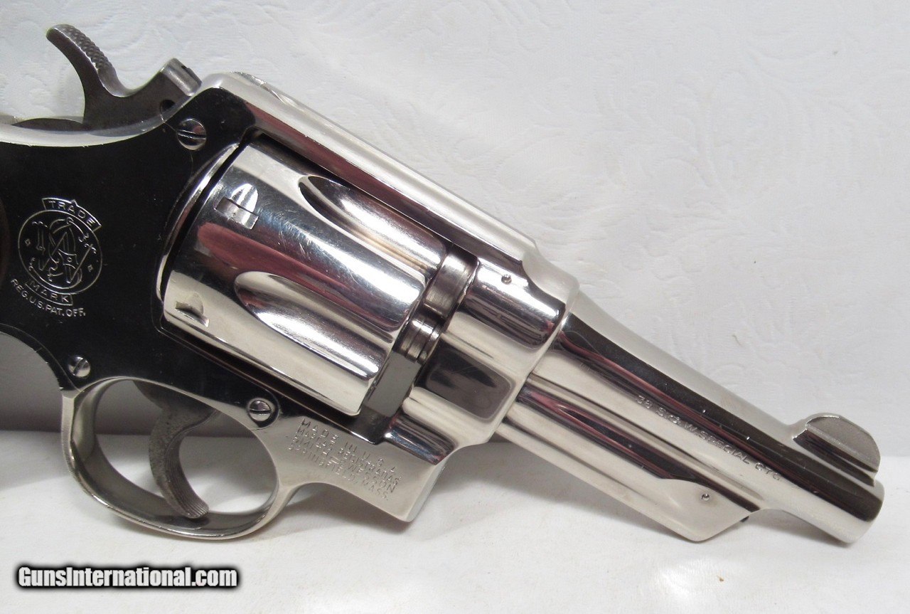 Description: Smith & Wesson 38/44 Revolver; Serial No. S 89869; Nickel Finish; .38 Special Caliber with 4” Barrel; Marked on Backstrap “AUSTIN POLICE DEPARTMENT 19”; All Numbers Match except grips; All Austin P.D. 38/44’s were re-nickeled by Smith & Wesson; All in Great Shape as restored; Perfect Action and Bore; Scarce 70 Year-Old Historic Revolver; See Description in Smith & Wesson Collectors Association Journal Volume 45, Number 2 – Summer 2011; See All Photos for Condition; No Texts; Call (254)541-5765 or Email Only; PERSONAL PROPERTY of Harold Wieser; Price: $1,975 + $45 S&H Via USPS PRIORITY MAIL; Payment Address: Harold Wieser - 1466 U.S. Hwy 77 - Rosebud, TX 76570; SEND PAYMENTS VIA USPS PRIORITY MAIL; BEWARE of SCAMS!!! – DO NOT SEND MONEY or CORRESPONDENTS ELECTRONICALLY UNLESS YOU HAVE SPOKEN to HAROLD WIESER FIRST! 254-541-5765 SOLD Manufacturer: Smith & Wesson Model: 38/44 Serial Number: S 89869 |