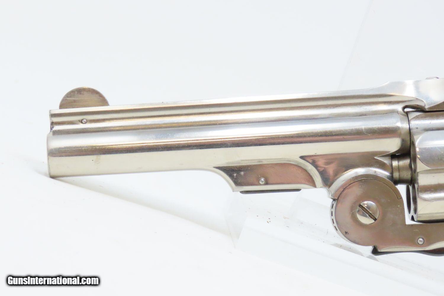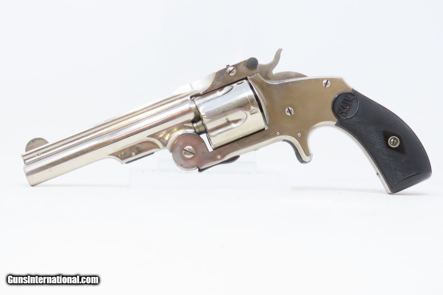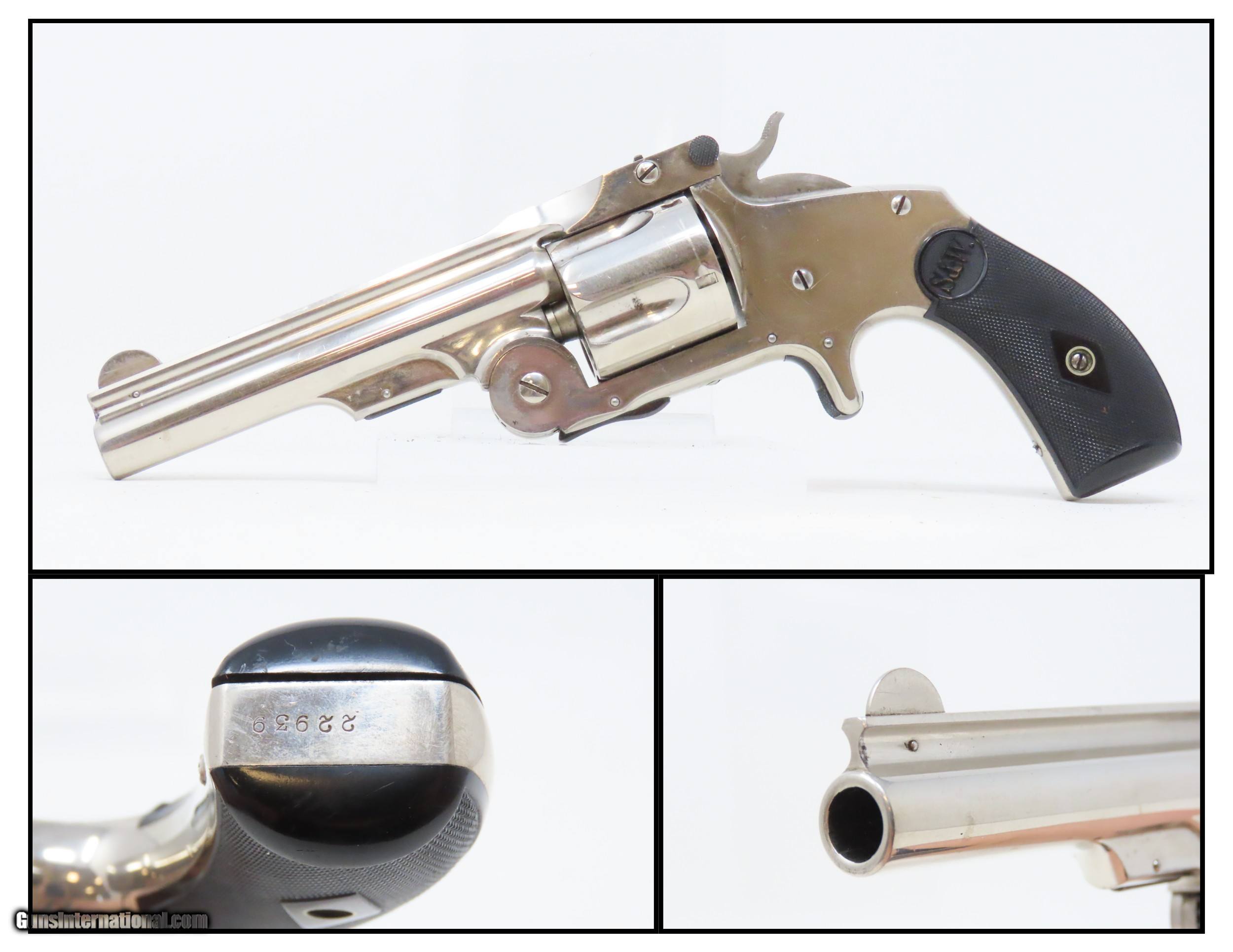 Description: FINE “BABY RUSSIAN” Antique SMITH & WESSON .38 S&W Single Action Revolver c1877 .38 Caliber Small Form of the Russian! Here we present an antique Smith & Wesson “Baby Russian” .38 S&W Single Action Revolver, made circa 1877 in Springfield, Massachusetts. Serial numbers range from 1 through to 25,548 between 1876 and 1877. It was made in the likeness of the famous No. 3 Russian also by S&W. Rather than a military sidearm, this was made for the armed citizen and was therefore large enough to effectively defend oneself though small enough to conceal and carry comfortably. The overall condition is very fine. Original nickel finish with blued accents and case colors. The action is strong and tight all the way around. The bore is blindingly bright and in excellent shape. Both grips are firm with sharp checkering containing minimal handling wear. Matching numbers. Here is a pristine Baby Russian revolver to display and collect! Own the original! This is a legitimate antique and not a reproduction. Barrel is 4 inches. Caliber: .38 S&W Overall condition as seen in photos. Very Fast. Very Safe. FREE SHIPPING WORLDWIDE. Delivered directly to your door by express mail! Guaranteed AUTHENTIC & Includes CERTIFICATE OF AUTHENTICITY. ancestryguns $2315 #201512 SOLD Antique: Yes |