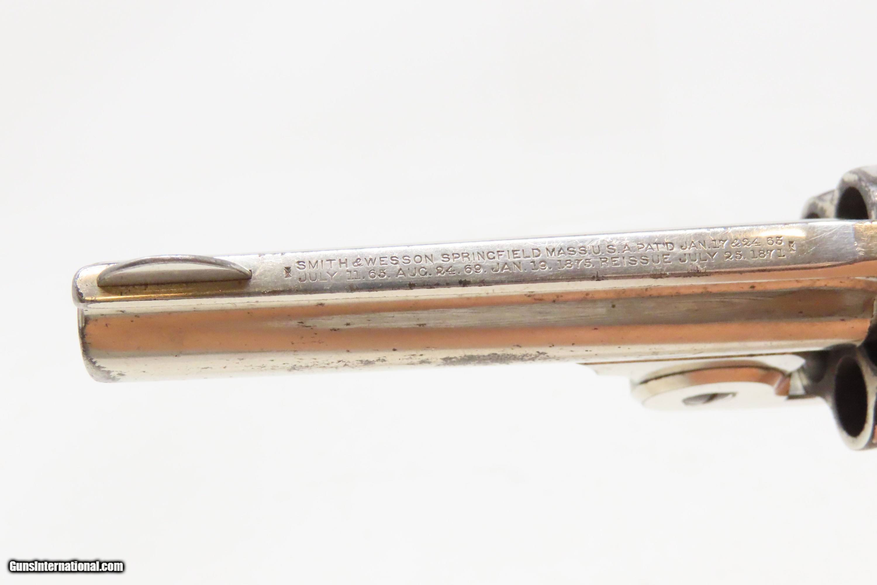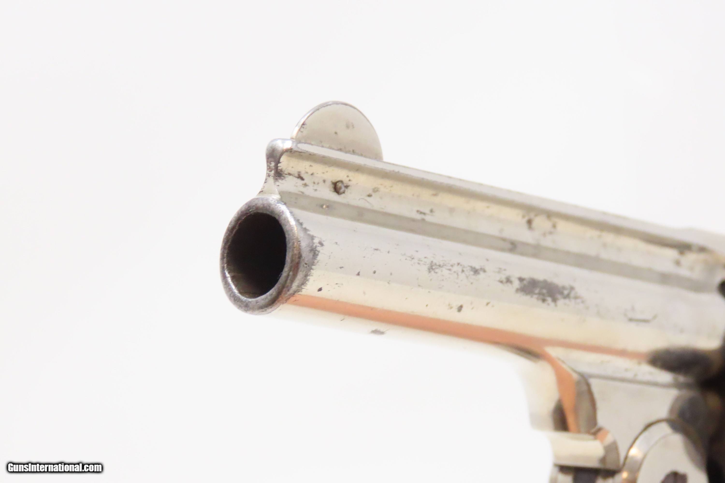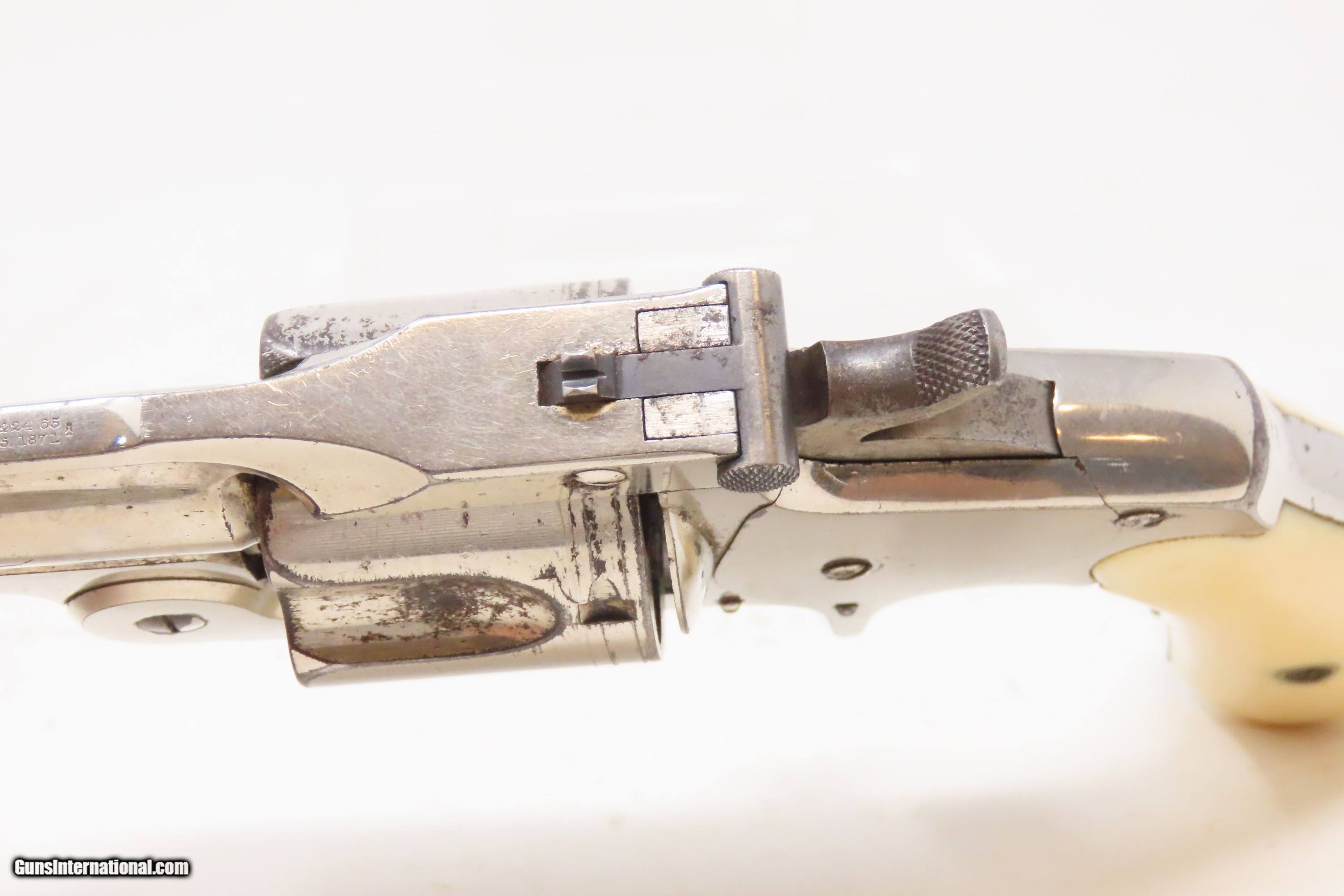 Description: FRONTIER Antique SMITH & WESSON .38 Single Action Revolver ANTIQUE IVORY Very Nice OLD WEST Hideout “BACK UP” Revolver Here we present an antique Smith & Wesson .38 Single Action Second Model Revolver, also referred to as the Model 2, Number 2 Revolver, manufactured 1877 through 1891 in Springfield, Massachusetts. Smith & Wesson manufactured approximately 108,225 of these revolvers between during its 14-year production run. This revolver was a more powerful .38 Caliber follow up to the No. 1, which was Smith & Wesson’s first metallic cartridge firearm. It utilized the idea of the “bored through cylinder”, which was patented by Rollin White and subsequently exclusively licensed by Smith & Wesson. This concept has forever changed revolving firearms design, and is the same idea used in revolvers today. S&W, via Rollin White himself, aggressively sued any patent infringers and were able to hold their monopoly on the American market for cartridge revolvers from about 1857 to 1870, whereupon their patent expired. The results were a very profitable business, a broke Rollin White, and a grudging U.S. Chief of Ordnance Alexander Dyer, who was still angry in 1870 about not being able to use the technology during the Civil War. The U.S. governmentended up giving Colt their contracts since they valued the larger .44 caliber in the Colt 1860 Armies over the .32 caliber full sized No. 2 Armies. With the exception of an improved and shortened extractor assembly and availability of additional barrel lengths of 3.25", 4", 5", 6", 8" and 10", this model is quite similar in appearance to the 1st Model. This was a good example of what someone would have used to conceal & carry in a coat pocket, because not everyone carried a Colt Single Action Army. The overall condition is fine. Original finish. Excellent action. The bore is semi-bright with rifling. Both grips are good with light handling wear and a small chip is missing on the top left. Numbers match. Markings are sharp. Own the original! This is a legitimate antique and not a reproduction. Barrel is 3-1/4 inches. Caliber: .38 S&W Overall condition as seen in photos. Very Fast. Very Safe. FREE SHIPPING WORLDWIDE. Delivered directly to your door by express mail! Guaranteed AUTHENTIC & Includes CERTIFICATE OF AUTHENTICITY. ancestryguns $1050 #234113 SOLD Antique: Yes |