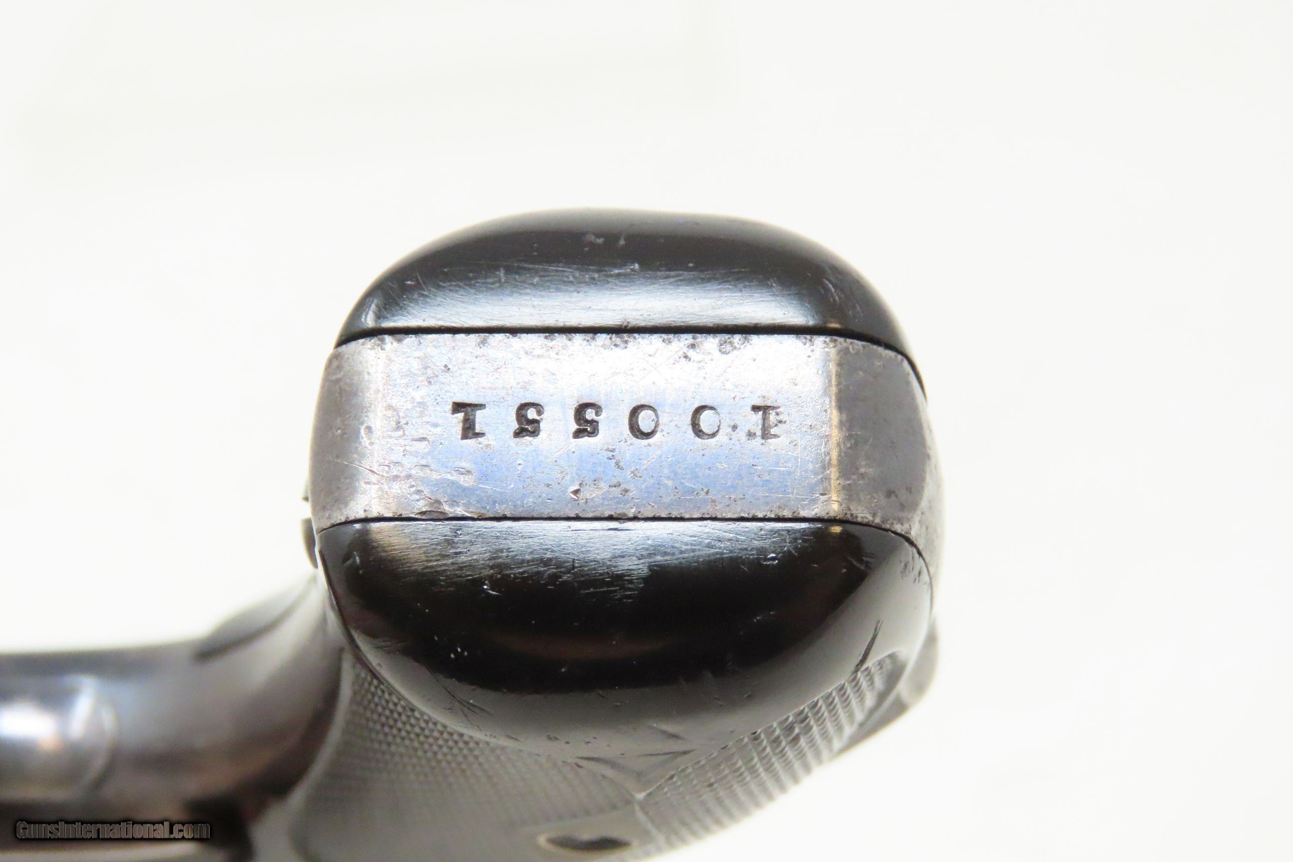 Description: NEW DEPARTURE Antique SMITH & WESSON .38 Safety Hammerless “LEMON SQUEEZER” VERY NICE 5-Shot Smith & Wesson Top Break Revolver Here we present an antique 3rd Model Smith & Wesson .38 Caliber Double Action Safety Hammerless Revolver, made between 1890 and 1898 in Springfield, Massachusetts with a serial number range of 42484 through 116002. The Smith & Wesson Safety Hammerless models were produced from 1887 (1888 for the 32) to just before World War II. They were chambered in either .32 S&W or .38 S&W with a five-shot cylinder. They were most often produced with a 2-inch, 3-inch, 3.25 inch, or 3.5-inch barrel. But some 6" barreled versions are known to exist. This revolver was made to be a simple, compact and reliable firearm that one could carry in a pocket or a holster around the turn of the 20th Century. This revolver features an internal hammer design to remove risk of snagging or stopping the action. There is a grip safety built into the back of the grip frame. The frame is a top-break design that activates the automatic ejector. These are very nice features from the turn of the 20th Century! They were known as "The New Departure" to reflect the company's new approach to designing revolvers. These were called “Lemon Squeezers” because of the grip safety that had to be “squeezed” to fire the revolver. These were petite and handy little guns that chambered 5 cartridges, perfect for the pocket and enough to get out of most scrapes. With gangsters, and career criminals running rampant, this example would have been the “pocket advantage” a person needed. The overall condition is fine. Original finish. Excellent action. The bore is bright with sharp rifling. Legible markings. Both grips are fine with light handling wear. Numbers match. Own the original! This is a legitimate antique and not a reproduction. Barrel is 3-1/4 inches. Caliber: .38 S&W Overall condition as seen in photos. Very Fast. Very Safe. FREE SHIPPING WORLDWIDE. Delivered directly to your door by express mail! Guaranteed AUTHENTIC & Includes CERTIFICATE OF AUTHENTICITY. ancestryguns $1350 #230800 SOLD Antique: Yes |