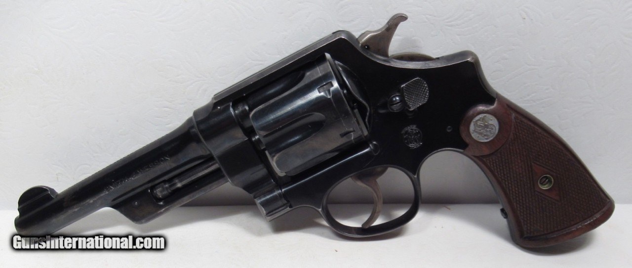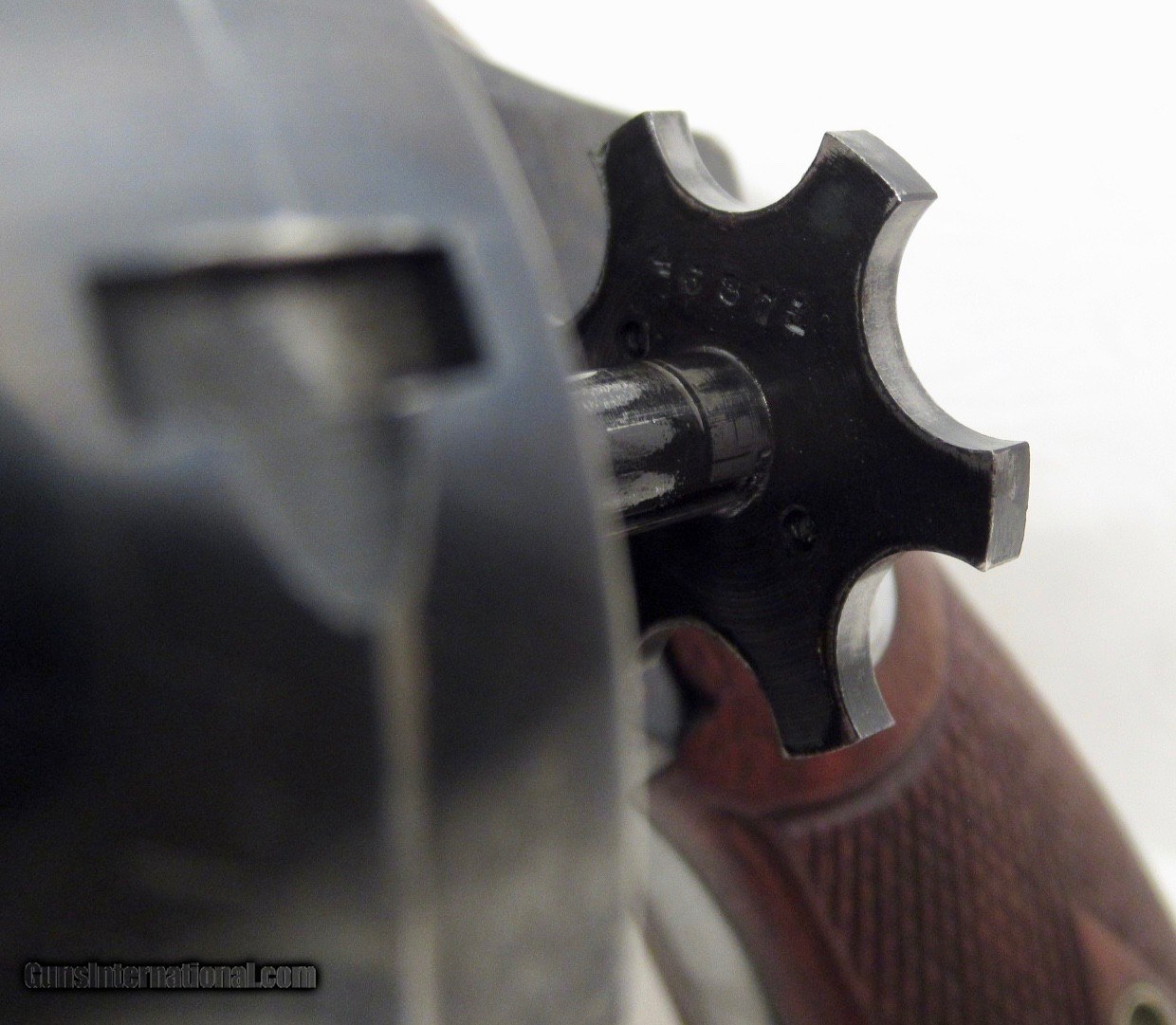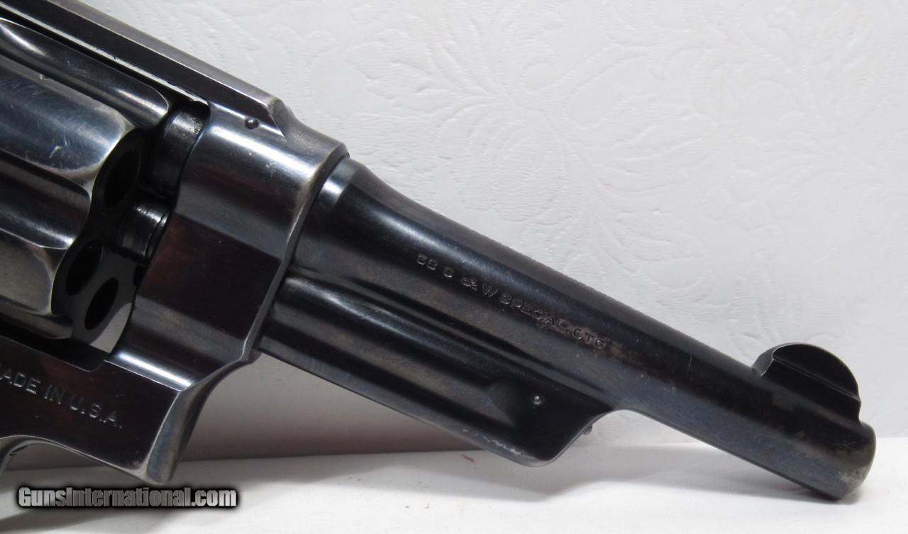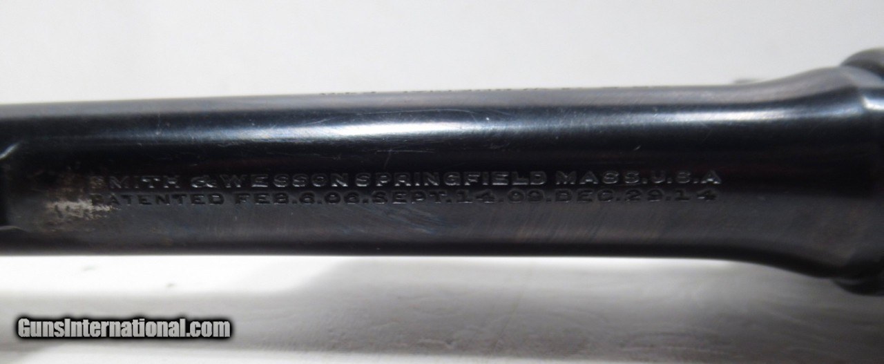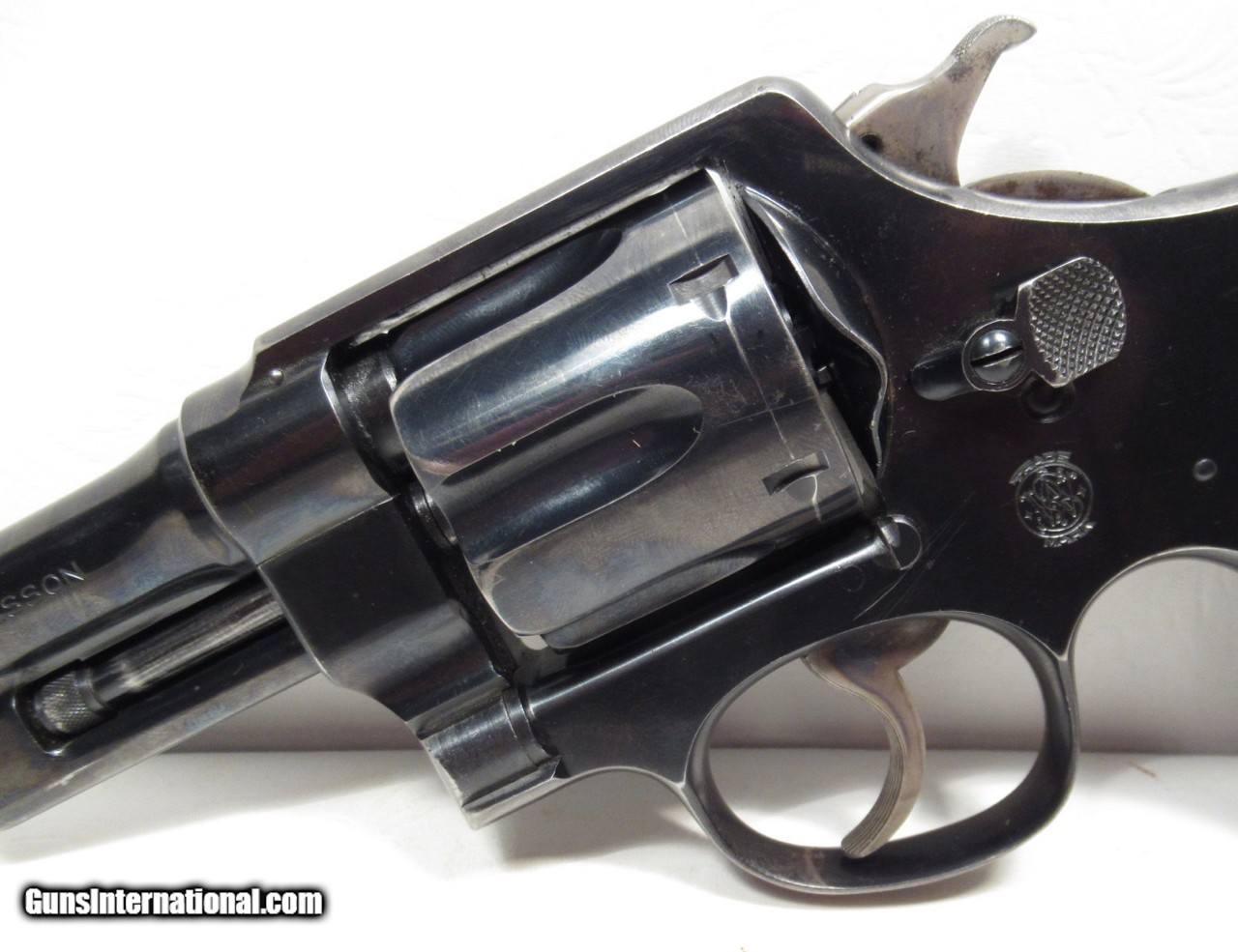 Description: Smith & Wesson Pre-War 38/44 Heavy Duty Revolver; Serial No. 46871; .38 S&W Special Cartridge with 5” Barrel; Blue Finish; All Numbers Match – Butt, Back of Cylinder, Ejector Star, Barrel, and Original Grips; Nearly All Original Metal Remains; Good Original Numbered Grips (38/44 in Black Ink on Inside); 5 Screw and Pinned Barrel; Nice Original Screws; PERFECT ACTION and BORE; Fine Original 86 Year-Old Smith & Wesson Shipped to Shapleigh Hardware Co. of St. Louis, Missouri on September 30, 1935; See All Photos for Condition; No Texts; Call (254)541-5765 or Email Only; PERSONAL PROPERTY of Harold Wieser; Price: $1,475 + $45 S&H Via USPS PRIORITY MAIL; Payment Address: Harold Wieser - 1466 U.S. Hwy 77 - Rosebud, TX 76570; SEND PAYMENTS VIA USPS PRIORITY MAIL; BEWARE of SCAMS!!! – DO NOT SEND MONEY or CORRESPONDENTS ELECTRONICALLY UNLESS YOU HAVE SPOKEN to HAROLD WIESER FIRST! 254-541-5765 SOLD Manufacturer: Smith & Wesson Model: Heavy Duty Serial Number: 46871 |