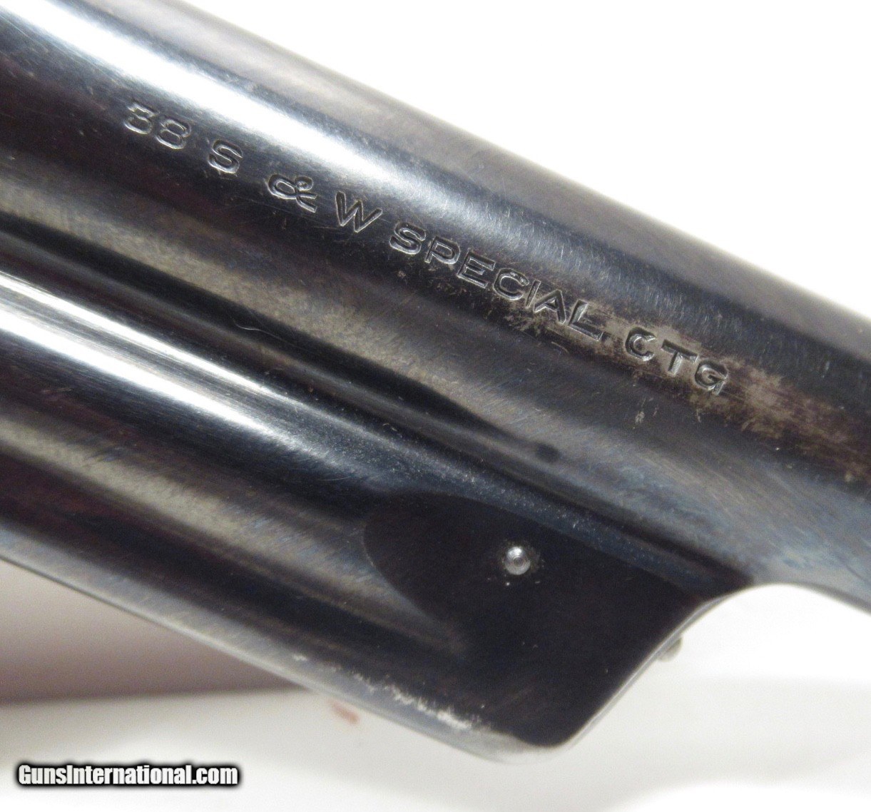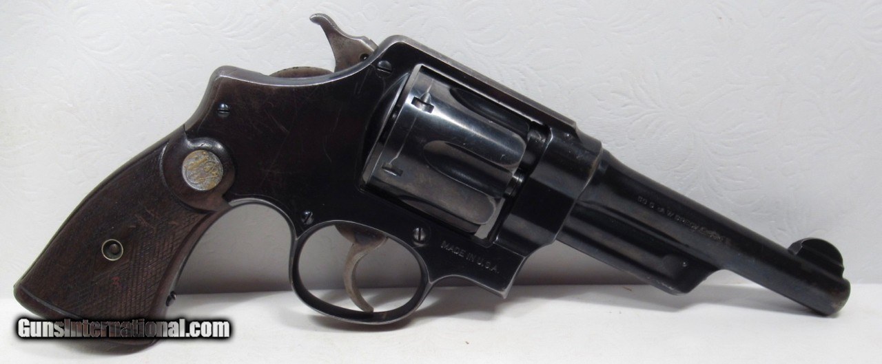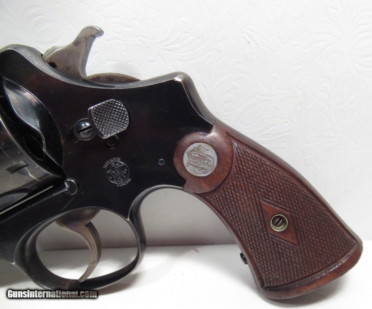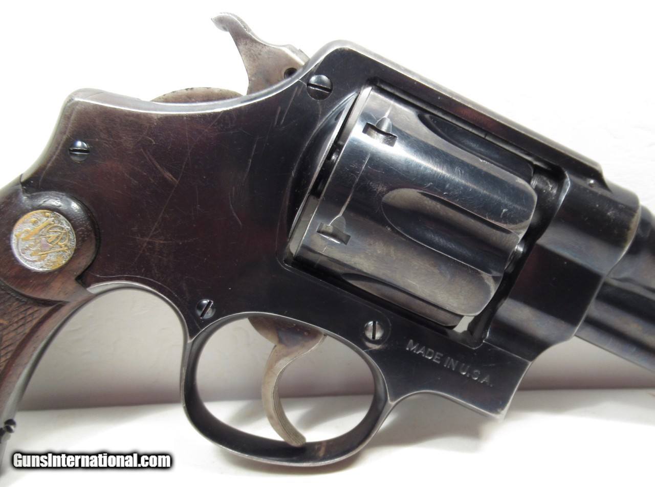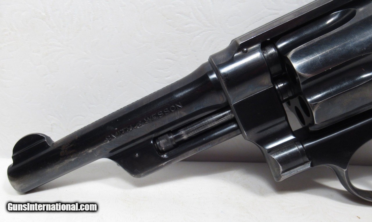 Description: Smith & Wesson Pre-War 38/44 Heavy Duty Revolver; Serial No. 46871; .38 S&W Special Cartridge with 5” Barrel; Blue Finish; All Numbers Match – Butt, Back of Cylinder, Ejector Star, Barrel, and Original Grips; Nearly All Original Metal Remains; Good Original Numbered Grips (38/44 in Black Ink on Inside); 5 Screw and Pinned Barrel; Nice Original Screws; PERFECT ACTION and BORE; Fine Original 86 Year-Old Smith & Wesson Shipped to Shapleigh Hardware Co. of St. Louis, Missouri on September 30, 1935; See All Photos for Condition; No Texts; Call (254)541-5765 or Email Only; PERSONAL PROPERTY of Harold Wieser; Price: $1,475 + $45 S&H Via USPS PRIORITY MAIL; Payment Address: Harold Wieser - 1466 U.S. Hwy 77 - Rosebud, TX 76570; SEND PAYMENTS VIA USPS PRIORITY MAIL; BEWARE of SCAMS!!! – DO NOT SEND MONEY or CORRESPONDENTS ELECTRONICALLY UNLESS YOU HAVE SPOKEN to HAROLD WIESER FIRST! 254-541-5765 SOLD Manufacturer: Smith & Wesson Model: Heavy Duty Serial Number: 46871 |