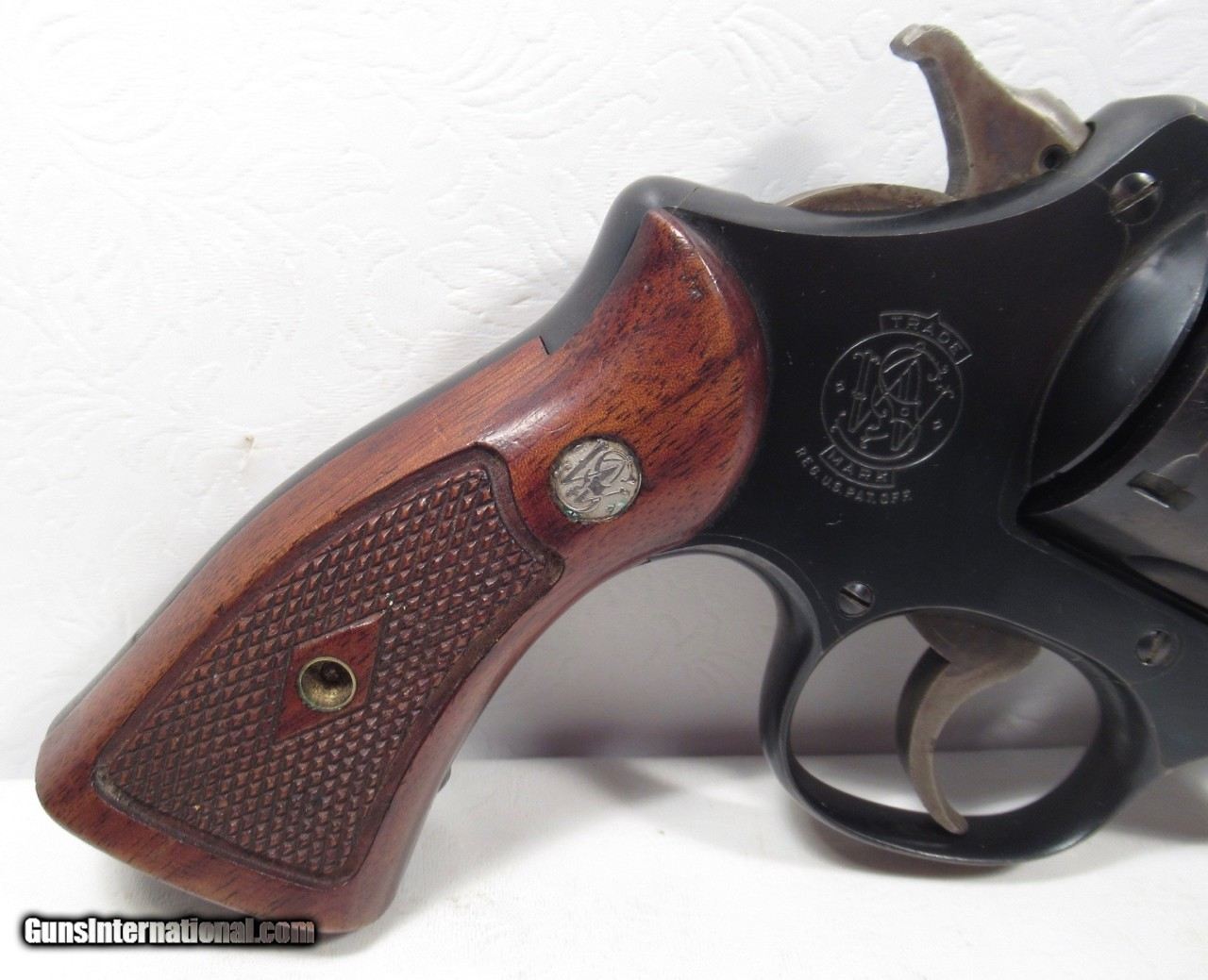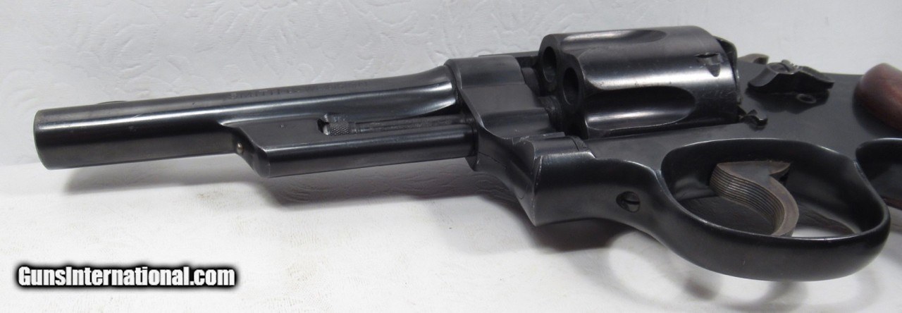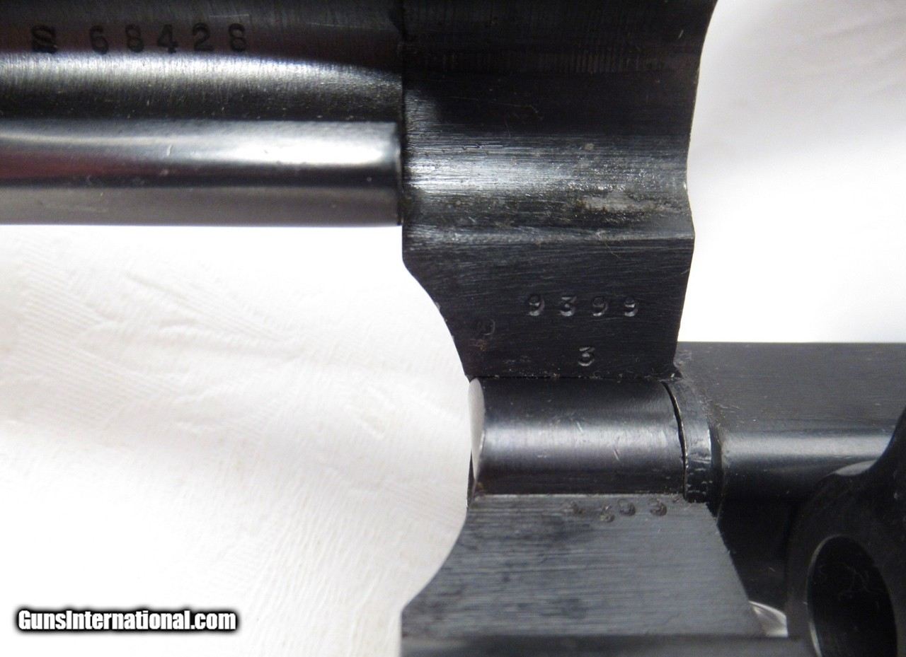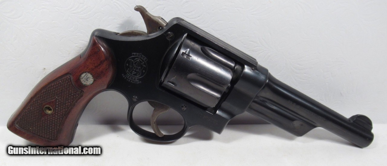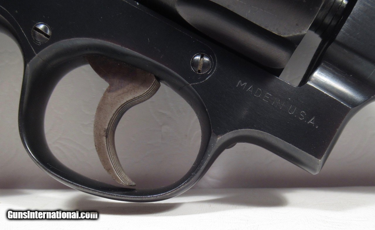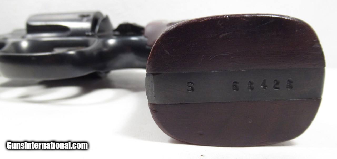 Description: Smith & Wesson 38/44 Heavy Duty Post War (Pre Model 20); Serial No. S 68428; Made 1947 – Old Transition Style; 5” Barrel; 38 S&W Special Caliber; Fairly Rare Post War Variation; Serial No. Present on Butt Plate, Cylinder, and Ejector Star; Grips un-numbered but appear to be Original to Revolver; Note: This revolver is old style as in 1948 New Hammer Block and Short Throw Hammer was Introduced; Scarce 74 Year-Old S&W; Nearly All Original Metal and Wood Finish Present; Perfect Action & Bore; See All Photos for Condition; No Texts. Call or Email Only; PERSONAL PROPERTY of Harold Wieser; Price: $1,175 + $45 S&H Via FedEx Express; Price includes insured shipping; return policy: three days inspection from the date the item is received; full refund of shipping both ways ONLY IF THE ITEM IS MISREPRESENTED. SOLD Manufacturer: Smith & Wesson Model: Heavy Duty Serial Number: S 68428 |