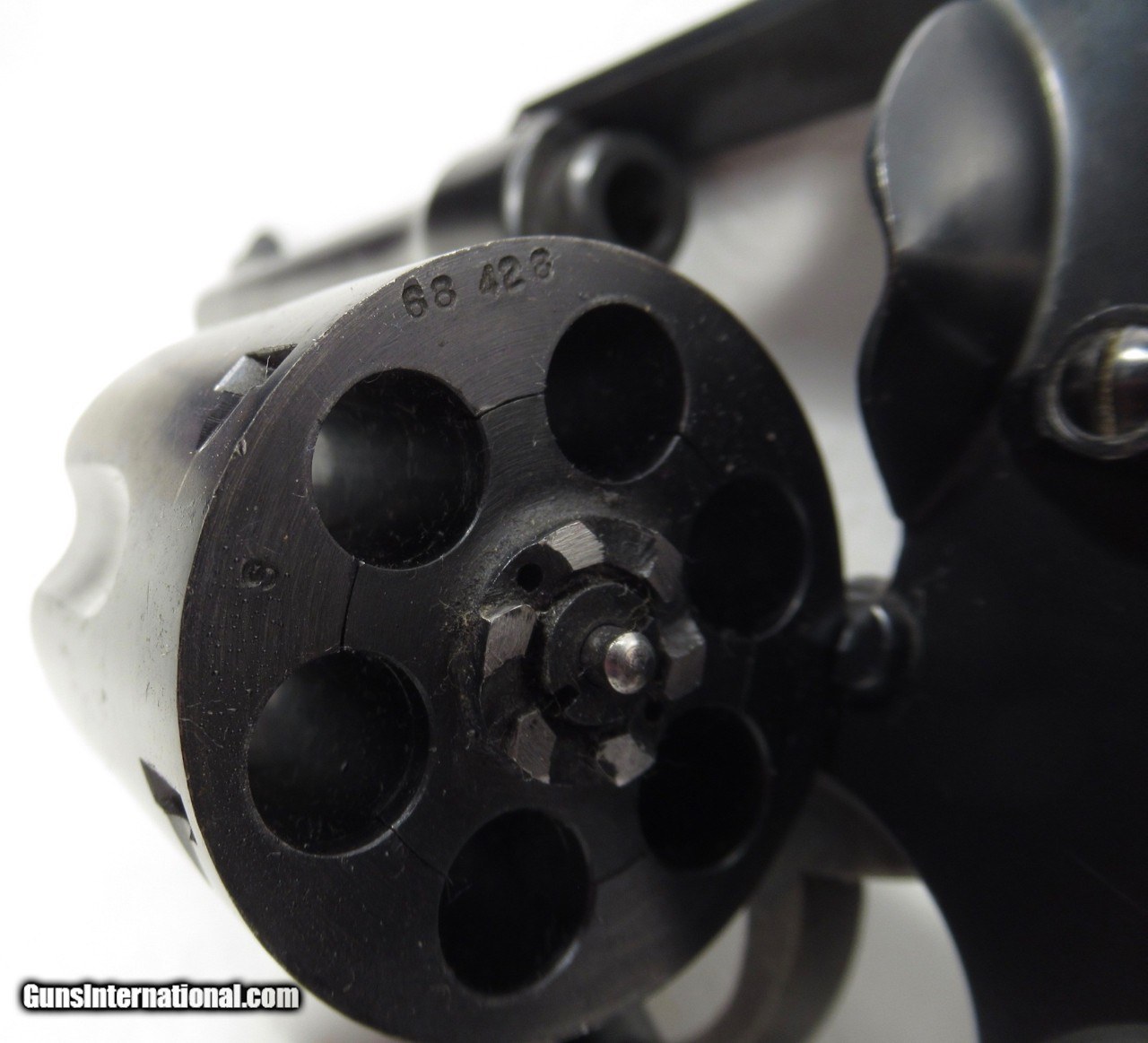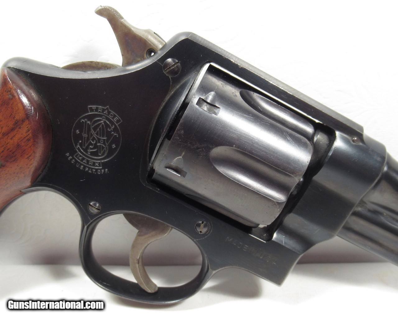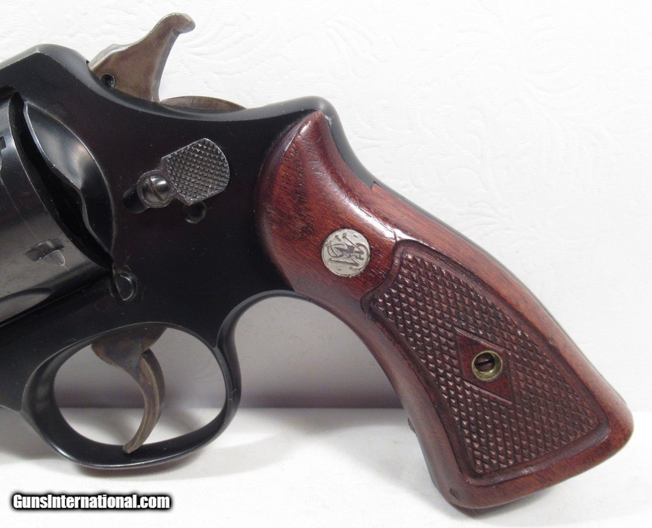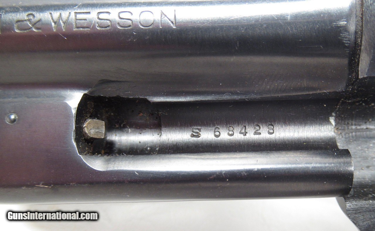 Description: Smith & Wesson 38/44 Heavy Duty Post War (Pre Model 20); Serial No. S 68428; Made 1947 – Old Transition Style; 5” Barrel; 38 S&W Special Caliber; Fairly Rare Post War Variation; Serial No. Present on Butt Plate, Cylinder, and Ejector Star; Grips un-numbered but appear to be Original to Revolver; Note: This revolver is old style as in 1948 New Hammer Block and Short Throw Hammer was Introduced; Scarce 74 Year-Old S&W; Nearly All Original Metal and Wood Finish Present; Perfect Action & Bore; See All Photos for Condition; No Texts. Call or Email Only; PERSONAL PROPERTY of Harold Wieser; Price: $1,175 + $45 S&H Via FedEx Express; Price includes insured shipping; return policy: three days inspection from the date the item is received; full refund of shipping both ways ONLY IF THE ITEM IS MISREPRESENTED. SOLD Manufacturer: Smith & Wesson Model: Heavy Duty Serial Number: S 68428 |