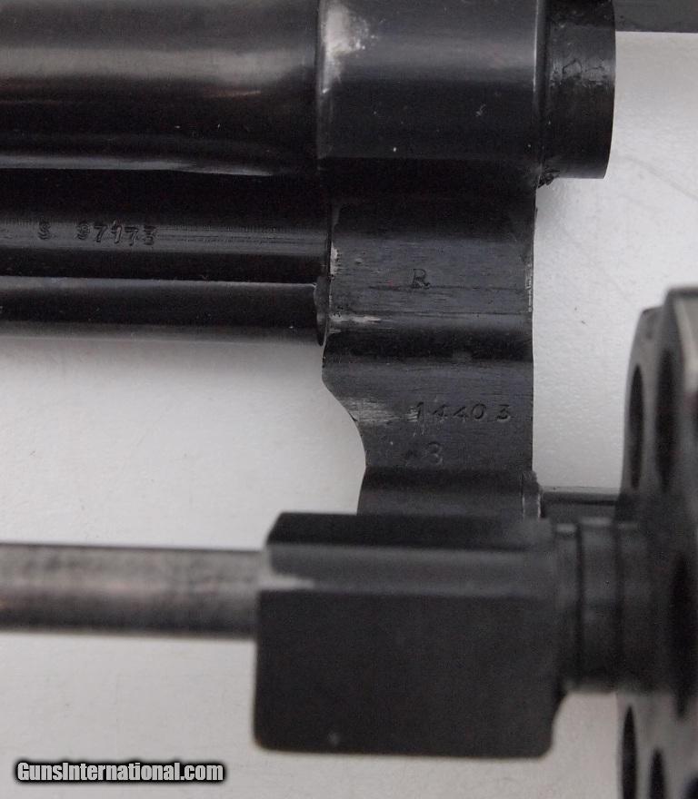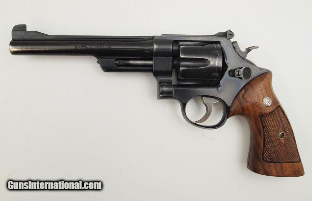 Description: Smith & Wesson 38/44 Heavy Duty Model of 1950 "Pre-Model 23" - 38 S&W Special, introduced in September of 1950, double action revolver built on the square butt N 5 screw frame, 6 1/2" barrel (rare) Circa 1950 -1966. Tight action, shinny bore. Magna-style diamond walnut grips, shrouded extractor rod Add 3% for Credit Card Shipping $25.00 SOLD |