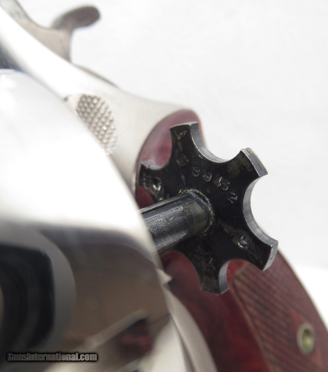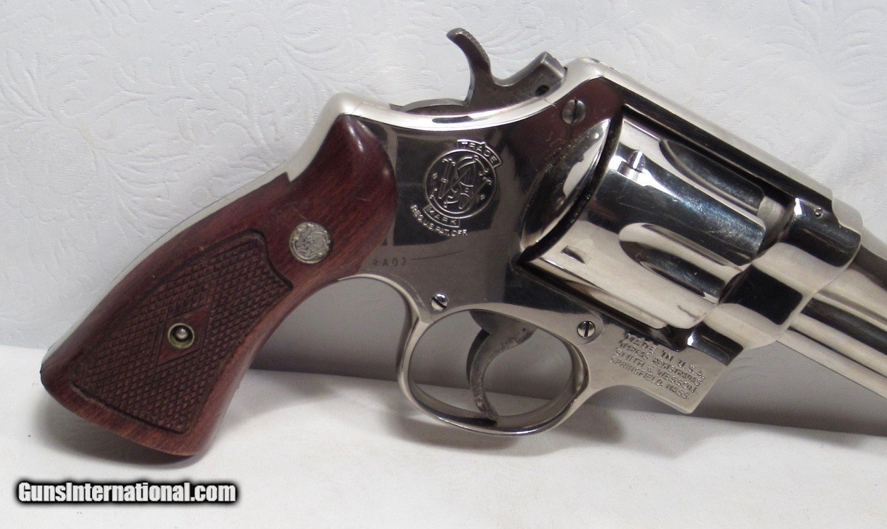Description: Smith & Wesson 38/44 Revolver; Serial No. S 89452; .38 Special Caliber; Nickel Finish; 6 ½” Barrel; This was Originally Factory Nickel with 4” Barrel; Refinished by Smith & Wesson and Re-barreled by Smith & Wesson; All of these Austin P.D. 38/44’s were refinished and Very Few were Converted to 6 ½” Barrels; All Numbers Match Including Barrel but grips mismatched on All 38/44 Austin P.D. Revolvers; Backstrap Marked “AUSTIN POLICE DEPARTMENT 6”; See Photos of Writeups in Smith & Wesson Collectors Association Journal Volume 45, Number 2 – Summer 2011; See All Photos for Condition; No Texts; Call (254)541-5765 or Email Only; PERSONAL PROPERTY of Harold Wieser; Price: $2,475 + $45 S&H Via USPS PRIORITY MAIL; Payment Address: Harold Wieser - 1466 U.S. Hwy 77 - Rosebud, TX 76570; SEND PAYMENTS VIA USPS PRIORITY MAIL; BEWARE of SCAMS!!! – DO NOT SEND MONEY or CORRESPONDENTS ELECTRONICALLY UNLESS YOU HAVE SPOKEN to HAROLD WIESER FIRST! 254-541-5765 SOLD Manufacturer: Smith & Wesson Model: 38/44 Serial Number: S 89452 |