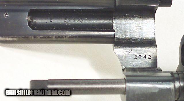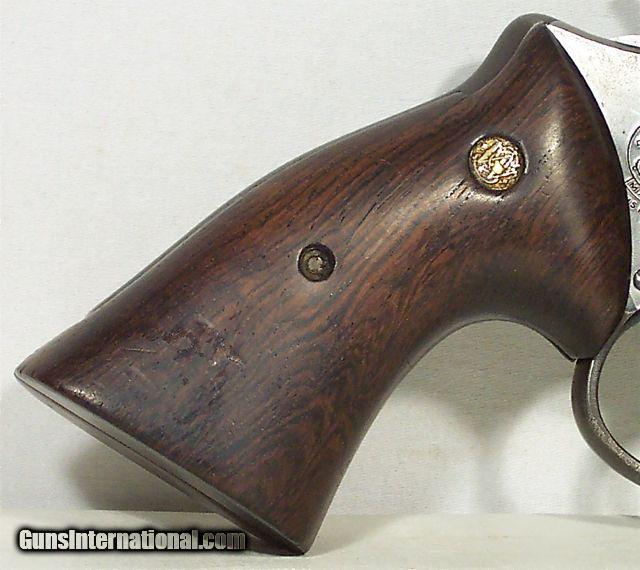 Description: Smith & Wesson Model 38/44 Heavy Duty 38 Special Revolver; SN 84595; circa 1951-52; 4” barrel; ALL NUMBERS MATCH; GOOD action & bore; about 85% OVERALL ORIGINAL blue; S&W Rosewood Target grips not original to gun; FFL/C&R required for shipping; All items shipped fully insured Priority Mail- -Hand guns $30 --Long guns $45-- Spurs $30-- Knives, Swords & Sabers $30 (Texas residents please add 6.75% sales tax); return policy: three days inspection from the date the item is received; full refund of shipping both ways ONLY IF THE ITEM IS MISREPRESENTED. Note: International sales only as laws permit. Will ship C&R eligible items to C&R license. Antiques shipped without license to anyone EXCEPT New Jersey and City of New York where a FFL is required. SOLD Curio/Relic: Yes Manufacturer: Smith & Wesson Model: 38/44 Heavy Duty 38 Serial Number: 84595 |