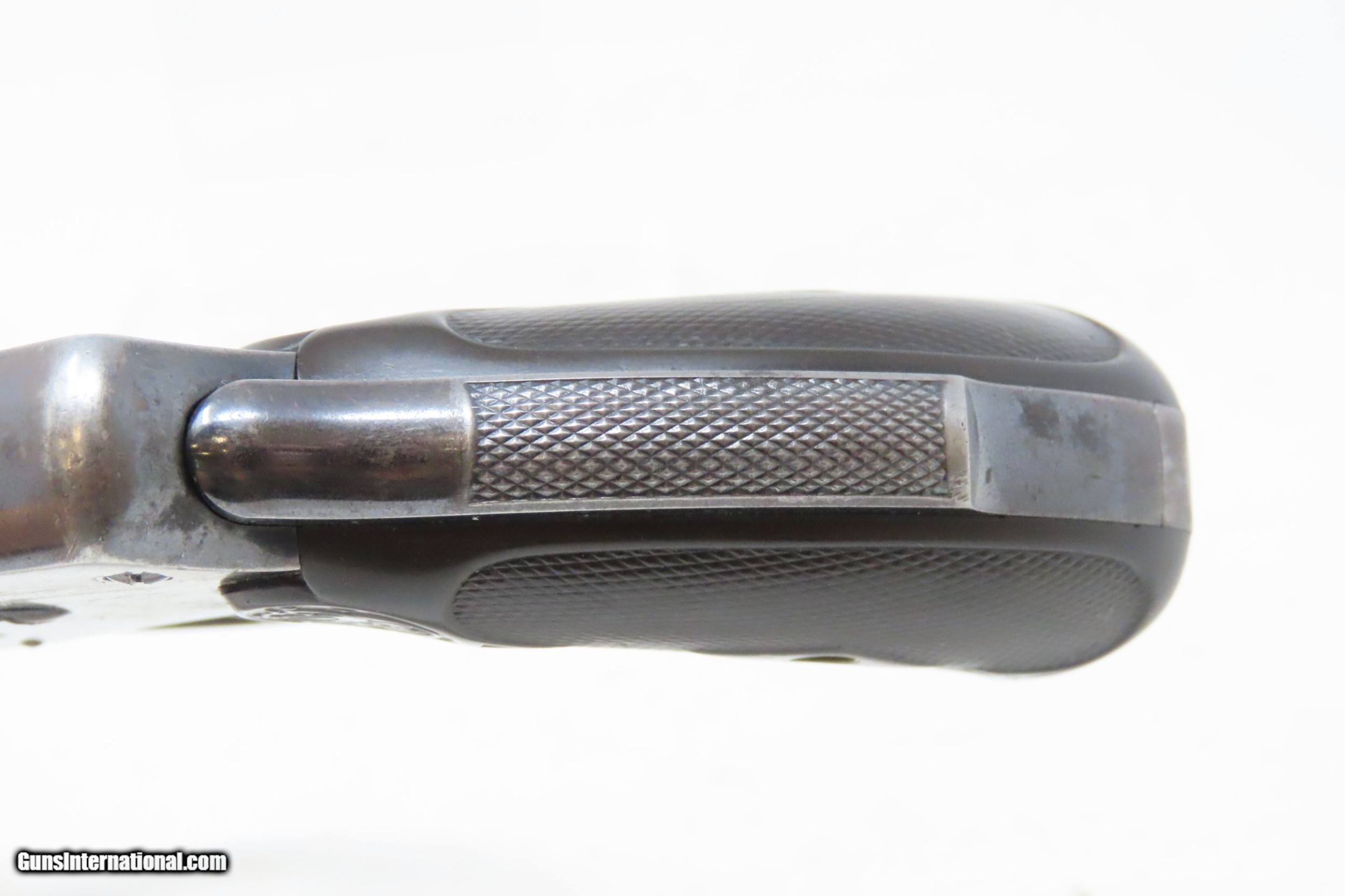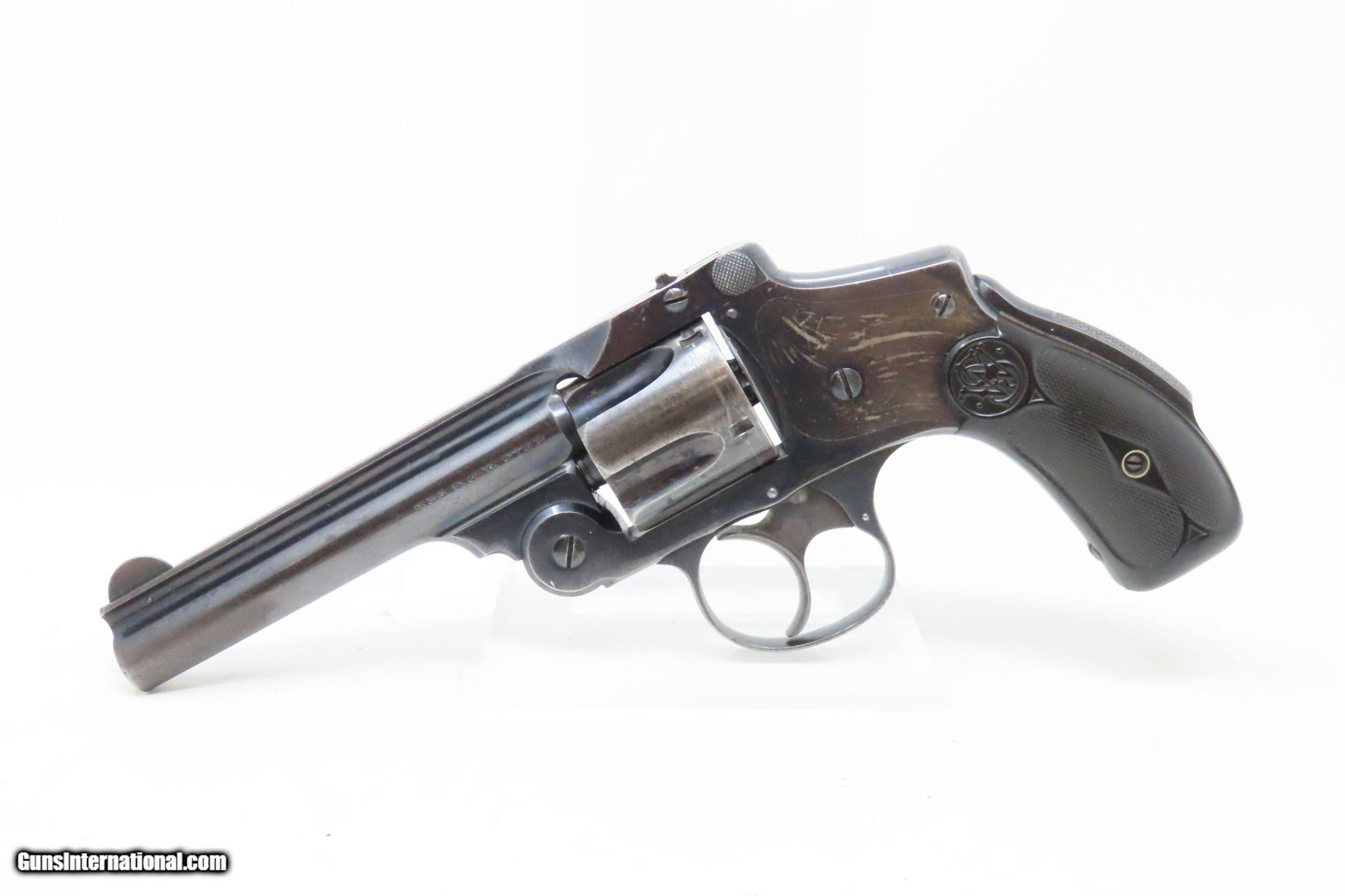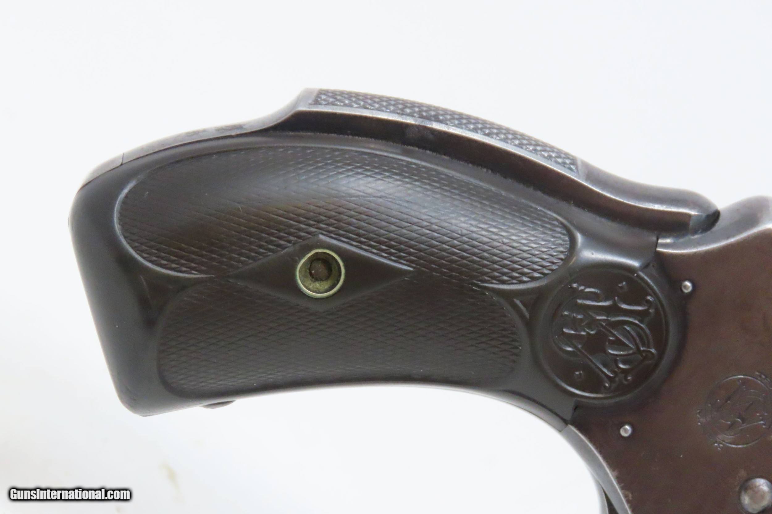 Description: SMITH & WESSON .38 Safety Hammerless 4th Model C&R DOUBLE ACTION Revolver Turn of the Century TOP BREAK Revolver Here we present a C&R 4th Model Smith & Wesson .38 S&W Top Break Double Action Safety Hammerless C&R Revolver, made circa 1898-1907 in Springfield, Massachusetts with a serial number range of 116003 through 220000. The Smith & Wesson Safety Hammerless models were produced from 1887 (1888 for the 32) to just before World War II. They were chambered in either .32 S&W with a six shot cylinder or .38 S&W with a five-shot cylinder. They were most often produced with a 2-inch, 3-inch, 3.5-inch, or 4-inch barrel. But some 4-1/2”, 5” and 6" barreled versions are known to exist. This revolver was made to be a simple, compact and reliable firearm that one could carry in a pocket or a holster around the turn of the 20th Century. This revolver features an internal hammer design to remove risk of snagging or stopping the action. There is a grip safety built into the back of the grip frame. The frame is a top-break design that activates the automatic ejector. These are very nice features from the turn of the 20th Century! They were known as "The New Departure" to reflect the company's new approach to designing revolvers. With gangsters, and career criminals running rampant, this example would have been the “pocket advantage” a person needed. The overall condition is fine. Original finish. Robust action. Bright bore. Both grips are good with average handling wear. Sharp markings. Numbers match. This firearm is classified as a Curio & Relic. Barrel is 4 inches. Caliber: .38 S&W Overall condition as seen in photos. Very Fast. Very Safe. FREE SHIPPING. Will need to be sent to your local FFL or C&R licensee. This firearm is classified as a Curio & Relic. Guaranteed AUTHENTIC & Includes CERTIFICATE OF AUTHENTICITY. ancestryguns $1200 #226376 SOLD Curio/Relic: Yes |