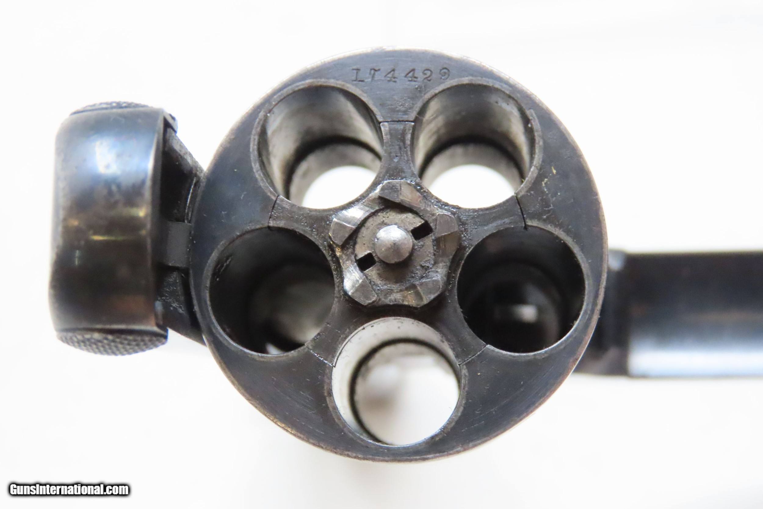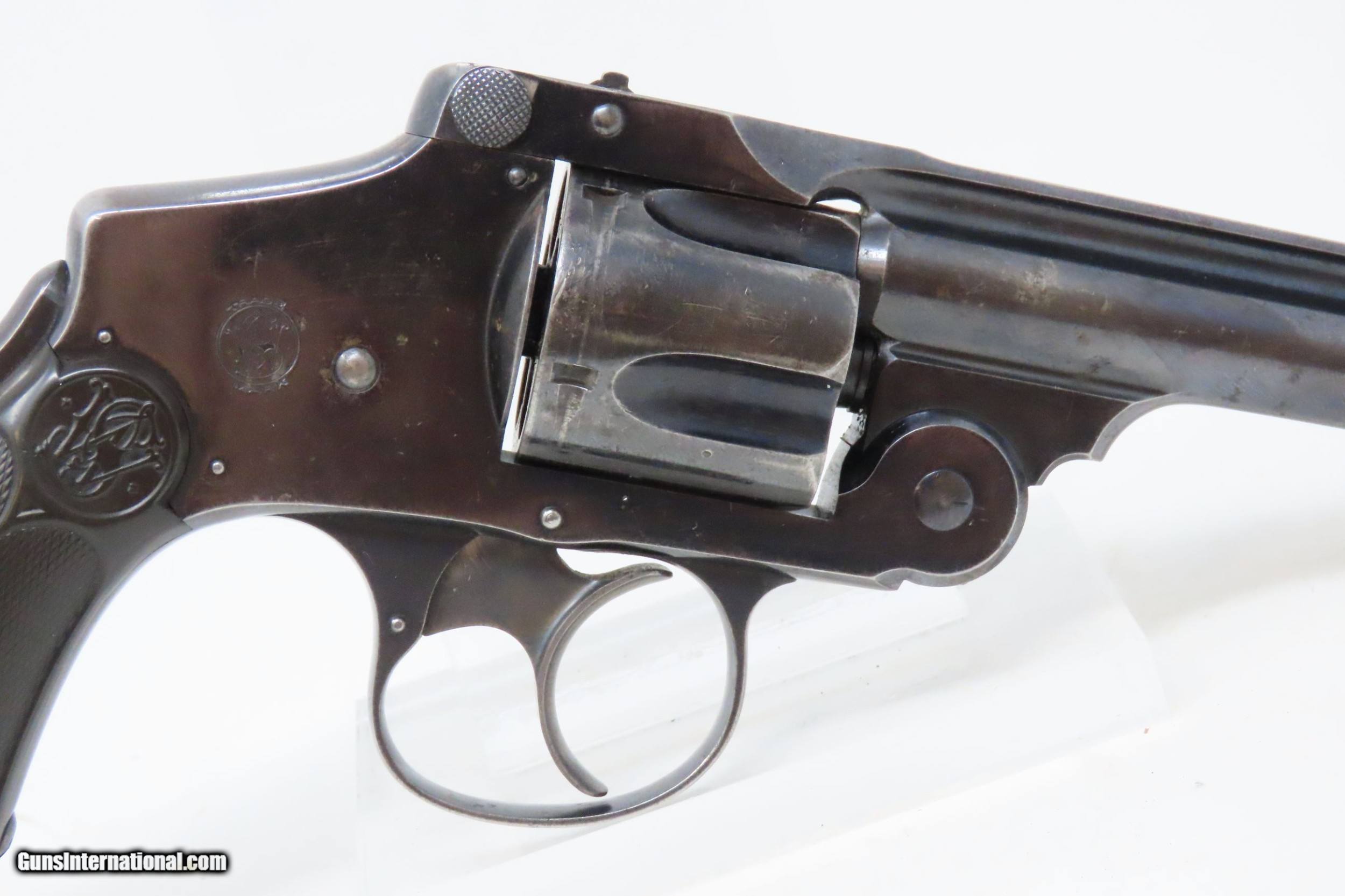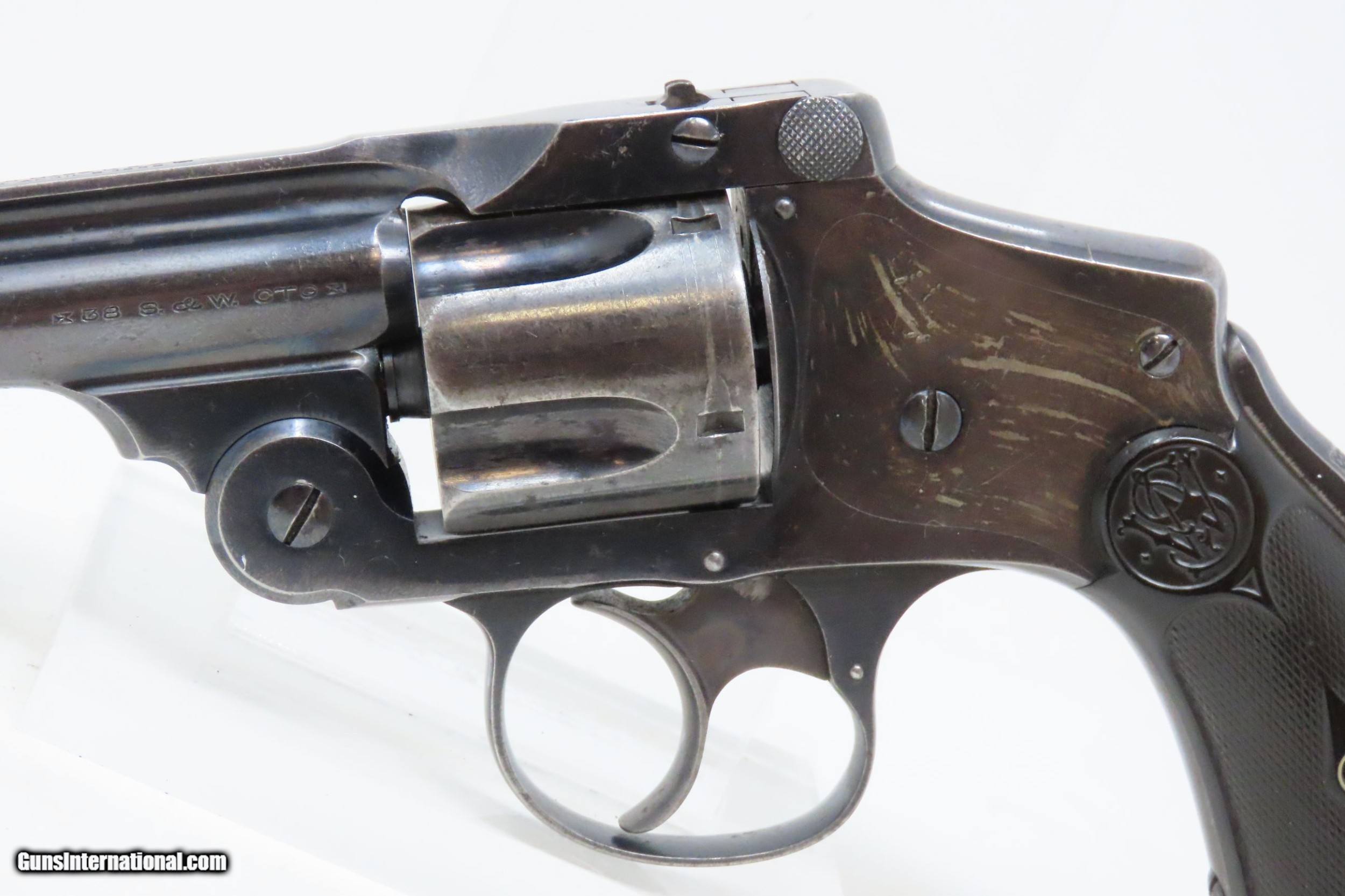 Description: SMITH & WESSON .38 Safety Hammerless 4th Model C&R DOUBLE ACTION Revolver Turn of the Century TOP BREAK Revolver Here we present a C&R 4th Model Smith & Wesson .38 S&W Top Break Double Action Safety Hammerless C&R Revolver, made circa 1898-1907 in Springfield, Massachusetts with a serial number range of 116003 through 220000. The Smith & Wesson Safety Hammerless models were produced from 1887 (1888 for the 32) to just before World War II. They were chambered in either .32 S&W with a six shot cylinder or .38 S&W with a five-shot cylinder. They were most often produced with a 2-inch, 3-inch, 3.5-inch, or 4-inch barrel. But some 4-1/2”, 5” and 6" barreled versions are known to exist. This revolver was made to be a simple, compact and reliable firearm that one could carry in a pocket or a holster around the turn of the 20th Century. This revolver features an internal hammer design to remove risk of snagging or stopping the action. There is a grip safety built into the back of the grip frame. The frame is a top-break design that activates the automatic ejector. These are very nice features from the turn of the 20th Century! They were known as "The New Departure" to reflect the company's new approach to designing revolvers. With gangsters, and career criminals running rampant, this example would have been the “pocket advantage” a person needed. The overall condition is fine. Original finish. Robust action. Bright bore. Both grips are good with average handling wear. Sharp markings. Numbers match. This firearm is classified as a Curio & Relic. Barrel is 4 inches. Caliber: .38 S&W Overall condition as seen in photos. Very Fast. Very Safe. FREE SHIPPING. Will need to be sent to your local FFL or C&R licensee. This firearm is classified as a Curio & Relic. Guaranteed AUTHENTIC & Includes CERTIFICATE OF AUTHENTICITY. ancestryguns $1200 #226376 SOLD Curio/Relic: Yes |