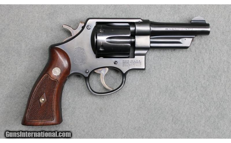 Description: Smith & Wesson .38/44 Heavy Duty Model of 1905 (Pre-Model 20) single/double action revolver chambered in .38 S&W Special. 1954 estimated year of manufacture. No accessories. .38 Special SOLD Metal Condition: Very Good with Minor Handling Marks and Light Cylinder Drag Line Wood Condition: Very Good with Minor Handling Marks and Sharp Checkering Bore Condition: Bright And Clear with No Pitting Barrels: 4 inch Item Location: Fort Worth, TX |