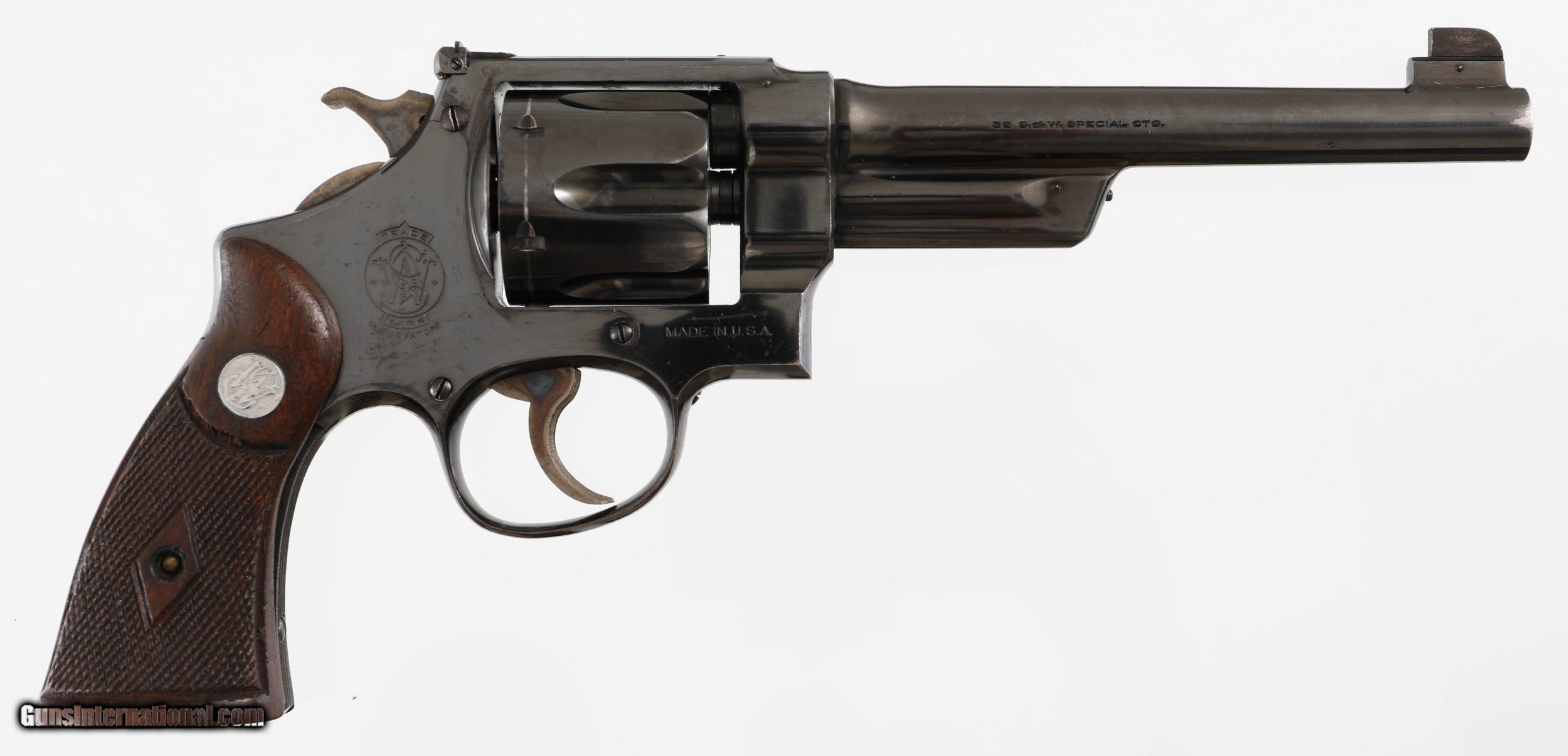 SOLD Curio/Relic: Yes Handgun Caliber: .38 Special Manufacturer: SMITH & WESSON Model: 38/44 OUTDOORSMAN Serial Number: 557?? Barrel Length: 6 1/2 Condition: EXCELLENT |
