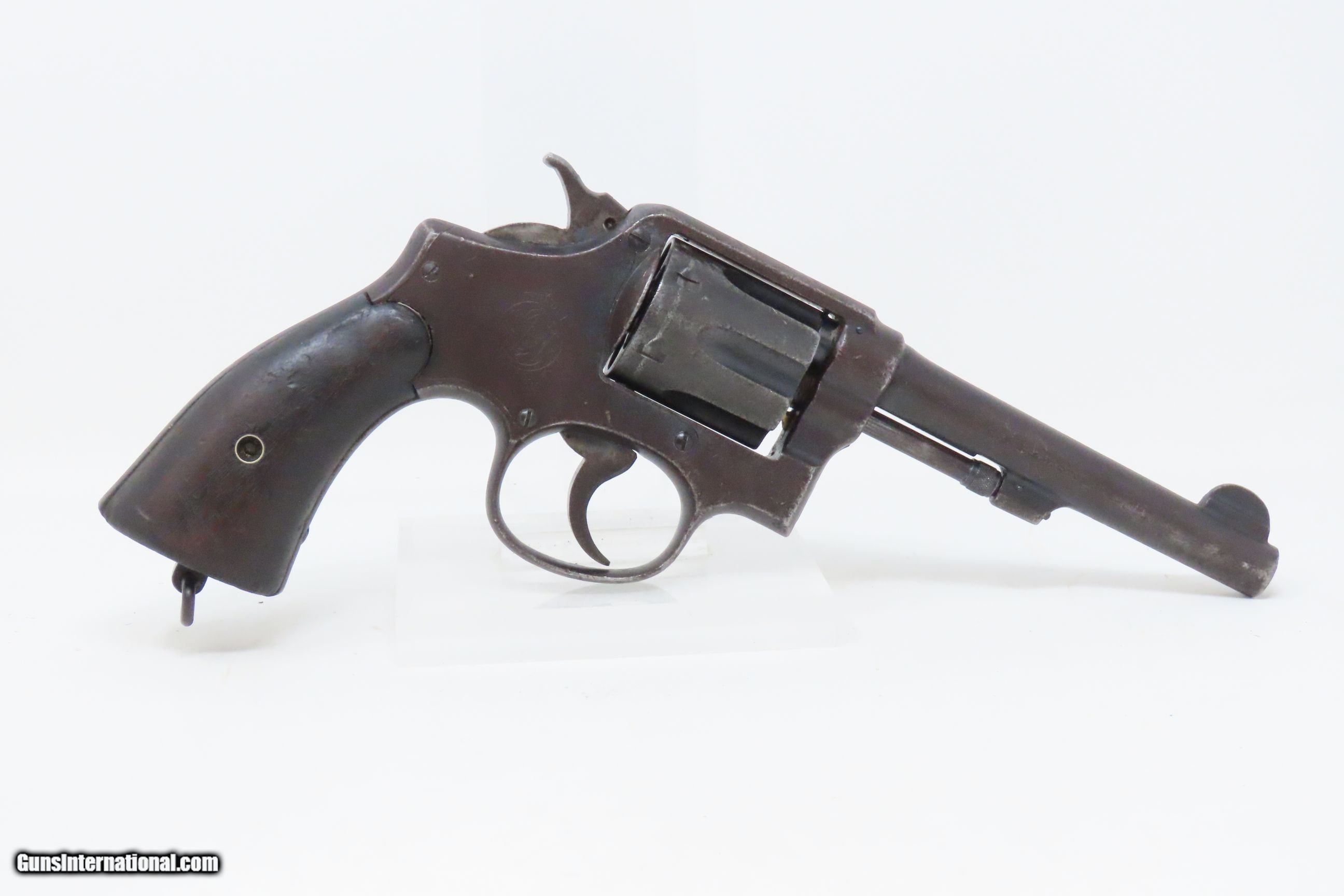 Description: SMITH & WESSON U.S. Inspected .38 Military & Police Model 1905 Revolver C&R WORLD WAR II FLAMING BOMB Marked Double Action Here we present a C&R U.S. Inspected World War II Era Smith & Wesson .38 Military & Police Model of 1905 Fourth Change Double Action Revolver manufactured circa 1942 in Springfield, Massachusetts. Over the production run of this revolver, there were around 937,000 of these revolvers produced between 1905 and 1942. The “Fourth Change” had a total production of 758,296 between the years of 1915 and 1942. In 1899, the United States Army and Navy placed an order with Smith & Wesson for two to three thousand Model 1899 Hand Ejector revolvers chambered for the .38 Long Colt U.S. Service Cartridge. With this order, the Hand Ejector Model became known as the .38 Military and Police model. These revolvers have survived the test of time, as they are still being produced and called the Model 10. That same year, in response to reports from military sources serving in the Philippines on the relative ineffectiveness of the new cartridge, Smith & Wesson began making the Military & Police in a new chambering, the 38 S&W Special (a.k.a. .38 Special), a slightly elongated version of the .38 Long Colt cartridge with greater bullet weight and powder. This change was implemented after the first 1000 had been produced. This example was inspected by U.S. Ordnance Inspector Colonel Waldemar Broberg, with his initials “W.B.” and the “Flaming Bomb” marked on the Butt of this revolver. The overall condition is very good. Original brown patina. Excellent action. Shiny bright, nicely rifled bore. Both grips are seated firmly and contain average wear. Numbers match. The markings are legible. This firearm is classified as a Curio & Relic. Barrel is 5 inches. Caliber: .38 S&W Special Overall condition as seen in photos. Very Fast. Very Safe. FREE SHIPPING. Will need to be sent to your local FFL or C&R licensee. This firearm is classified as a Curio & Relic. Guaranteed AUTHENTIC & Includes CERTIFICATE OF AUTHENTICITY. ancestryguns $1250 #230234 SOLD Curio/Relic: Yes |