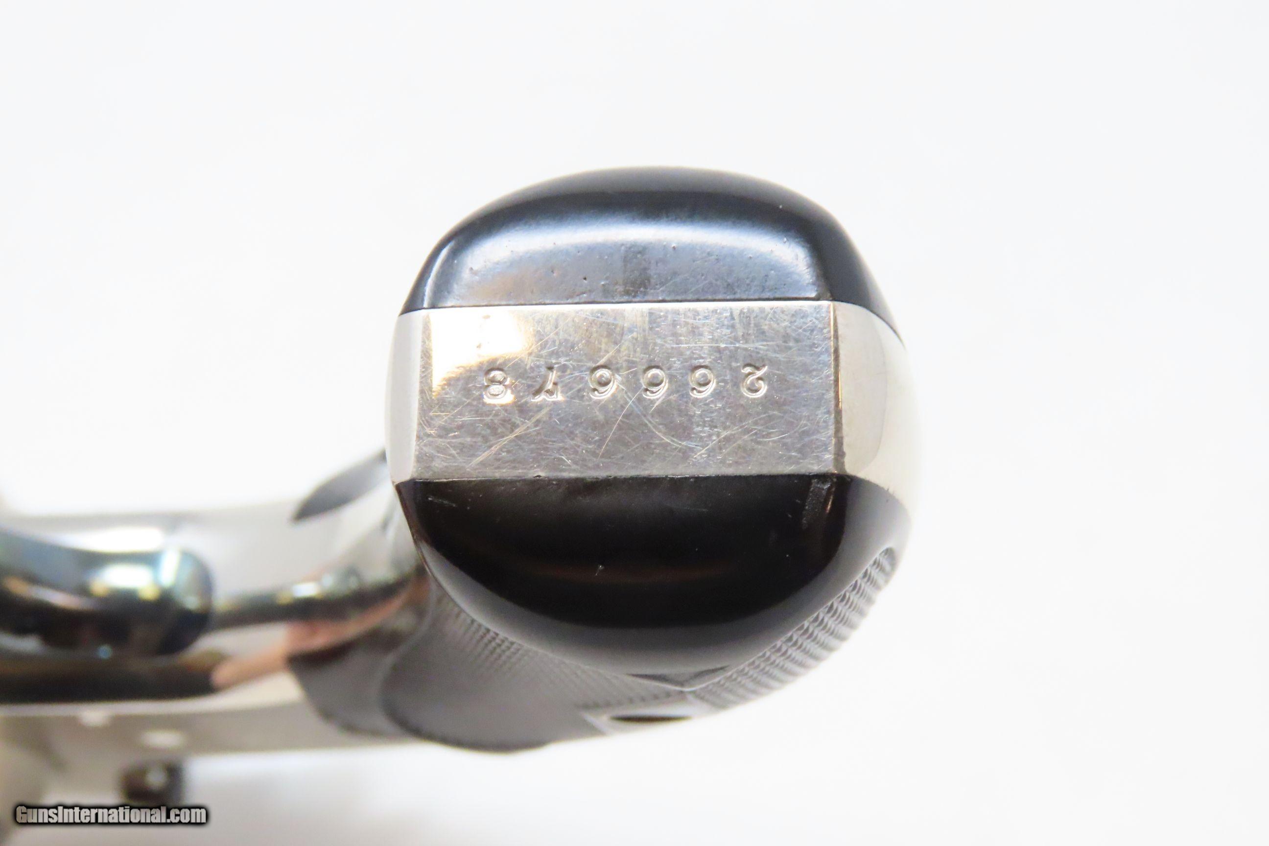 Description: VERY NICE Smith & Wesson .32 DA 4th Model SELF DEFENSE Revolver C&R NICKEL TURN OF THE CENTURY Self Defense Revolver Here we present a C&R 4th Model Smith & Wesson .32 Double Action Revolver, made circa the early 1900s in Springfield, Massachusetts. The Smith & Wesson Fourth Models were produced between 1883 and 1909 with a total production of approximately 239,600 examples. As mentioned above, this revolver was chambered for the .32 S&W cartridge and was usually equipped with a 3” or 3-1/2” barrel. They were fitted with a 5-shot fluted cylinder and were either blue finished or nickel plated. They came with a top break design and round butt. The grips were either checkered or floral embossed hard rubber with the S&W monogram. The serial number ranged from 43406 to 282999. This model was quite similar in appearance to the Third Model, except the trigger guard is oval shaped instead of squared back as in the previous models. These were petite and handy little guns that chambered 5 cartridges, perfect for the pocket and enough to get out of most scrapes. With gangsters, and career criminals running rampant, this example would have been the “pocket advantage” a person needed. The overall condition is excellent. Original finish. Bright, shiny bore. Excellent, tight action. Sharp markings throughout. Both grips are seated firmly and remain fine. A second pair of grips are included, and they are good. Numbers match. This firearm is classified as a Curio & Relic. Barrel is 3 inches. Caliber: .32 S&W Overall condition as seen in photos. Very Fast. Very Safe. FREE SHIPPING. Will need to be sent to your local FFL or C&R licensee. This firearm is classified as a Curio & Relic. Guaranteed AUTHENTIC & Includes CERTIFICATE OF AUTHENTICITY. ancestryguns $1400 #230803 SOLD Curio/Relic: Yes |