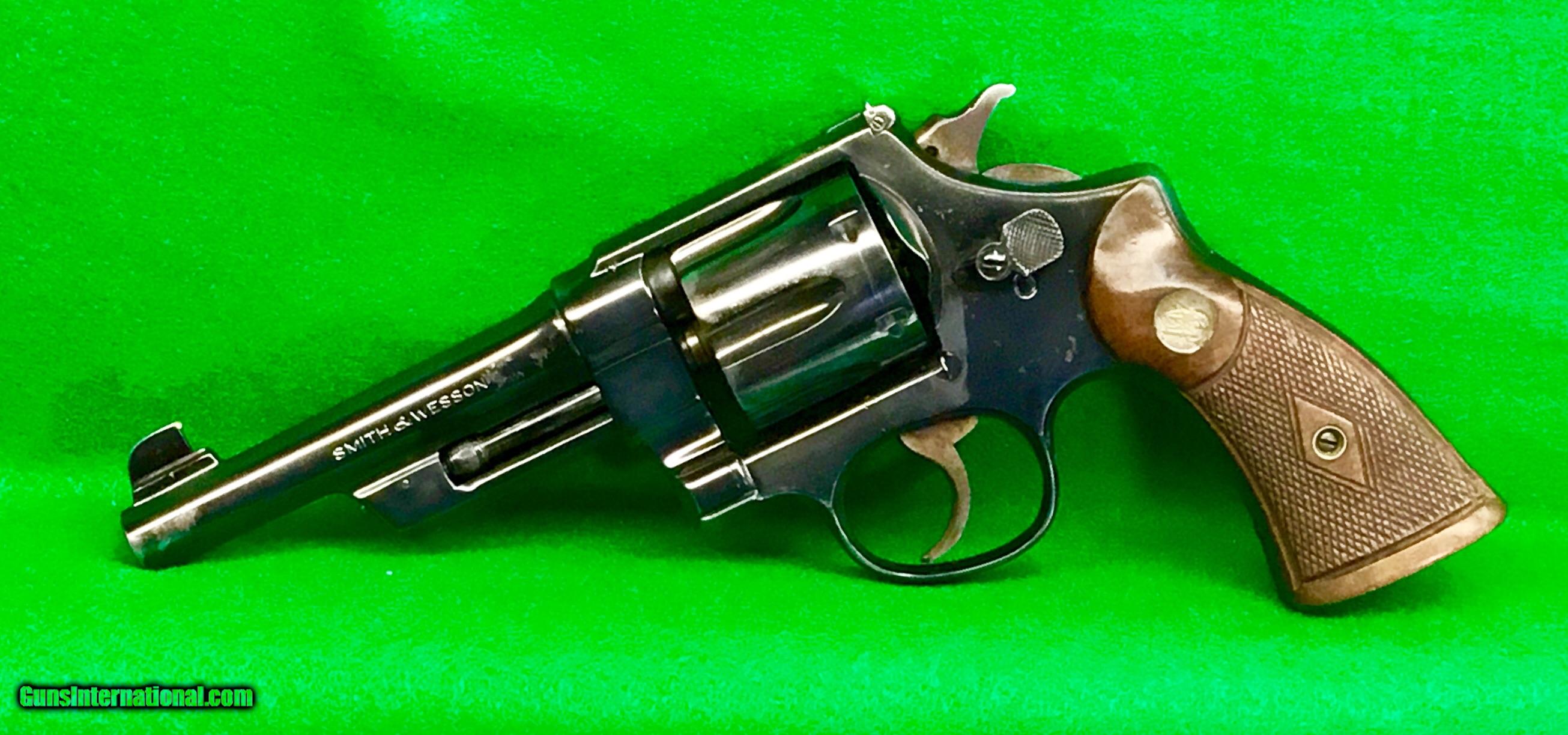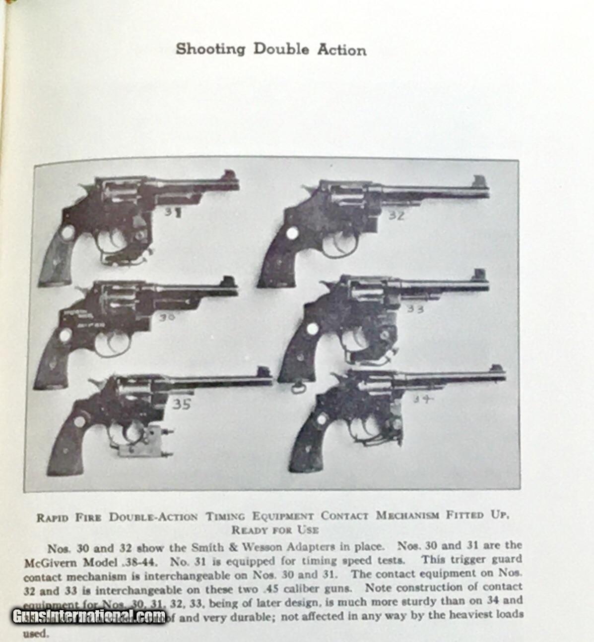 Description: Mcgivern 38/44, almost unknown and never seen. Factory five inch barrel on pre-war 38/44 outdoorsman (adjustable sights, of course.) non matching magna grips of the correct era. Has been refinished, not by S&W. Grips slightly altered, see photos. Price includes McGivern’s book “Fast and fancy Revolver Shooting” that shows similar revolvers on page 115. If mint this S&W would be almost priceless, refinished by an unknown makes it affordable. $2000 includes shipping and the book. Lay-a-way available, no credit cards and no trades. More photos on request. C&R ok. SOLD Curio/Relic: Yes |