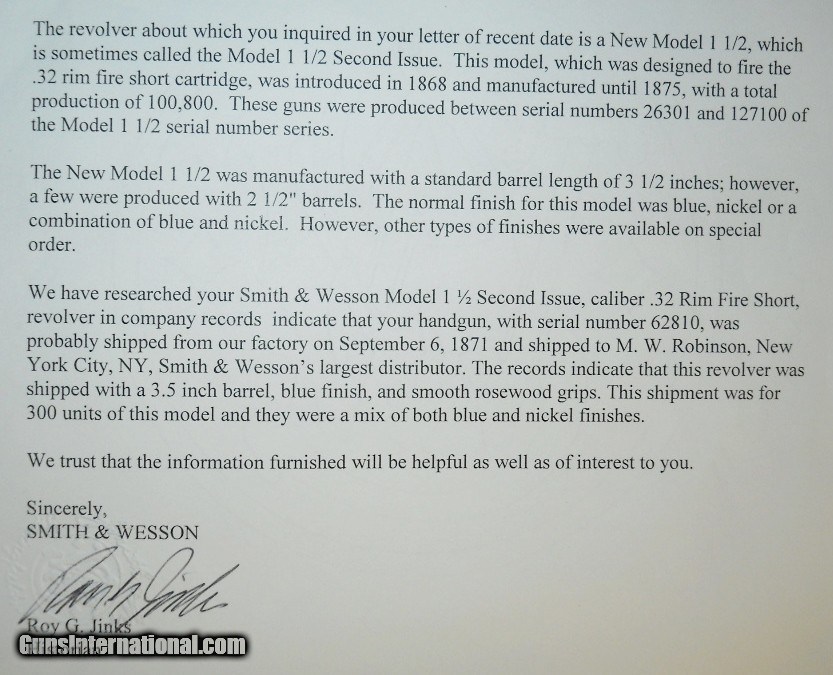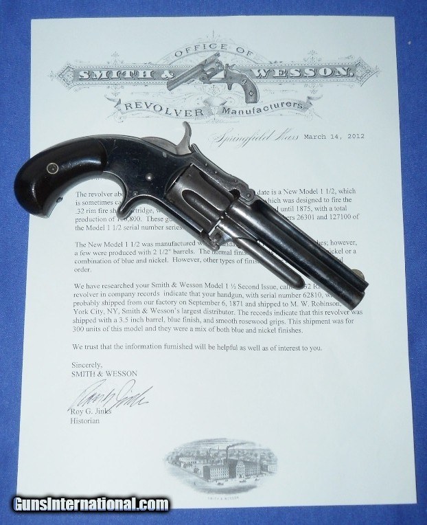 * Antique 1871 SMITH & WESSON 1 1/2 SECOND ISSUE .32 RF WITH FACTORY LETTER