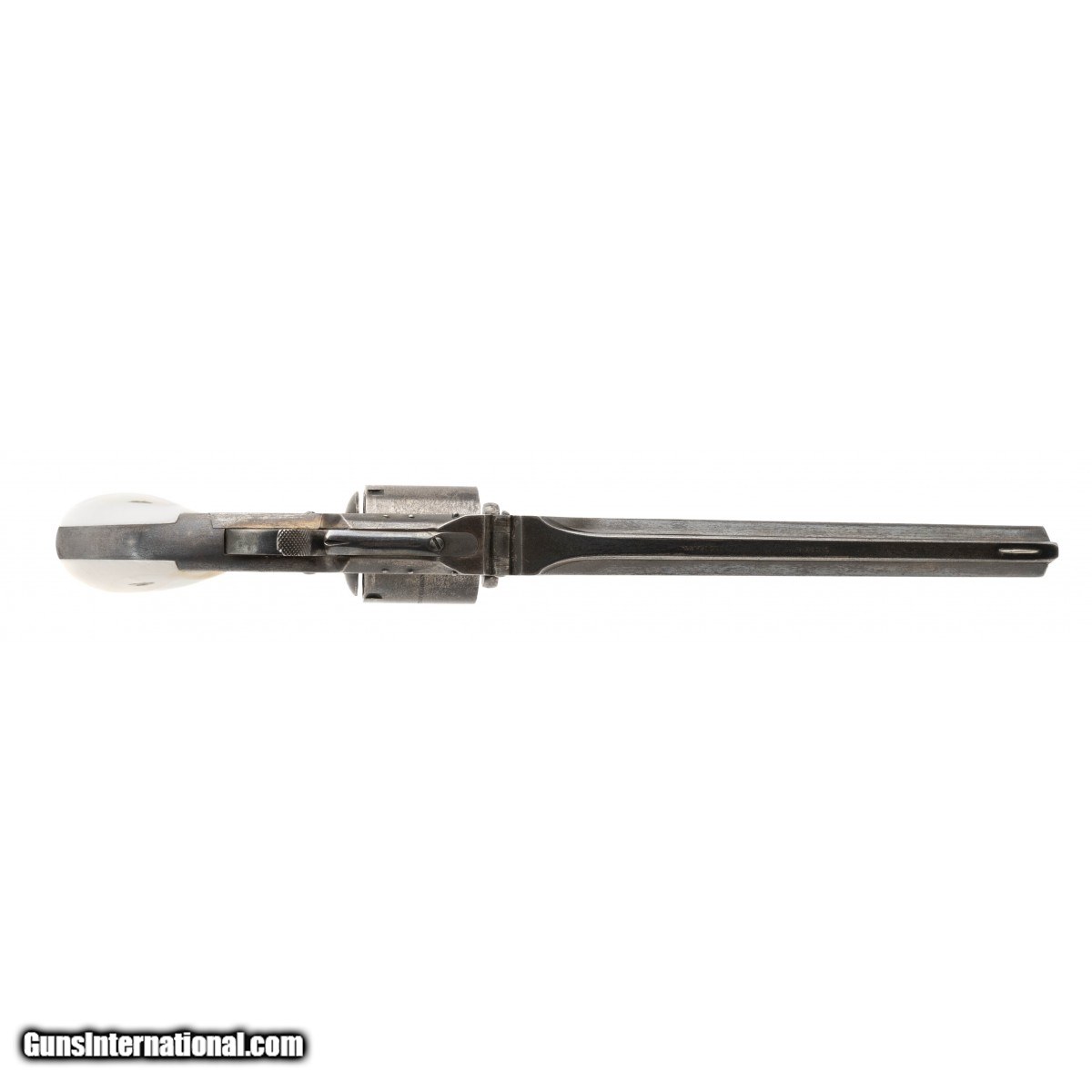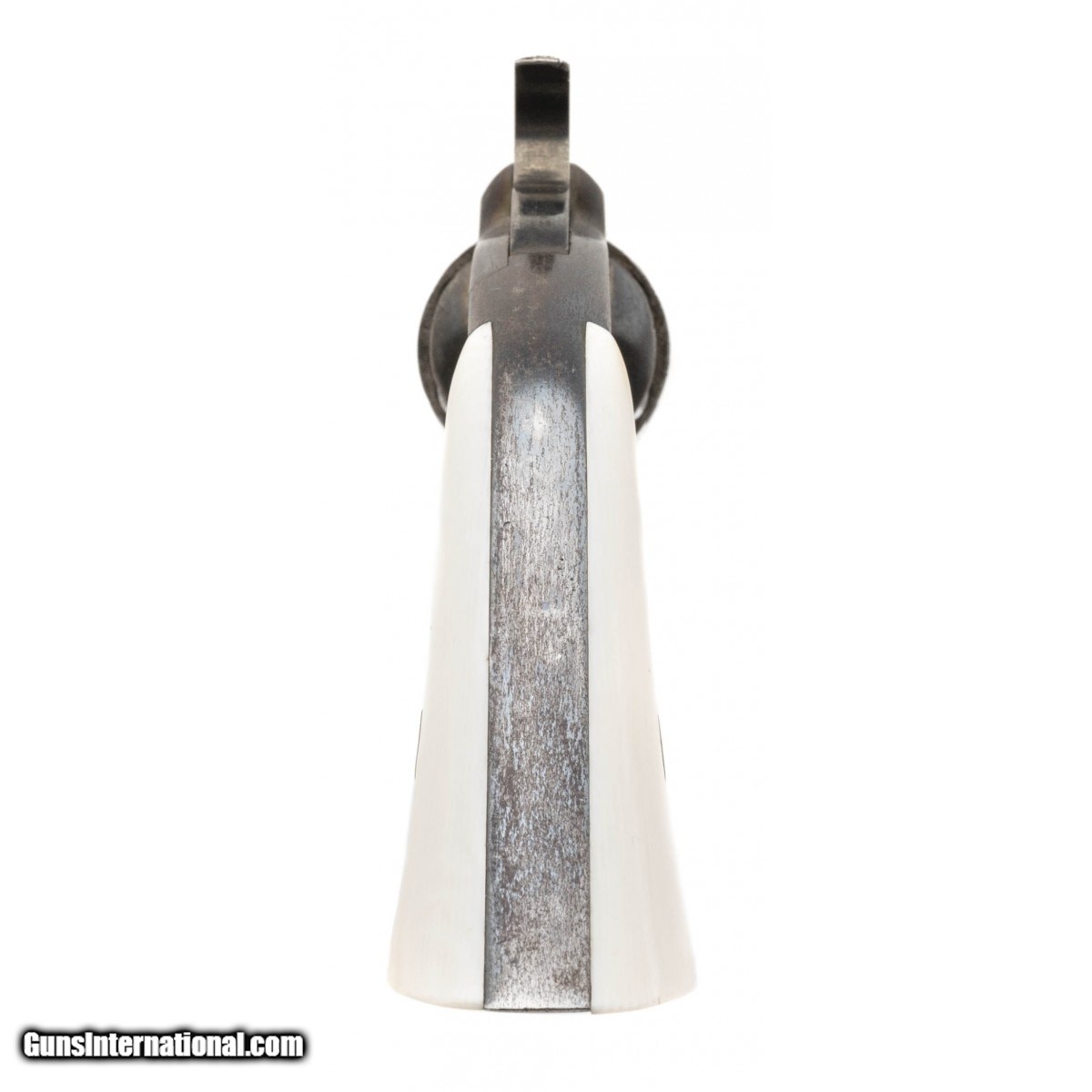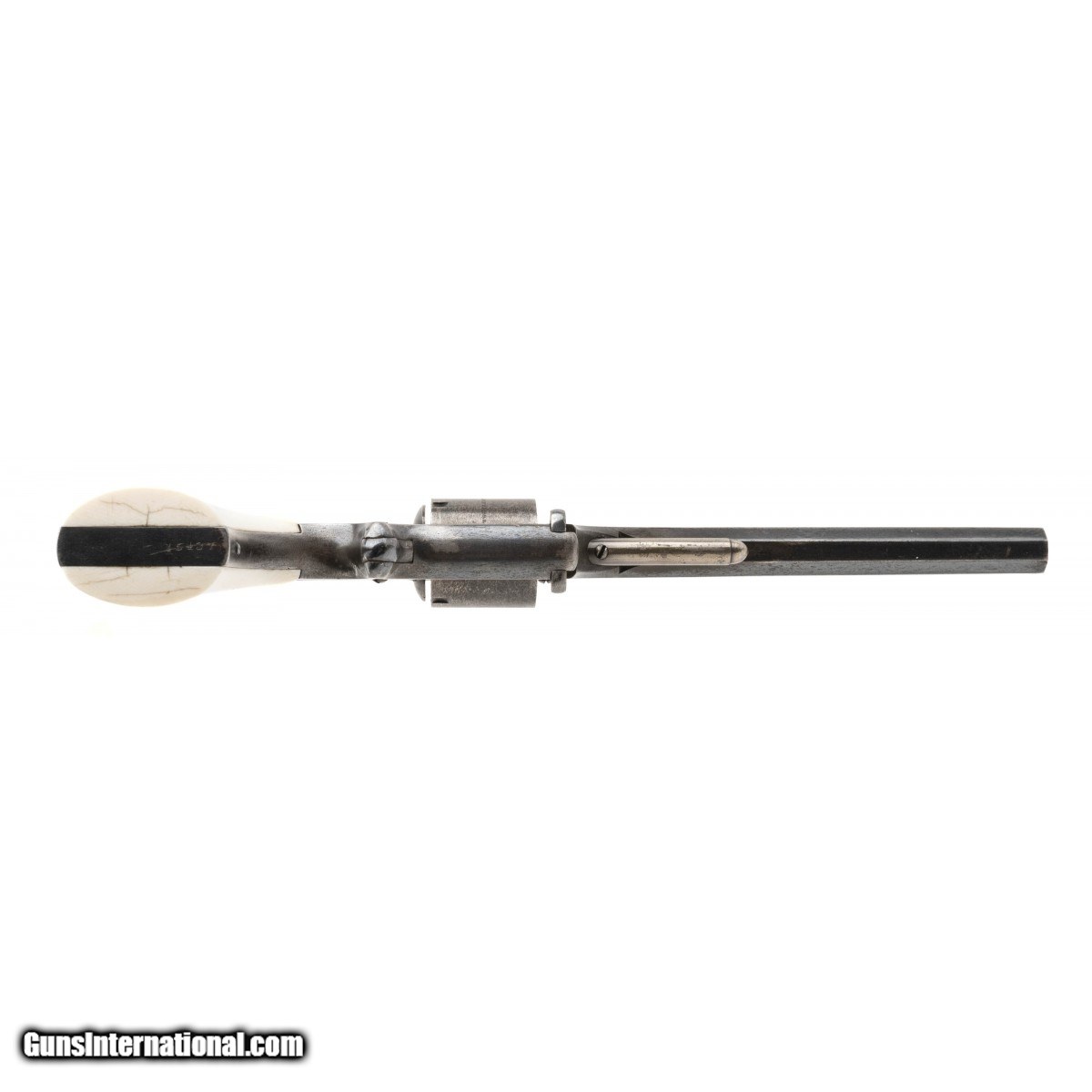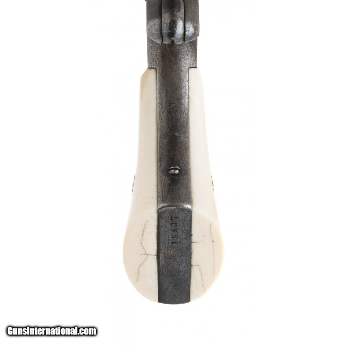 Description: "Serial number 15437. Made circa 1860s. 32 RF caliber with a 6" barrel. This gun is silver plated with 90% of the original finish. Grips are excellent and are numbered to a different gun. Bore is excellent. Very fine example! SOLD Antique: Yes |