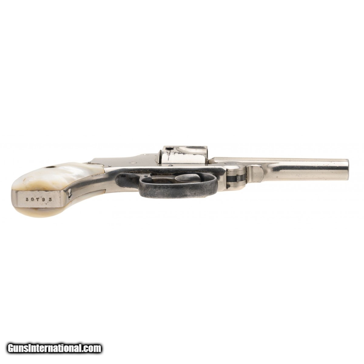 Serial No. 38793, circa 1890's, .32 S&W, 3"" round barrel. Nickel finish is in very good condition with light scratches noted. Bore is bright with a small area of pitting visible near the chamber, rifling remains strong. Mother of Pearl grips are good, left side has minor surface cracks and chips at the toe. Action indexes correctly with a tight lock up. Comes with original. Consignment