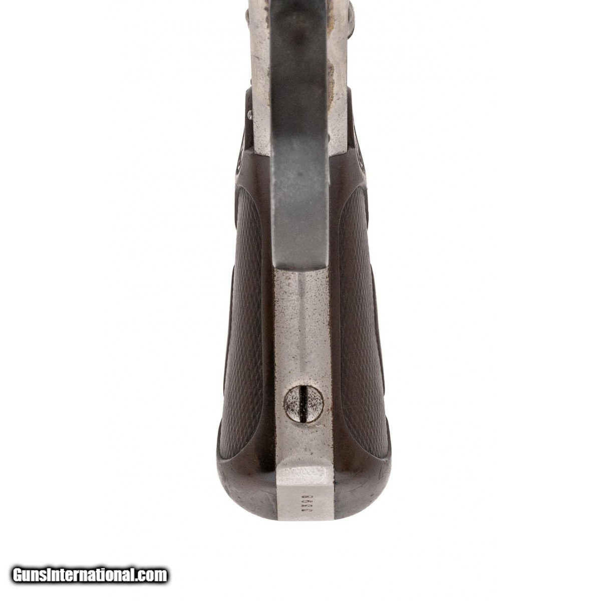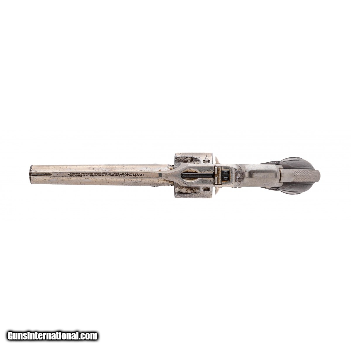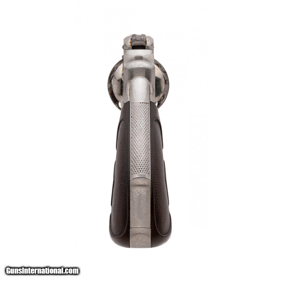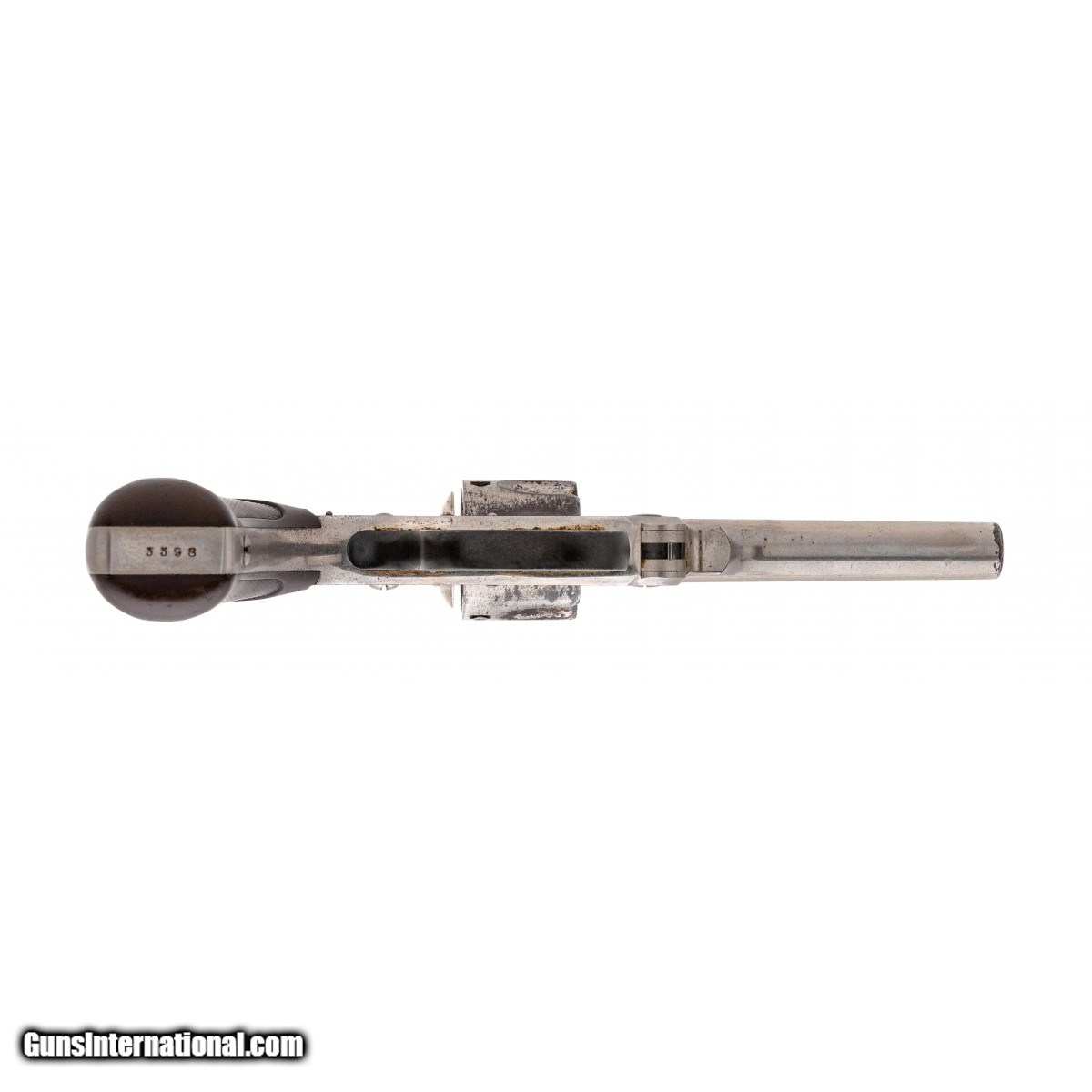 Description: " Serial No. 3598, circa 1890's, .32 S&W, 3.5"" round barrel. Mostly a dull factory nickel with light surface oxidation noted. Bore has frosting and pitting visible in the grooves. Brown checkered grips are near excellent condition. Trigger has beautiful case coloring, action indexes and functions correctly with a tight lock up. CONSIGNMENTS SOLD Antique: Yes |