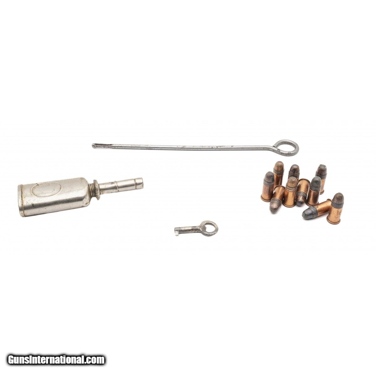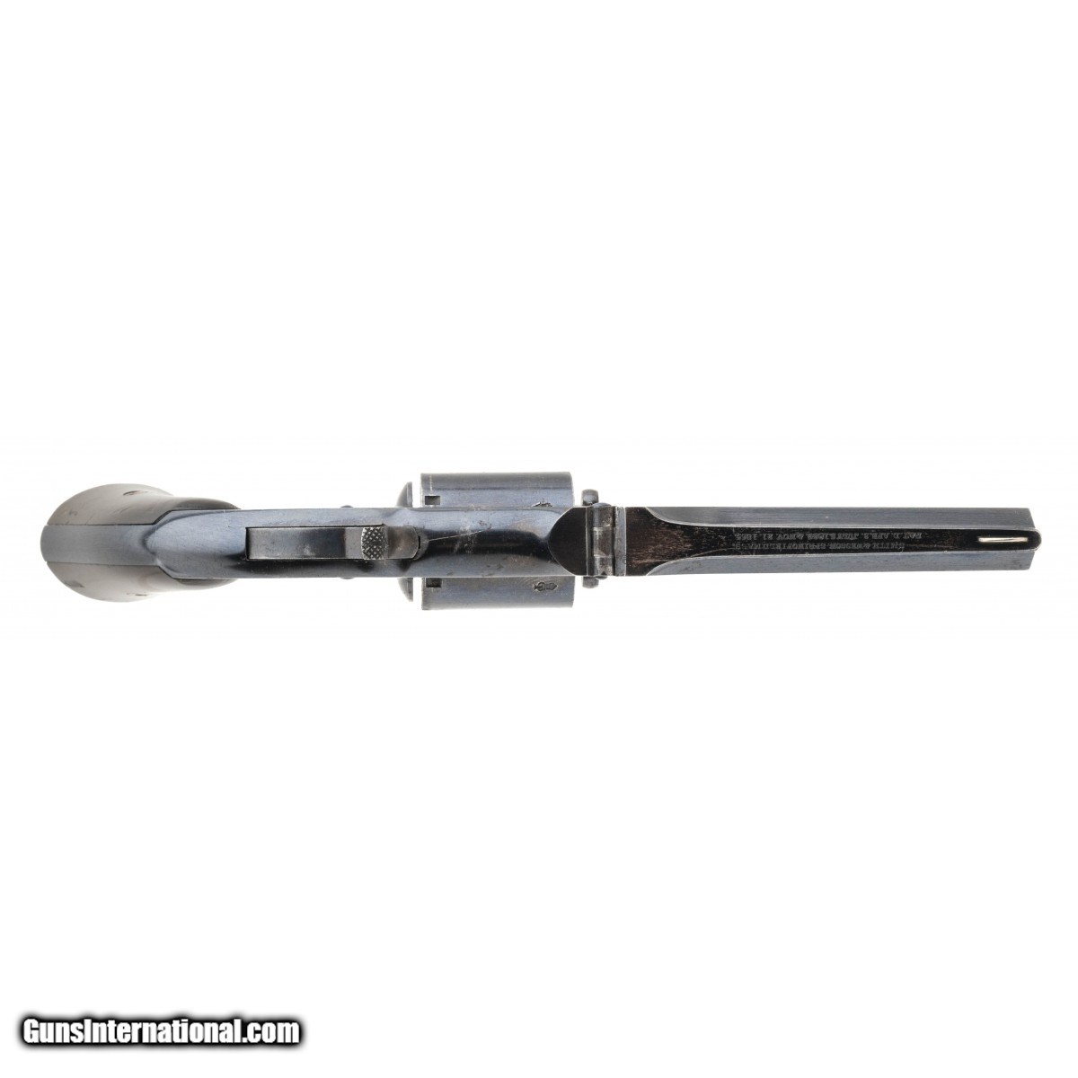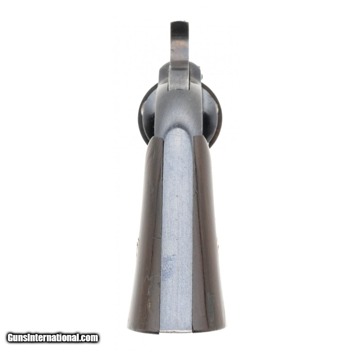 Description: " Serial No. 20343, circa 1865-1868, .32RF, 3.5"" round barrel. Beautiful revolver with 95% blue remaining, cylinder has British proof and acceptance marks. Bore has light surface frosting in the grooves. Two piece rosewood grips are in near excellent condition with very light handling wear visible. Action functions correctly, comes with case that has oiler, cleaning rod, key and 10 loose rounds. Consignment SOLD Antique: Yes |