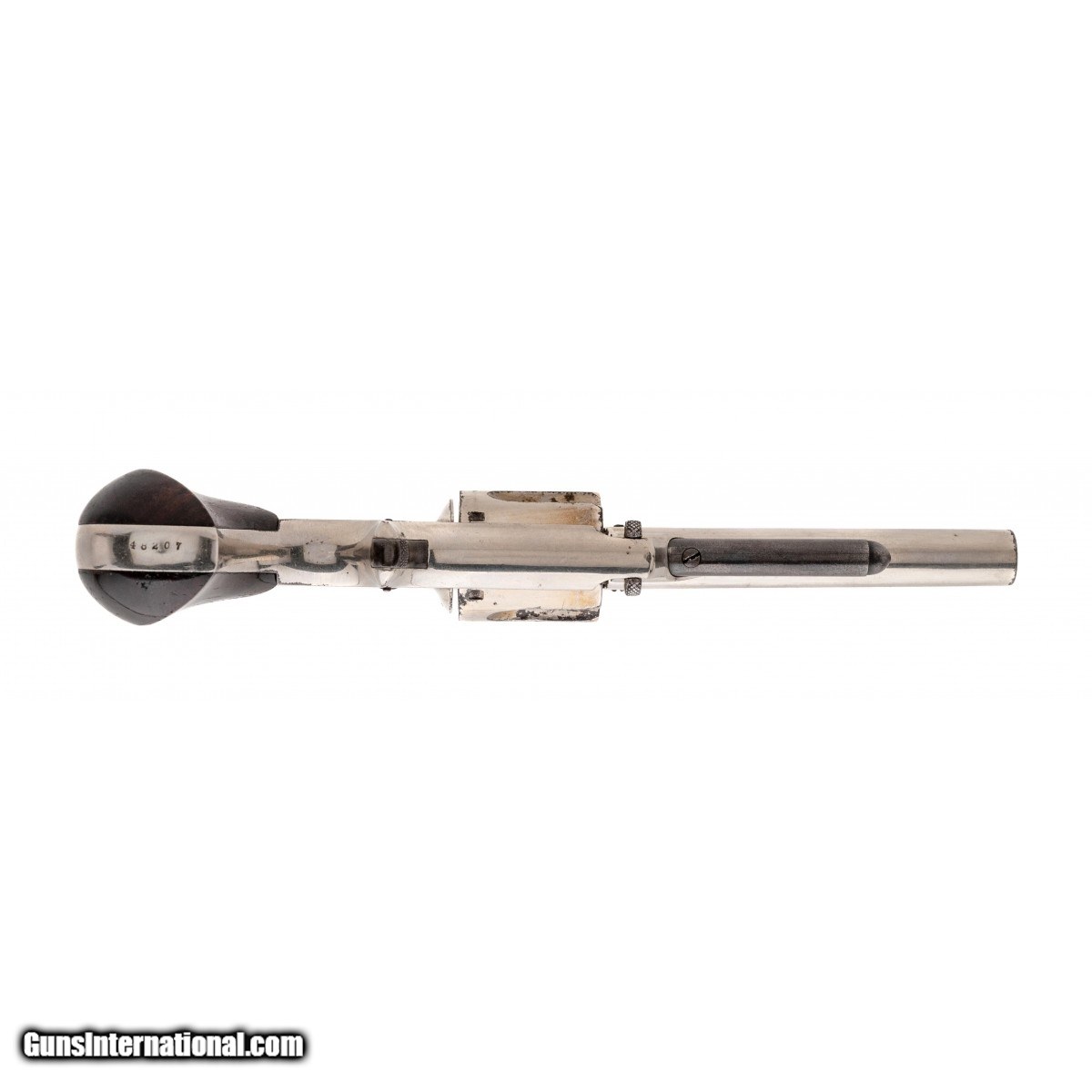 Description: "Serial No. 48207, circa 1868-1875, .32RF, 3.5"" round barrel. Bright nickel finish with expected minor light surface scratches, some flaking is visible on the cylinder. Bore is dark with pitting noted in the grooves, rifling remains strong. Grips are very good with light handling wear. Action indexes correctly with a tight lock up. Consignment SOLD Antique: Yes |