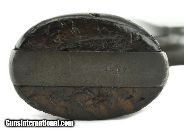 Description: Rare Smith & Wesson Schofield Wells Fargo Model Revolver. Scarce gun with the Wells Fargo markings. This gun started life as a regular military issue Schofield and then after these were retired from military service sold to Schuyler, Harltey & Graham who were New York dealers. These guns in turn were sold to Wells Fargo. The barrels on these guns were shortened to 5 ½” from 7 ½”. The right hand side of the enjector housing has the Wells Fargo markings. This is a very fine example with very good original blue on the barrel, frame and cylinder and even traces of case colors on the hammer and trigger guard. Nice sharp scarce gun! SOLD Antique: Yes |