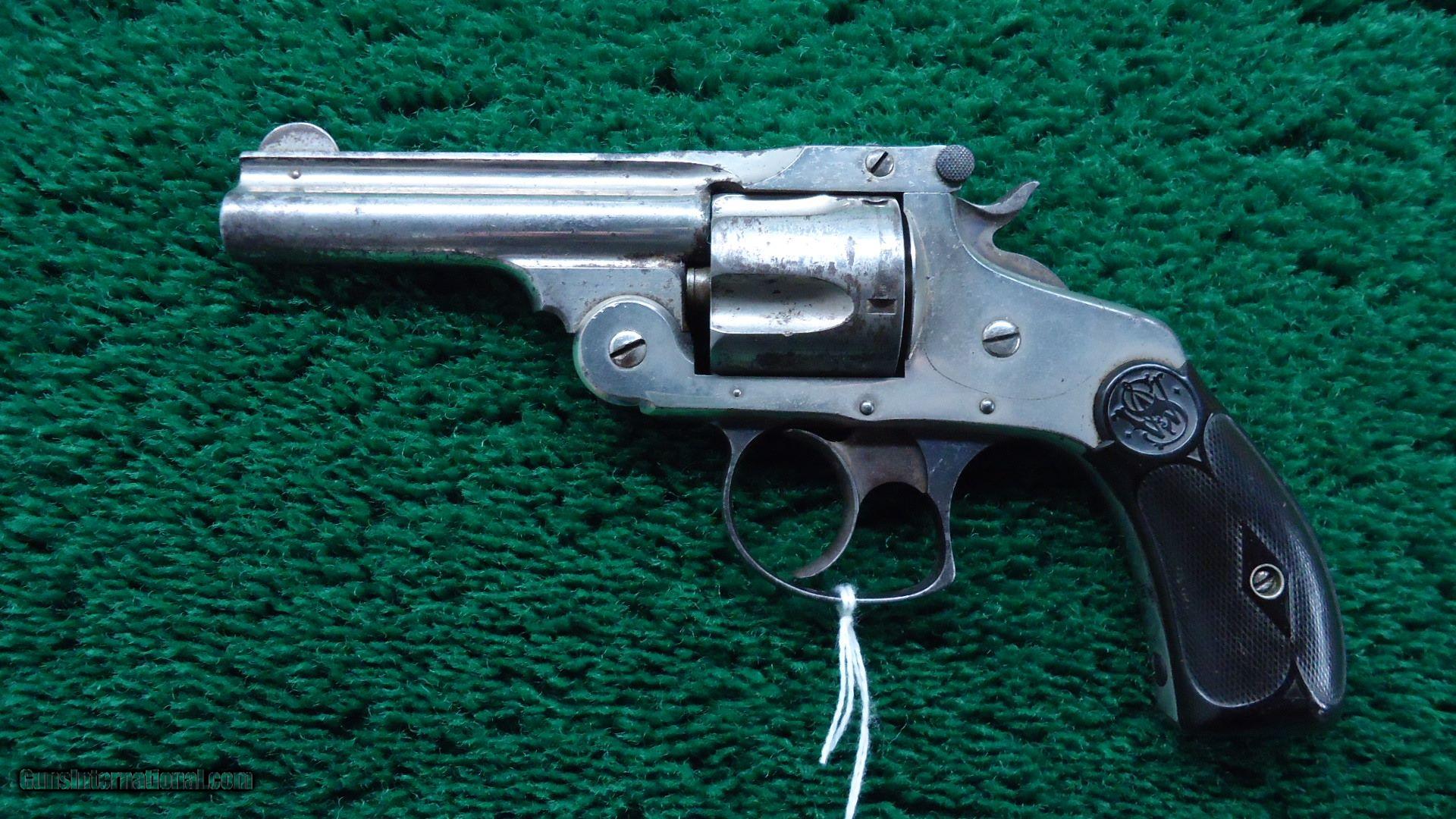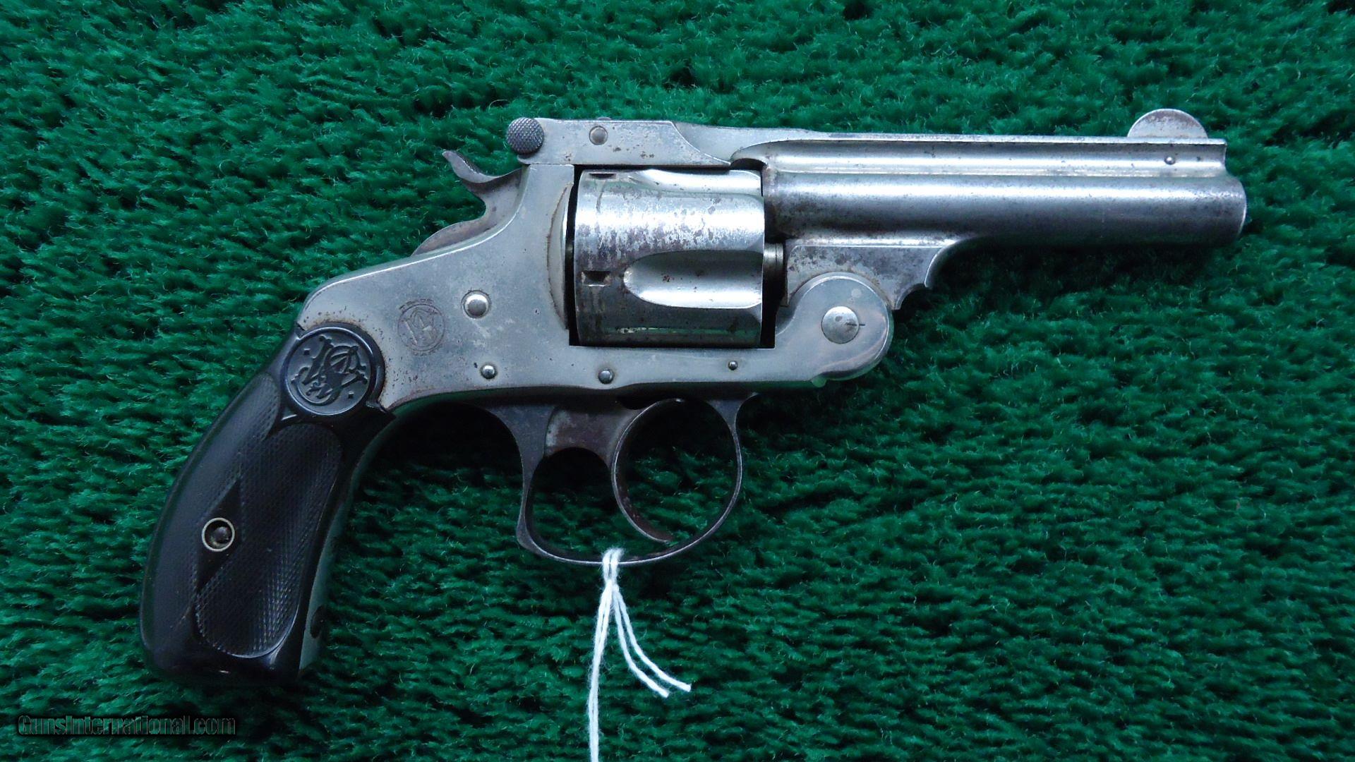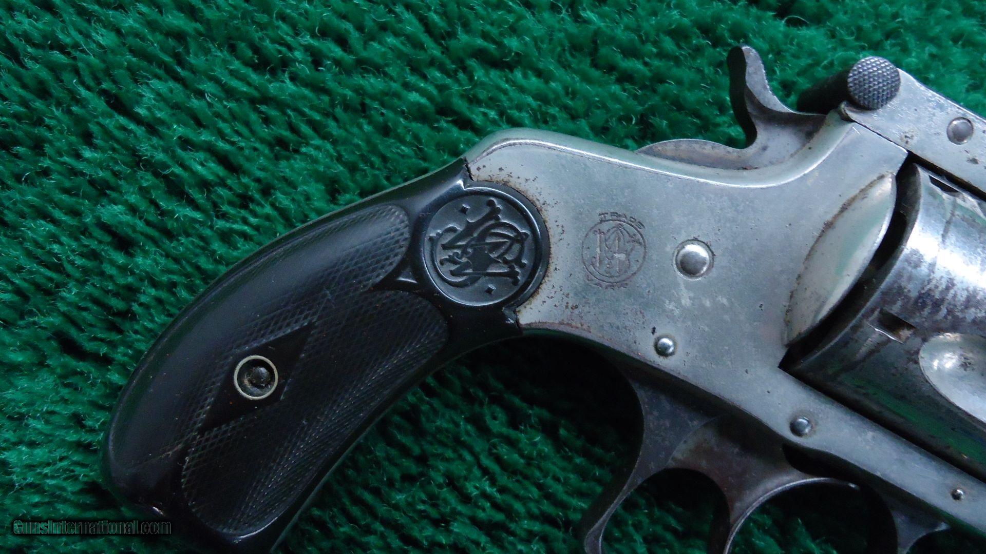 Description: 5 shot 38 S&W caliber. 3 1/4 inch solid rib round barrel. Most all of the original nickel finish remains. Strong traces of case color remain on hammer and trigger. "S&W" monogram checkered black hard rubber grips show some wear but are in good condition. Nice working double action. Good bore. Matching serial numbers. Nice Top-Break Fourth Model Smith & Wesson revolver. 216,300 made between 1895-1909. Leroy Merz Antique Firearms specializes in antique and vintage Winchesters and other fine American firearms. Since 1965 Mr. Merz has taken part in the world of firearms and has been a contributor to many well known reference books. Just recently we mailed the 128th edition of our privately-published catalog. We have hundreds of additional guns in every price range at our home online. Search for Merz Antiques in google. SOLD Antique: Yes |