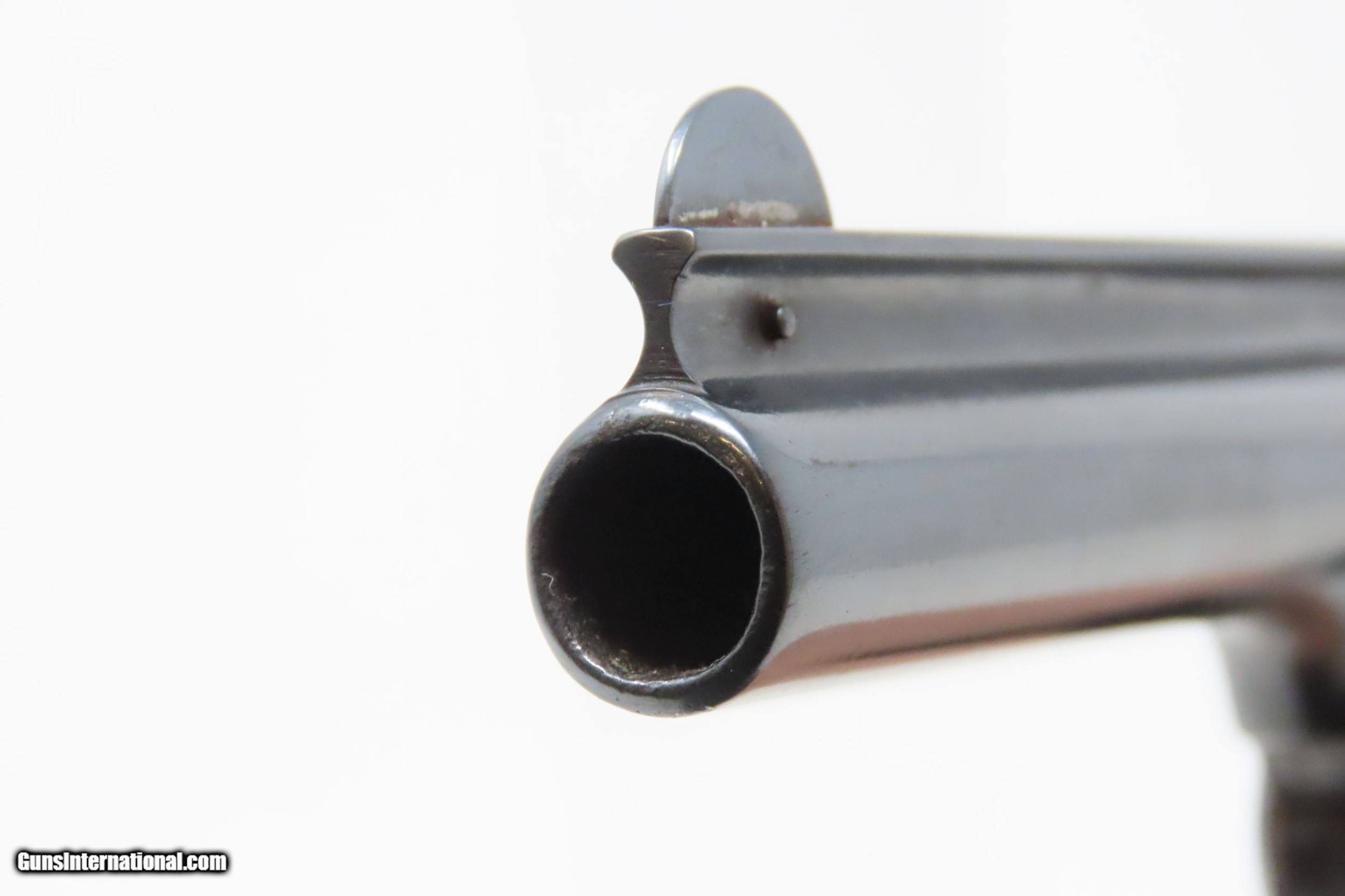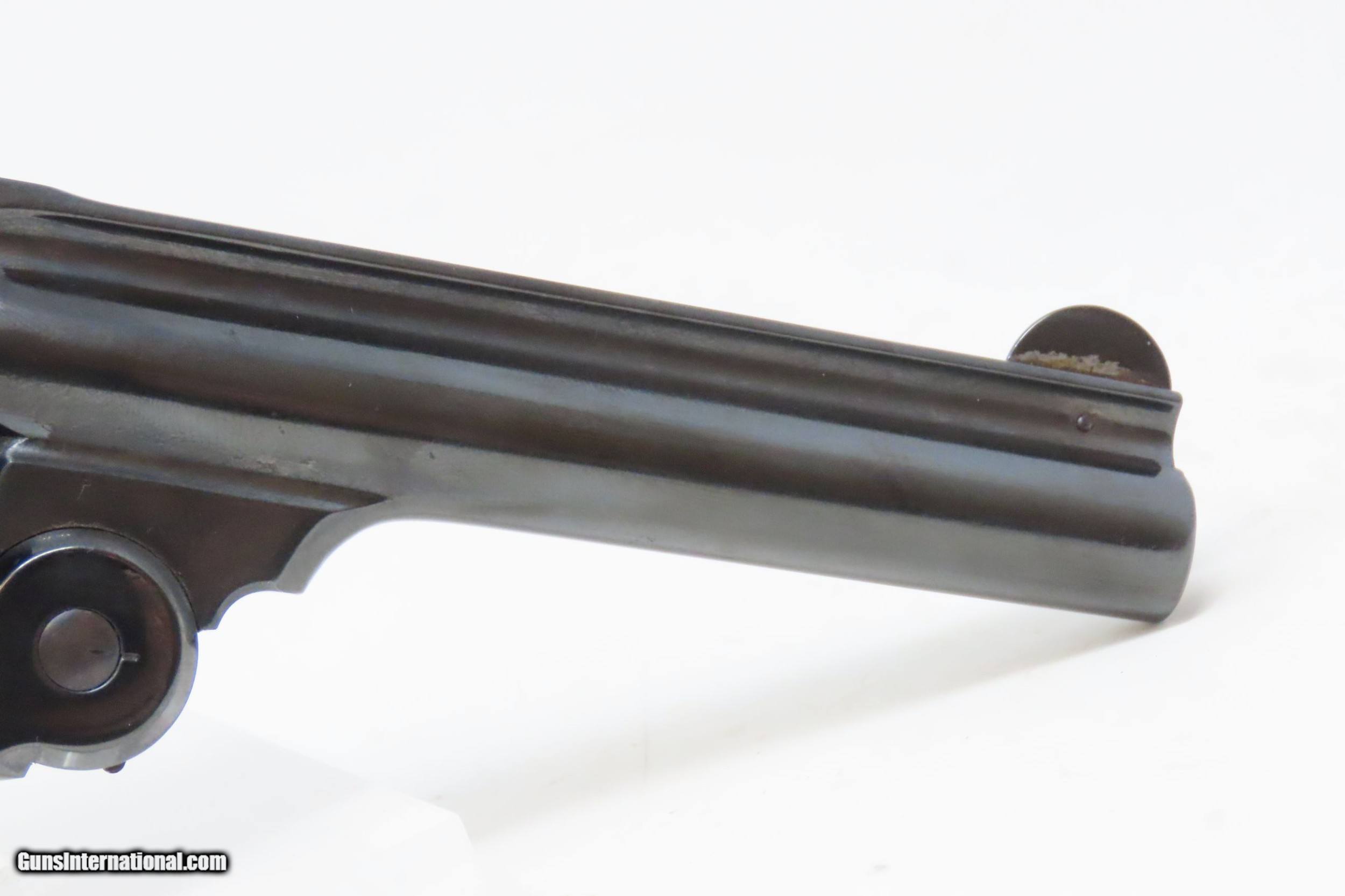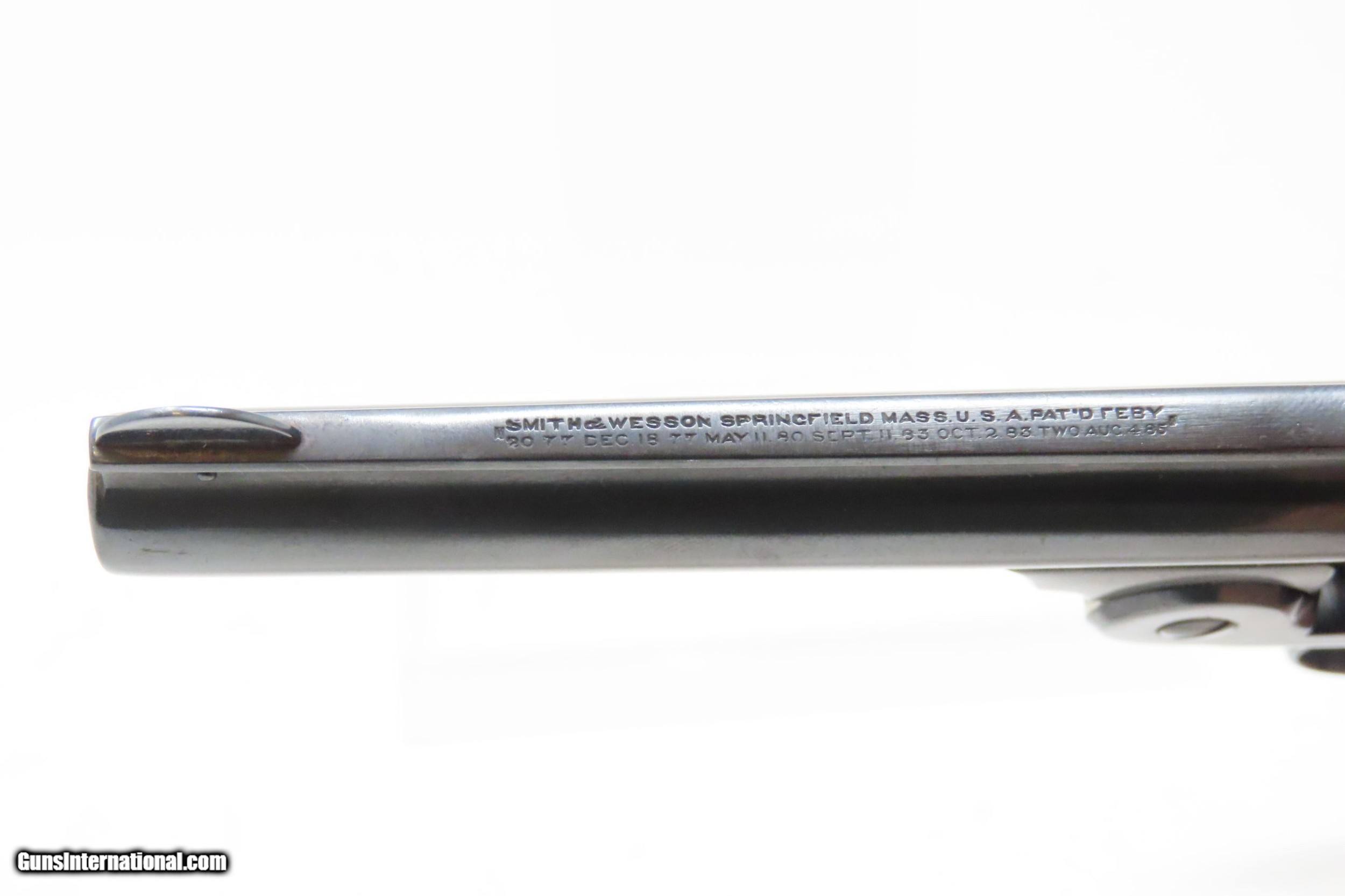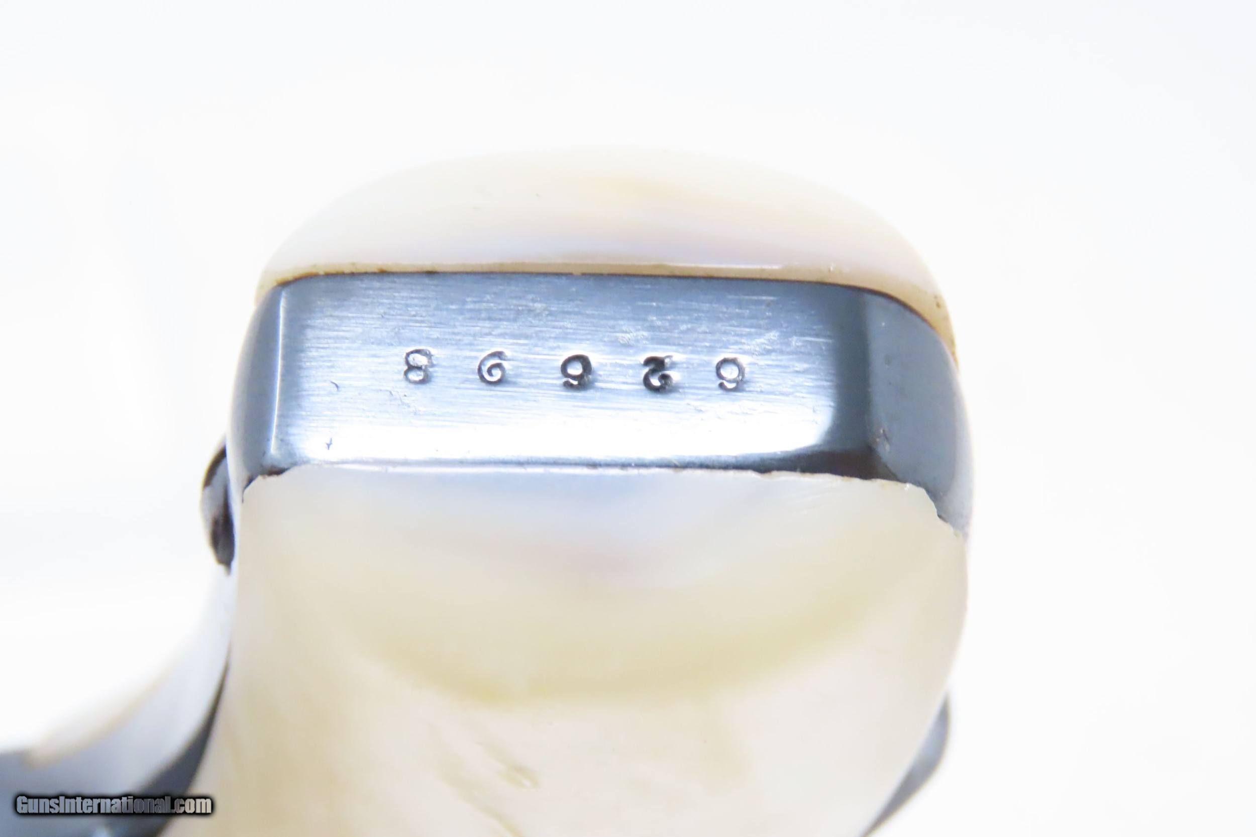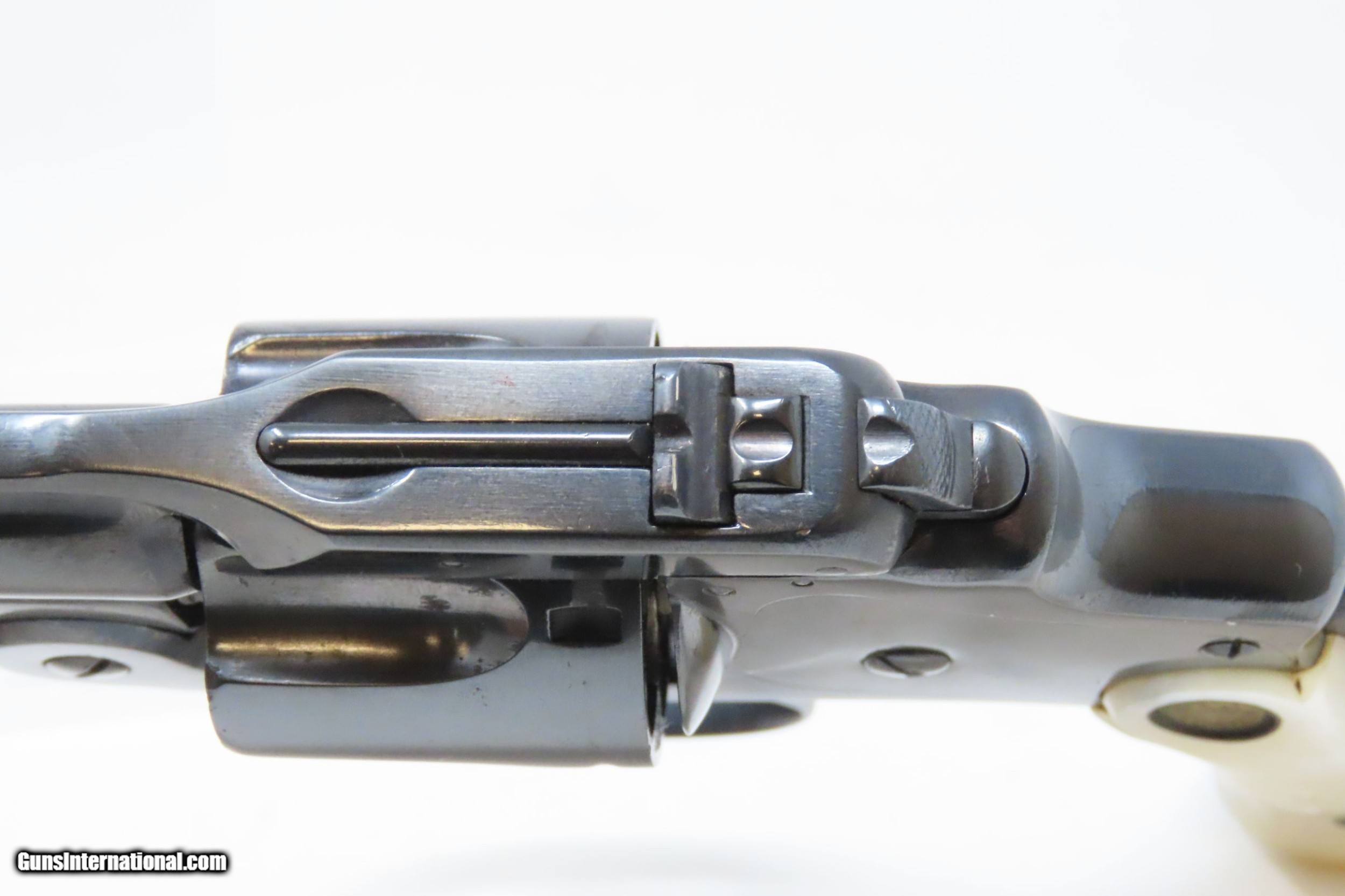 Description: Antique SMITH & WESSON 3rd Model .38 S&W Safety Hammerless “LEMON SQUEEZER” 5-Shot Smith & Wesson Top Break Revolver with PEARL GRIPS! Here we present an antique 3rd Model Smith & Wesson .38 Caliber Double Action Safety Hammerless Revolver, made between 1890 and 1898 in Springfield, Massachusetts with a serial number range of 42484 through 116002. The Smith & Wesson Safety Hammerless models were produced from 1887 (1888 for the 32) to just before World War II. They were chambered in either .32 S&W with a six shot cylinder or .38 S&W with a five-shot cylinder. They were most often produced with a 2-inch, 3-inch, 3.25 inch, or 3.5-inch barrel. But some 6" barreled versions are known to exist. This revolver was made to be a simple, compact and reliable firearm that one could carry in a pocket or a holster around the turn of the 20th Century. This revolver features an internal hammer design to remove risk of snagging or stopping the action. There is a grip safety built into the back of the grip frame. The frame is a top-break design that activates the automatic ejector. These are very nice features from the turn of the 20th Century! They were known as "The New Departure" to reflect the company's new approach to designing revolvers. With gangsters, and career criminals running rampant, this example would have been the “pocket advantage” a person needed. The overall condition is very good. Excellent action. Bright bore (contains a patch of pitting in the middle of the bore). Sharp markings. Both pearl grips are in fine shape and remain vibrant. Numbers match. This example has been nicely refinished. Own the original! This is a legitimate antique and not a reproduction. Barrel is 4 inches. Caliber: .38 S&W Overall condition as seen in photos. Very Fast. Very Safe. FREE SHIPPING WORLDWIDE. Delivered directly to your door by express mail! Guaranteed AUTHENTIC & Includes CERTIFICATE OF AUTHENTICITY. ancestryguns $1200 #217461 SOLD Antique: Yes |