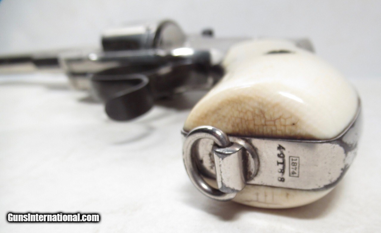 Description: Smith & Wesson 3rd Model Russian Revolver; Serial No. 49188; Made 1870’s; .44 Russian Caliber; 6 ½” Barrel; 90+% Condition; Lots of Original Nickel Finish Remains; Nice Period Correct Ivory Grips; Very Nice 145+ Year-Old Smith & Wesson Russian Model Revolver; See All Photos for Condition; No Texts; Call (254)541-5765 or Email Only; PERSONAL PROPERTY of Harold Wieser; NOTICE: We Do Not Do Any Consignments - All Items Listed are Owned by Us - NO SALES to New Jersey or New York City - Antiques Only to Massachusetts and California; NOTE: All Modern Firearms Must Go to FFL Dealer who will Accept From Individual with Texas Driver License; Price: $4,975 + $75 S&H; Payment Address: Harold Wieser - 1466 U.S. Hwy 77 - Rosebud, TX 76570; SEND PAYMENTS VIA USPS PRIORITY MAIL; BEWARE of SCAMS!!! - DO NOT SEND MONEY or CORRESPONDENTS ELECTRONICALLY UNLESS YOU HAVE SPOKEN to HAROLD WIESER FIRST! (254)541-5765 Antique: Yes Manufacturer: Smith & Wesson Model: 3rd Model Russian Serial Number: 49188 Price: $4,975.00 Contact Seller |
