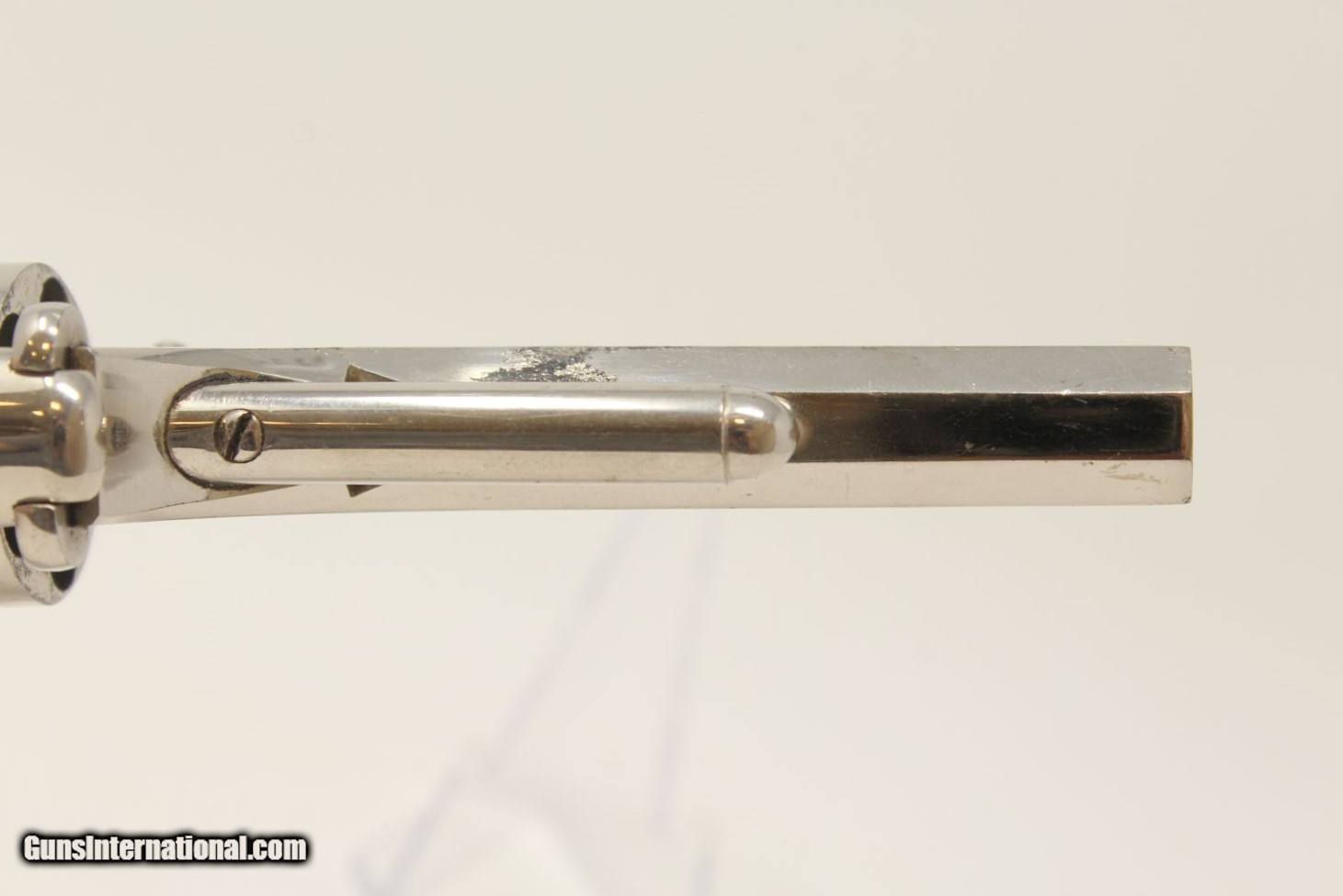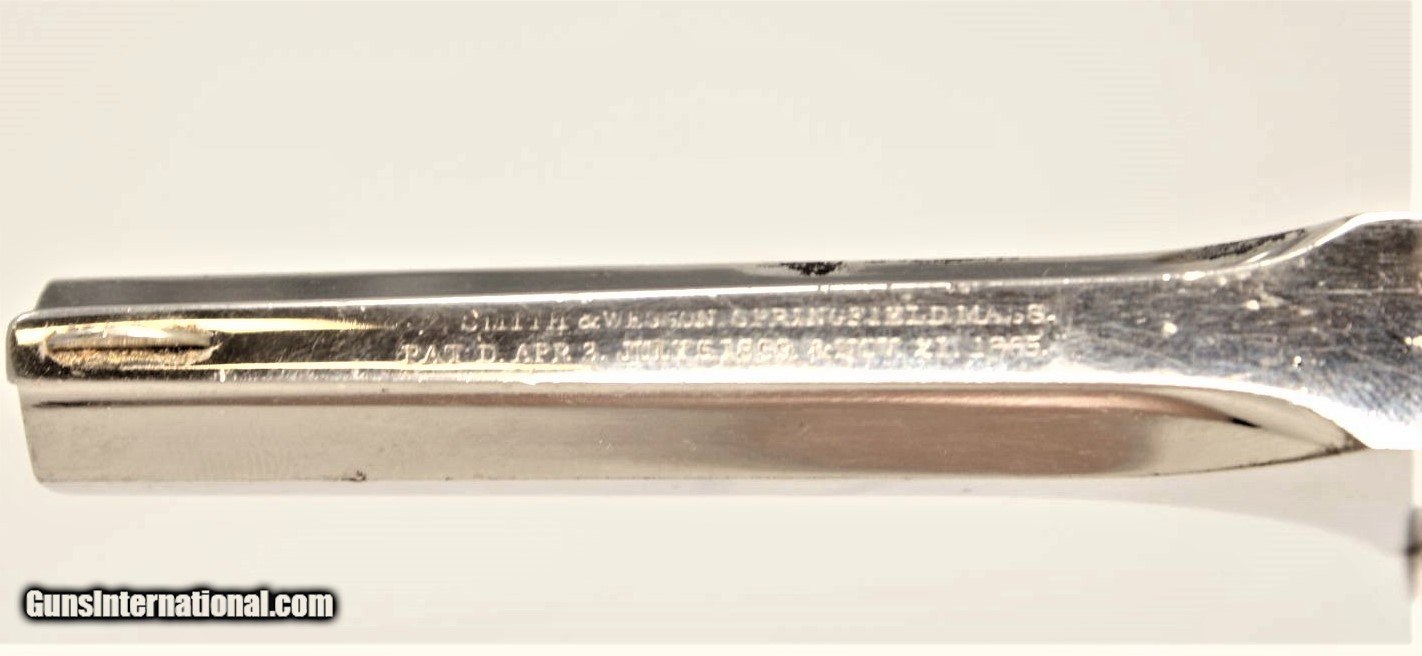 Description: Antique SMITH & WESSON No. 1-1/2 Rimfire REVOLVER FIRST ISSUE Nickel Finished Here we present an antique Smith & Wesson Model Number 1-1/2 .32 Rimfire Revolver, made circa 1865-68 in Springfield, Massachusetts. The No. 1 was Smith & Wesson’s first metallic cartridge firearm. It utilized the idea of the “bored through cylinder”, which was patented by Rollin White and subsequently exclusively licensed by Smith & Wesson. This concept has forever changed revolving firearms design, and is the same idea used in revolvers today. S&W, via Rollin White himself, aggressively sued any patent infringers and were able to hold their monopoly on the American market for cartridge revolvers from about 1857 to 1870, whereupon their patent expired. The results were a very profitable business, a broke Rollin White, and a grudging U.S. Chief of Ordnance Alexander Dyer, who was still angry in 1870 about not being able to use the technology during the Civil War. The U.S. government ended up giving Colt their contracts since they valued the larger .44 caliber in the Colt 1860 Armies over the .32 caliber full sized No. 2 Armies. The S&W Model No. 1-1/2 Revolver is simply a scaled-up version of the No. 1, down to the aesthetics. The .32 continued to evolve just as the .22 version, both in features and aesthetics. It was also a commercial success and was well-received by the buying public seeing 26,300 of the First Issue produced and over 100,000 of the updated Second Issue. This one features the early Smith & Wesson flat grip style that preceded the bird’s head grip. 5 shots of .32 S&W would have done the job in many scenarios and maintained a relatively small presence in the pocket or holster of an armed citizen in the turbulent 19th Century. The overall condition is very fine. 95% of the original nickel finish is present. The markings are clear. The rosewood grips are in very good condition. The bore is in good shape with strong rifling. The action is excellent, strong and crisp. Here is a very nice S&W revolver from the glory days of the Old West! Own the original! This is a legitimate antique and not a reproduction. Barrel is 3-1/2 inches. Caliber: .32 Rimfire Overall condition as seen in photos. Very Fast. Very Safe. FREE SHIPPING WORLDWIDE. Delivered directly to your door by express mail! Guaranteed AUTHENTIC & Includes CERTIFICATE OF AUTHENTICITY. ancestryguns $850 #190496 SOLD Antique: Yes |