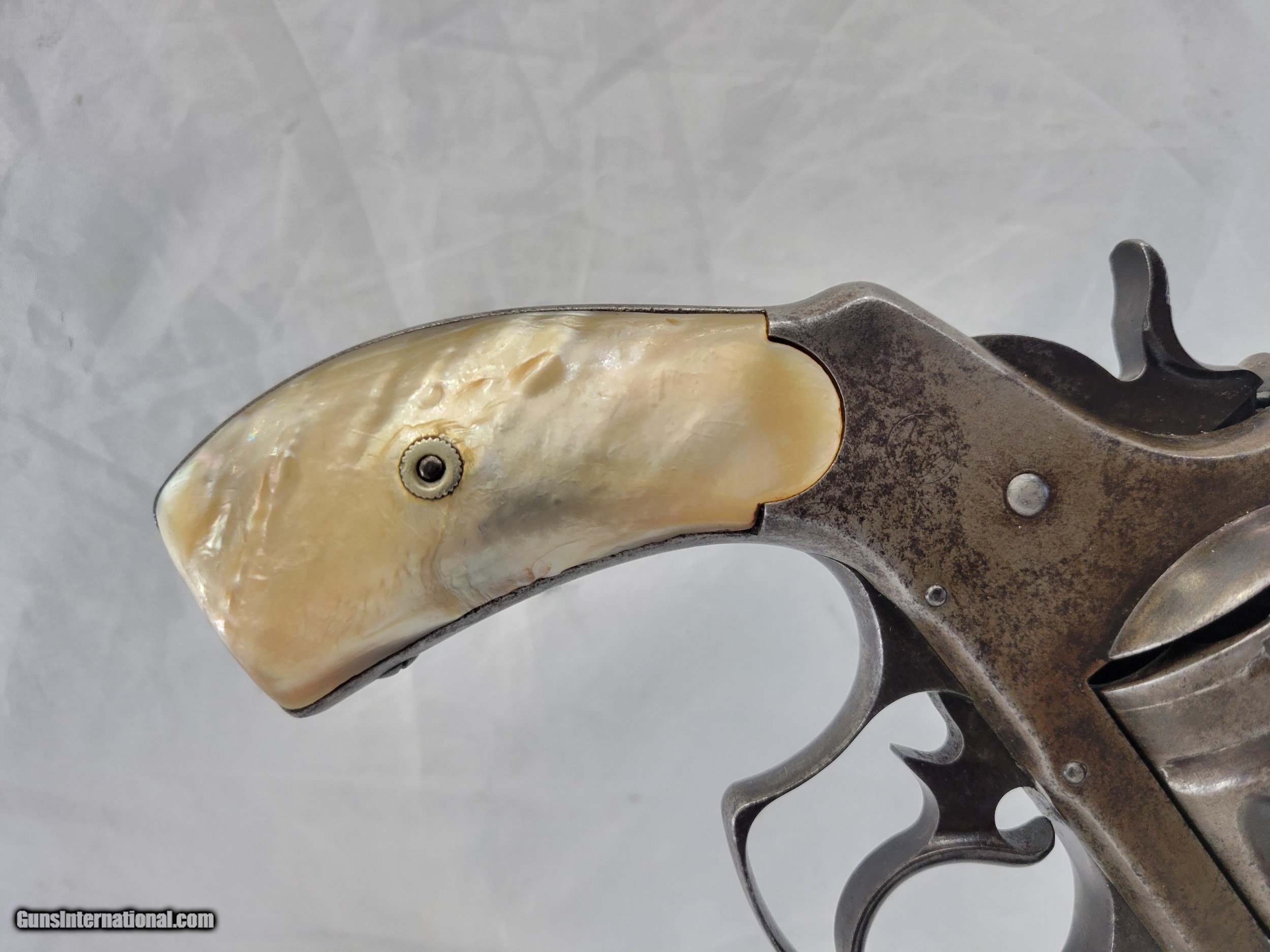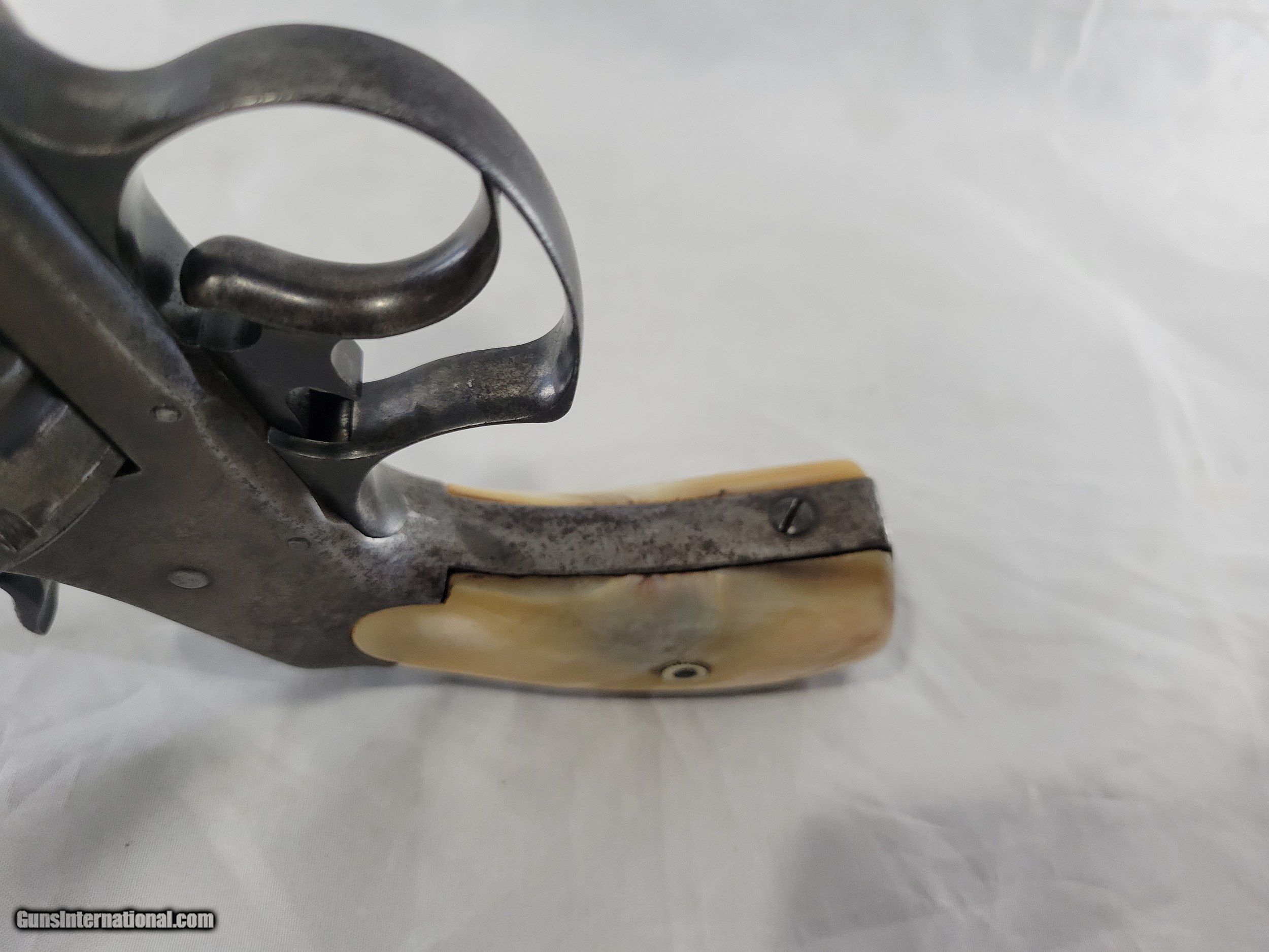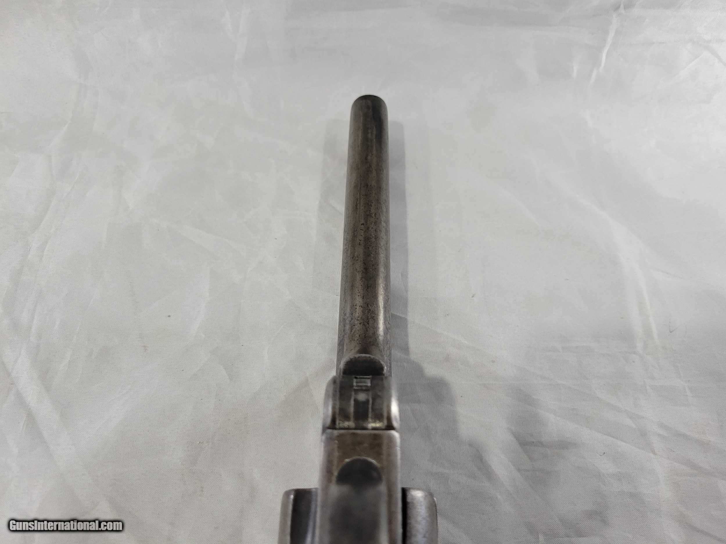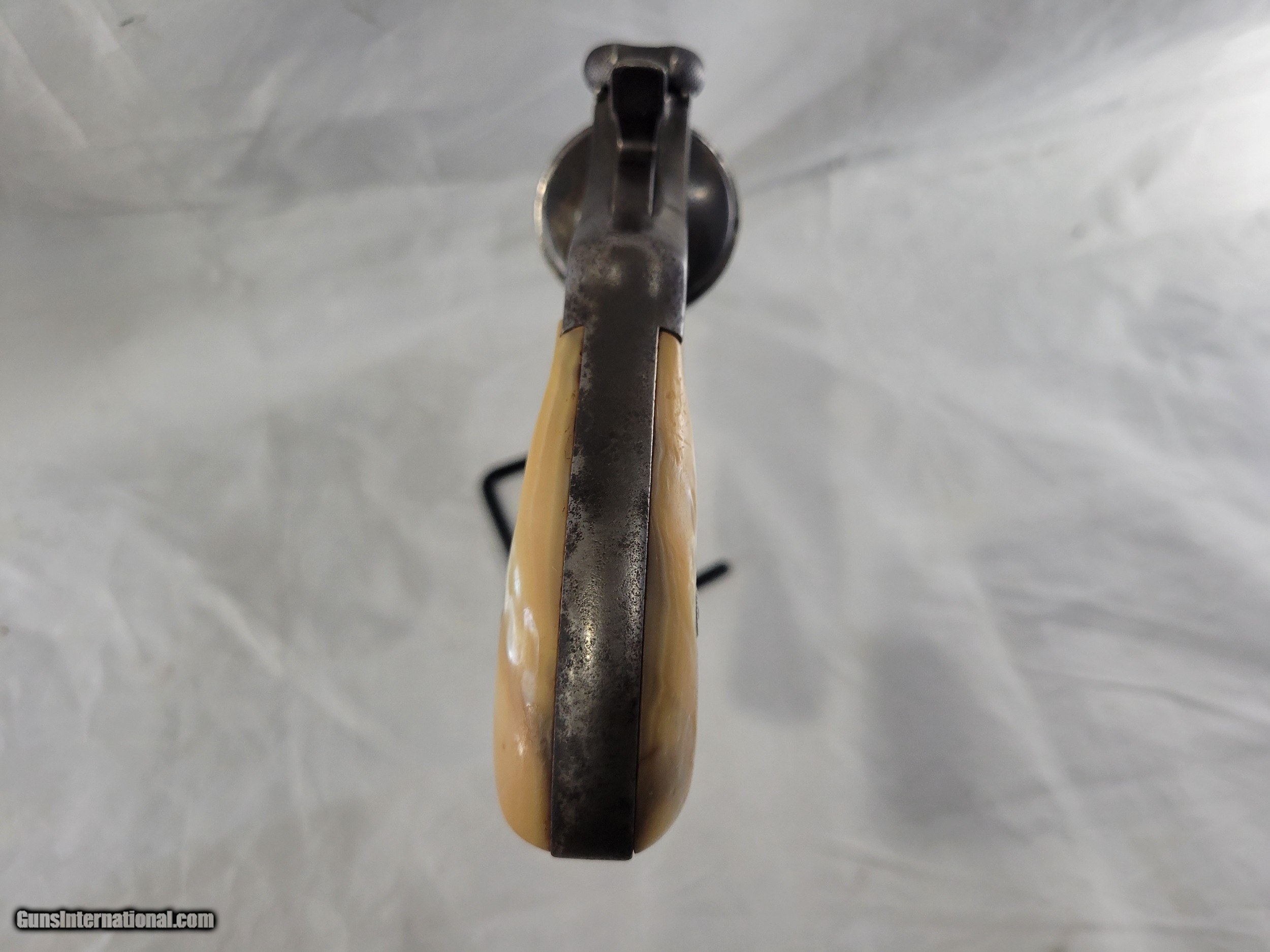 Description: INV 10618 AWESOME SMITH & WESSON MDL. DOUBLE ACTION FRONTIER CAL. .44 RUSSIAN SER. 40883. BEEN THERE AND DONE THAT. THIS OLD DOUBLE ACTION COWBOY GUN RETAINS ABOUT NONE OF ITS ORIGINAL FINISH. WHATS REMAINING IS ALONG THE BARREL RECESSES WITH SMALL PITS THROUGHOUT THE ENTIRE GUN. THE GUN BARES THE SMITH AND WESSON LOGO ON THE LEFT SIDE AND THE SMITH AND WESSON PATENT DATES ALONG THE TOP OF THE BARREL. THE PEARL GRIPS HAVE CHIPS WITH SOME LIGHT DINGS AND SCRATCHES. THE GUN FUNCTIONS FLAWLESSLY BUT THE ACTION IS LOOSE IN THE FRAME AND THE CYLINDER HAS SOME WOBBLE. THE BORE IS BRIGHT AND SHNIY WITH FROST THROUGHTOUT. ALL VISIBLE SERIAL NUMBERS MATCH. A GREAT WALL HANGER FOR THE MAN CAVE OR FOR SOMEONE WHO WANTS AN OLD PROJECT.. MODESTLY PRICED AT.... $895. To purchase this firearm or if you want to request more information contact us at: Email ckguns[at]ymail[dot]com Phone 201-512-0002 Cell 201-575-6838 FAX 201-215-4759 We accept most major credit cards. Prices shown are Discounted 3% for Cash or Check. The buyer must be familiar with all the laws governing the purchase and the ownership of firearms in their own city and state. The Yankee Armorer, Inc is not responsible for any failure to comply with or observe these laws. The Yankee Armorer, Inc will only ship after full payment and receipt of all required documents. Shipping: Add $35.00 for handguns, $45.00 for long guns. New Jersey buyers are subject to a 7% sales tax. The Yankee Armorer, Inc offers a 3 day inspection period with full refund upon return of intact firearm and in the original condition. The Yankee Armorer, Inc offers a no interest lay away program - 25% down; 25% in 30 days; 25% in 60 days; and full payment in 90 days. Any violation of this policy is subject to restocking and forfeiture of all payments. Any variation from this policy must be agreed to in advance. Unshipped Cancelled sales are subject to a 20% restocking fee. Be advised that all firearms sold by The Yankee Armorer, Inc. or the Gun Exchange, LLC (SELLER) are sold as collector’s items. They have not been fired or tested for safety and must be examined by a license gunsmith prior to use. By purchasing any item from the (SELLER), you are agreeing to hold the (SELLER) free from any damages or lawsuits of any nature. Any item left for transfer or storage will be charged to $25.00 per month, per item from the day of its receipt. Any variation from this policy must be agreed to in advance. Store hours 10:00 am to 5:00 pm Tuesday -Saturday. It's always best to call for appointment. Store 201-512-0002, cell 201-575-6838. SOLD |