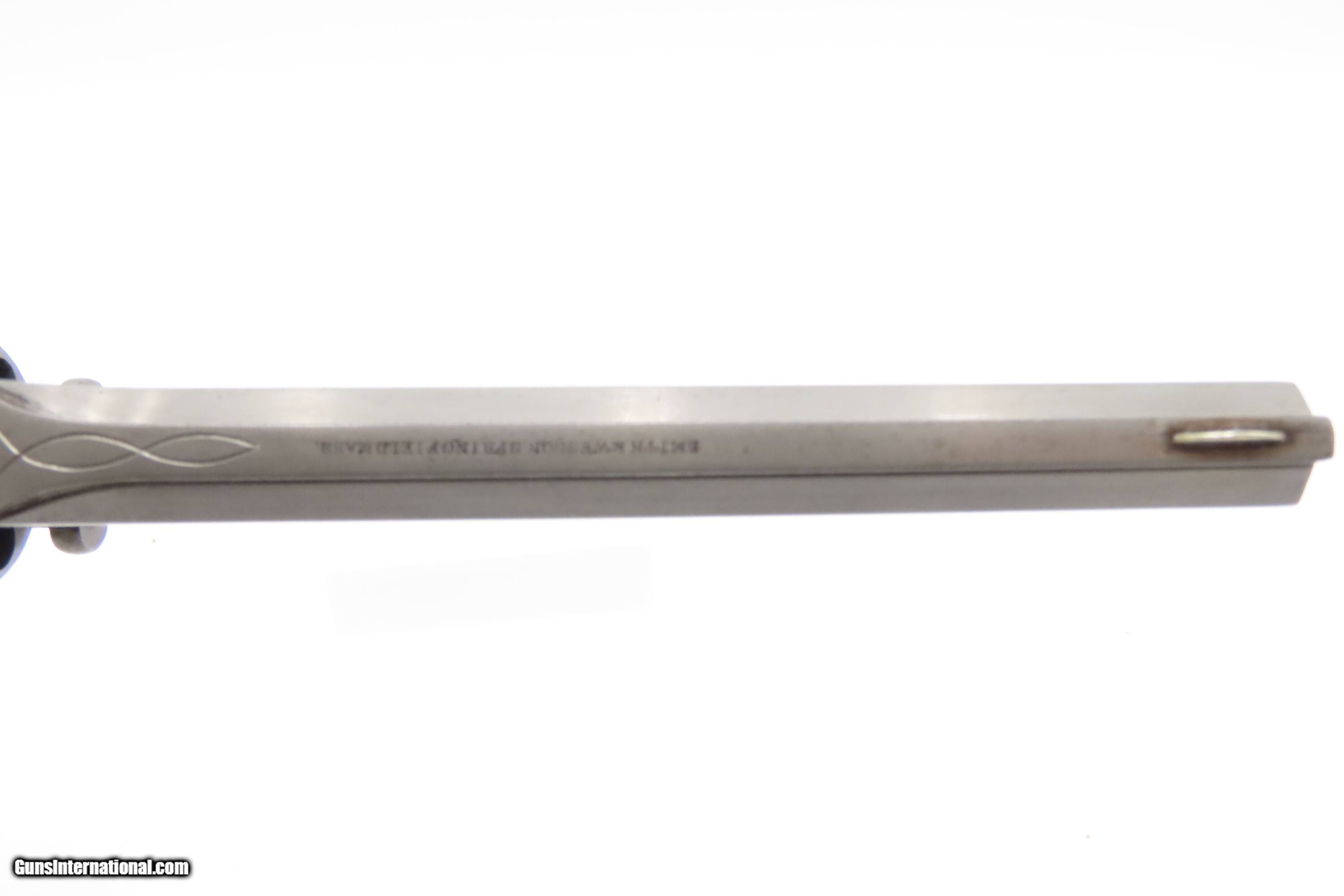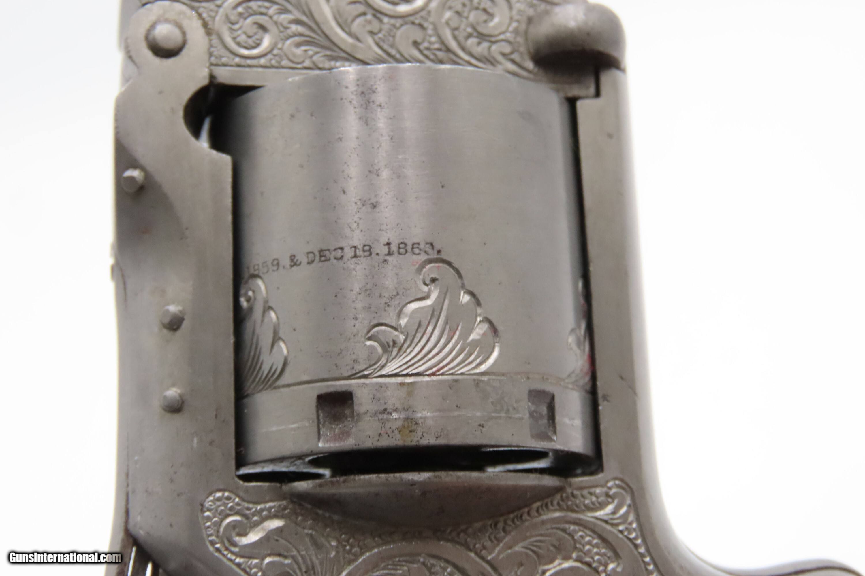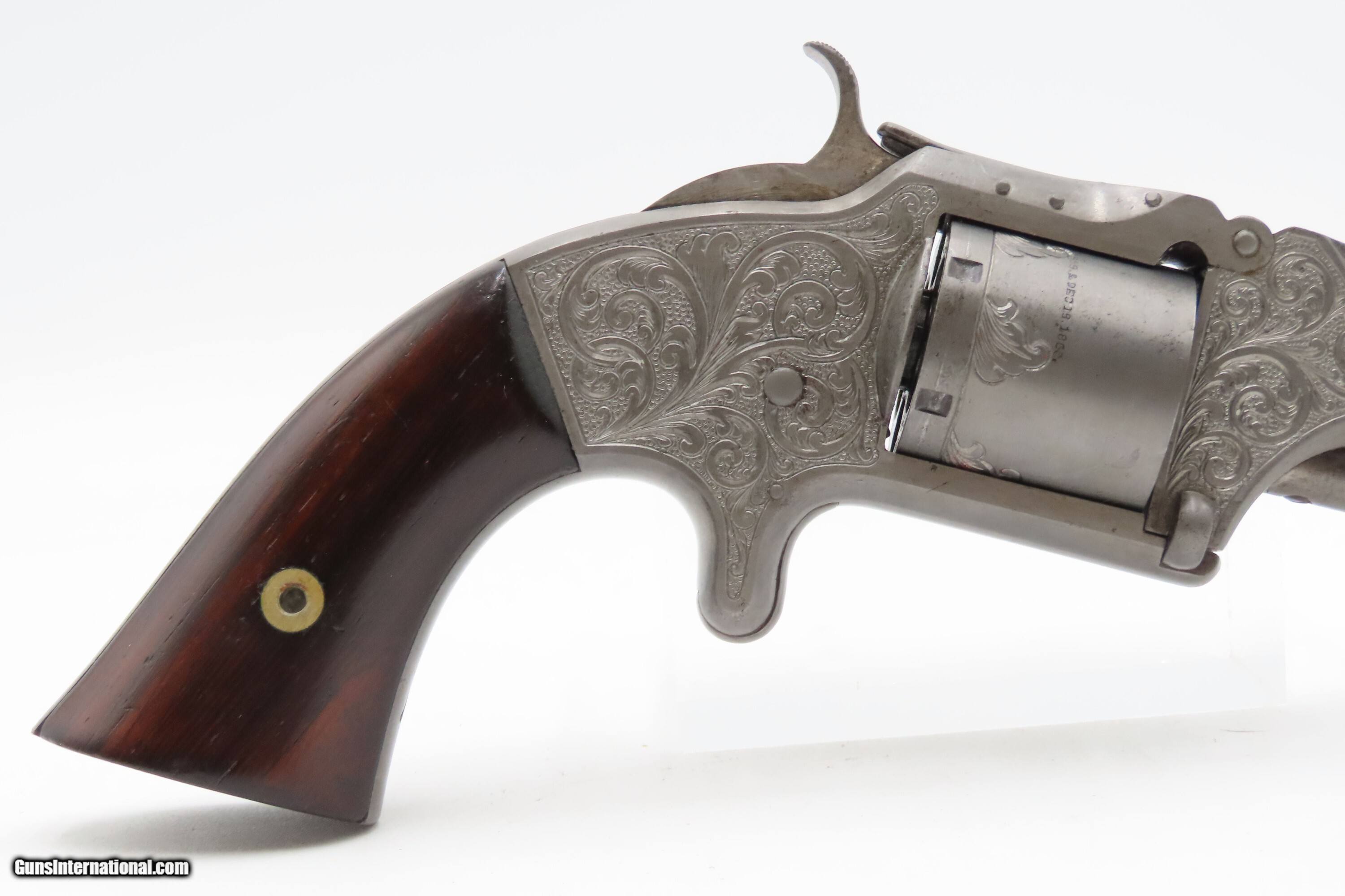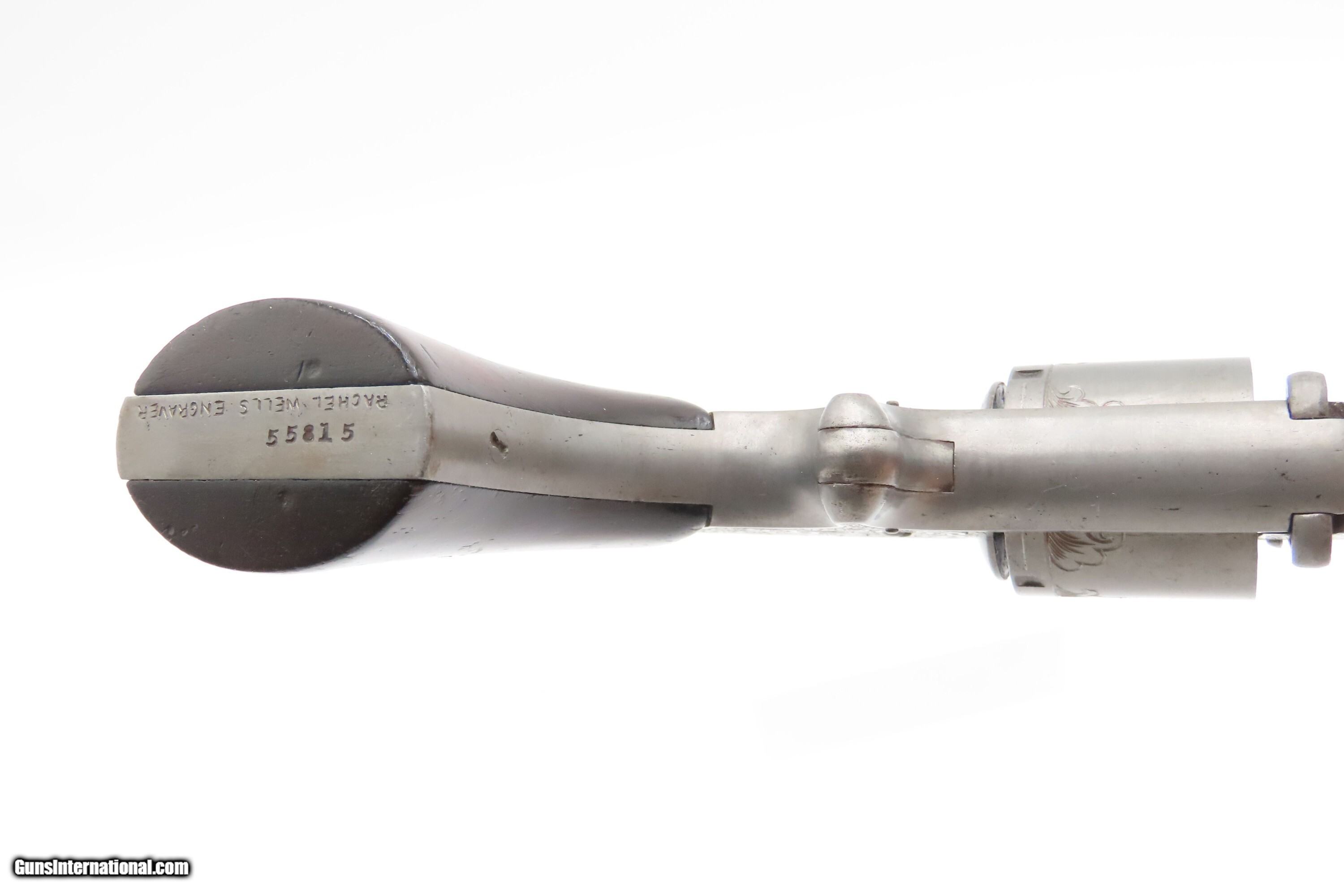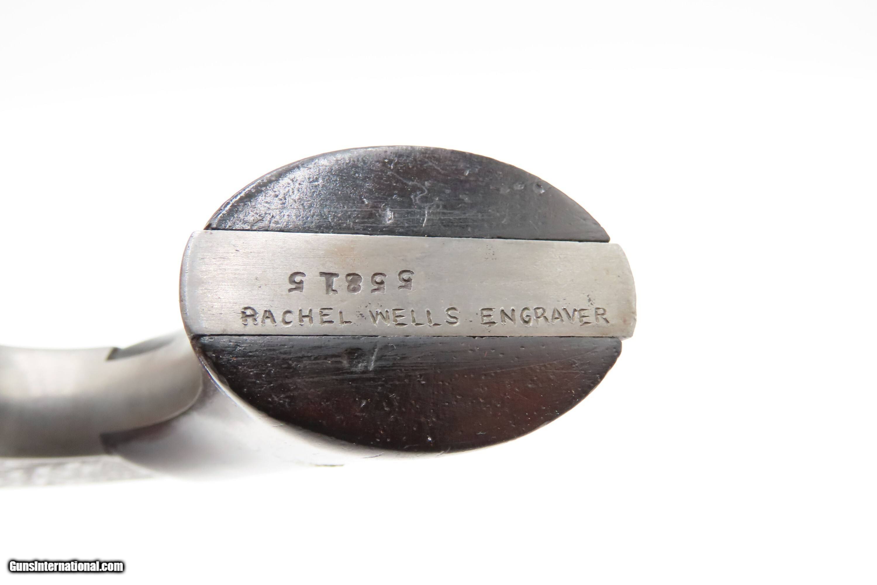 Description: CASED & ENGRAVED Antique SMITH & WESSON No. 2 “Old Army” .32 RF Revolver “DEAD MAN’S HAND” Gun Engraved by RACHEL WELLS Here Ancestry Guns presents an antique Cased & Engraved Smith & Wesson Model No. 2 “Old Army” Revolver, made circa the late 1860s to early 1870s in Springfield, Massachusetts. Smith & Wesson purchased the rights to the Rollin White patent for the bored through cylinder, which would forever change the development of revolving firearms. Beginning in 1857 they produced the Number 1, a 7-shot .22 rimfire pocket pistol, which was quite successful. This was fine for the commercial market, but S&W knew they could scale up their design for a pistol that could be worn on the belt in a holster. They began shipping their Number 2 “Army” Revolver, a 6-shot .32 caliber, just 2 months after the beginning of the American Civil War. Smith & Wesson continued to leverage their patent well beyond the war and they remained very popular with the public and on the frontiers. There was a total of 77,200 of these revolvers made during their production run from 1861 through 1874. Revolvers with serial numbers under 35,731 are considered to be Civil War guns since they were manufactured before May 1, 1865. This gun was manufactured after the close of the Civil War and subsequently engraved and signed by Firearms Engravers Guild of America member Rachel Wells. It features floral scroll engraving on about half of the surfaces, with Wells' signature on the butt. Also included is a hardwood case. This example is professionally restored and embellished. The overall condition is fine. Smooth gray patina. Sharply engraved with floral designs. Excellent action. Bright, crisply rifled bore. Both grips are fine. Markings are clear throughout. The case is in good shape. Own the original! This is a legitimate antique and not a reproduction. Barrel is 6 inches. Caliber: .32 Rimfire Overall condition as seen in photos. Very Fast. Very Safe. FREE SHIPPING WORLDWIDE. Delivered directly to your door by express mail! Guaranteed AUTHENTIC & Includes CERTIFICATE OF AUTHENTICITY. $3450 #259324 Antique: Yes Price: $3,450.00 Buy Now Pay with