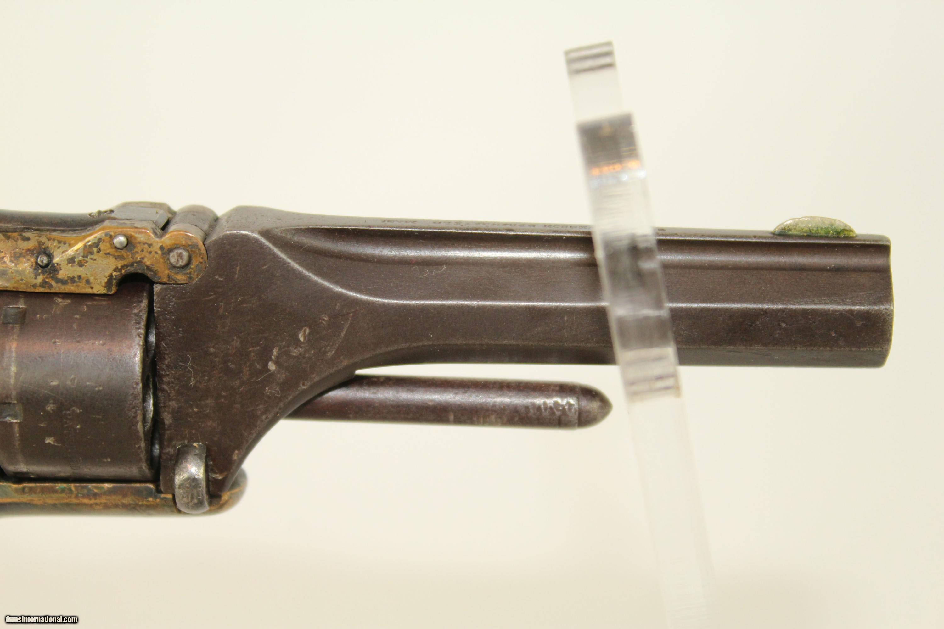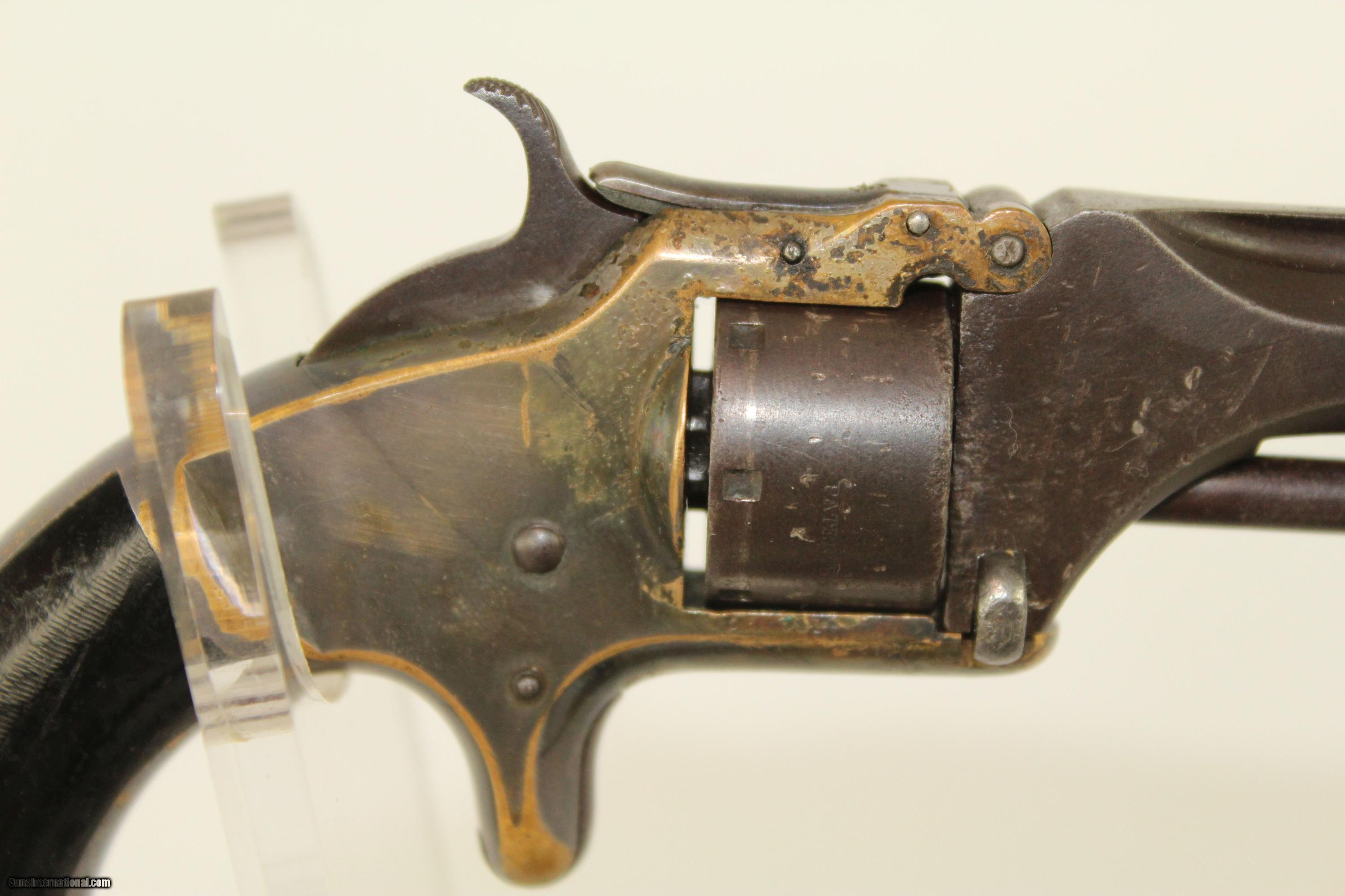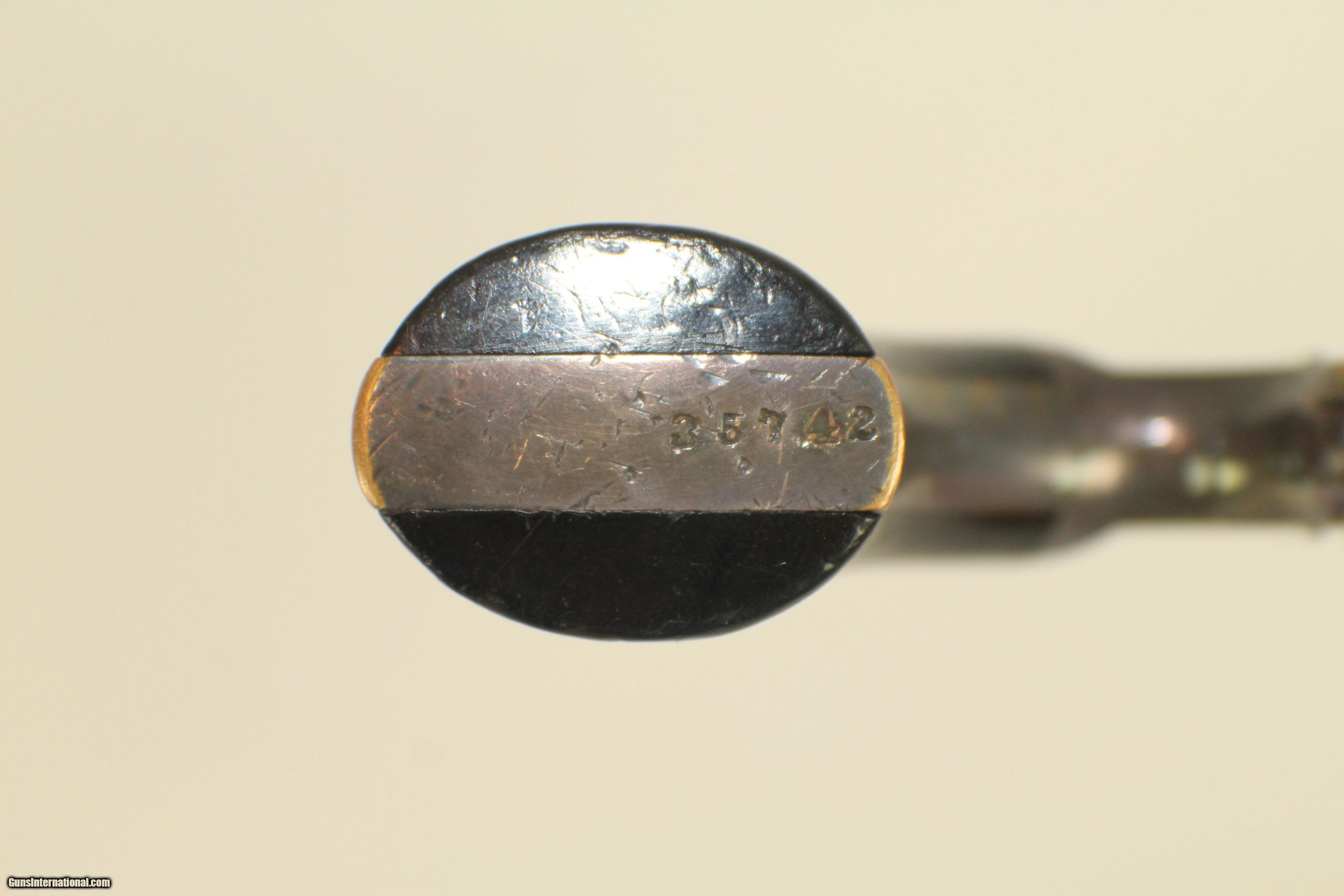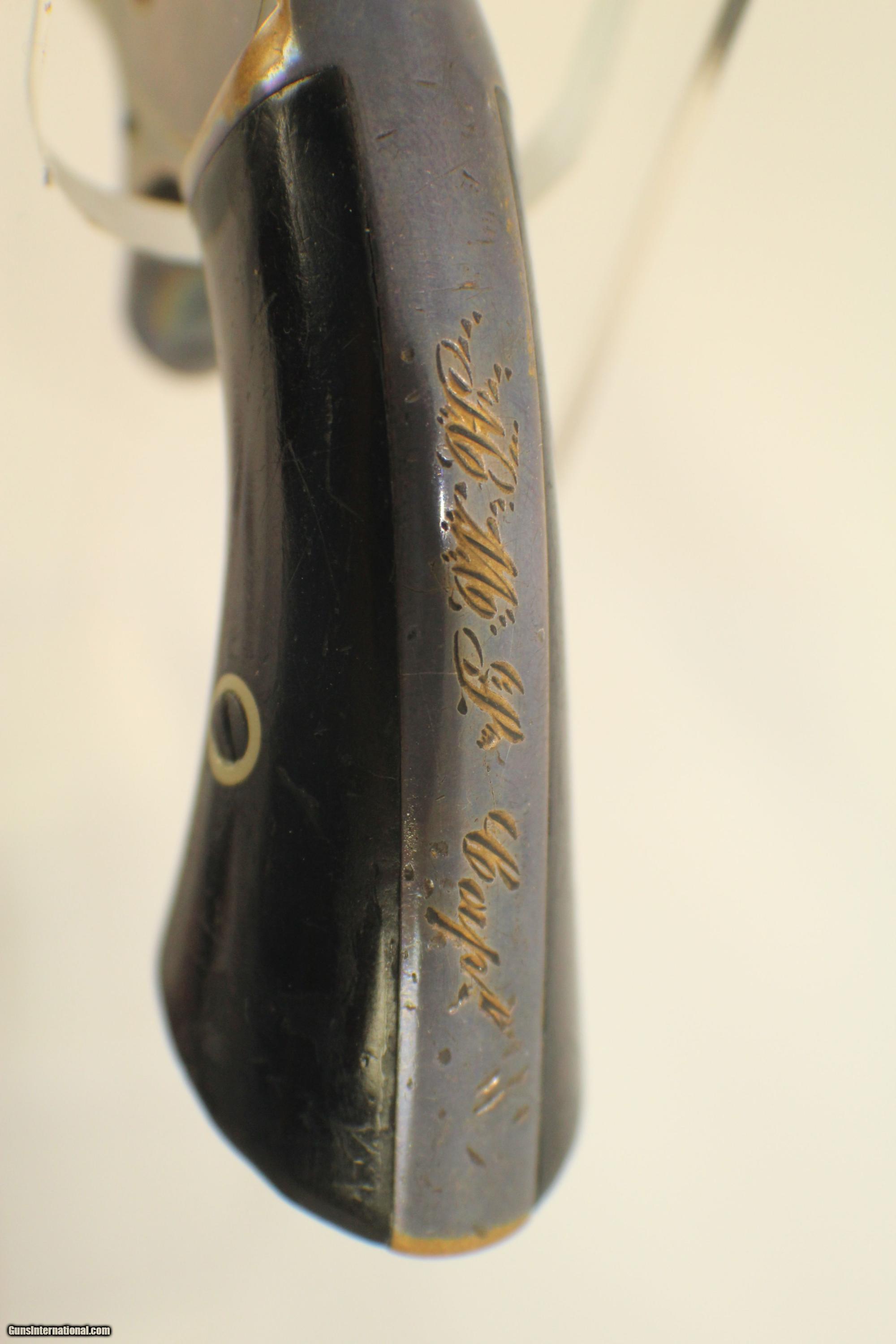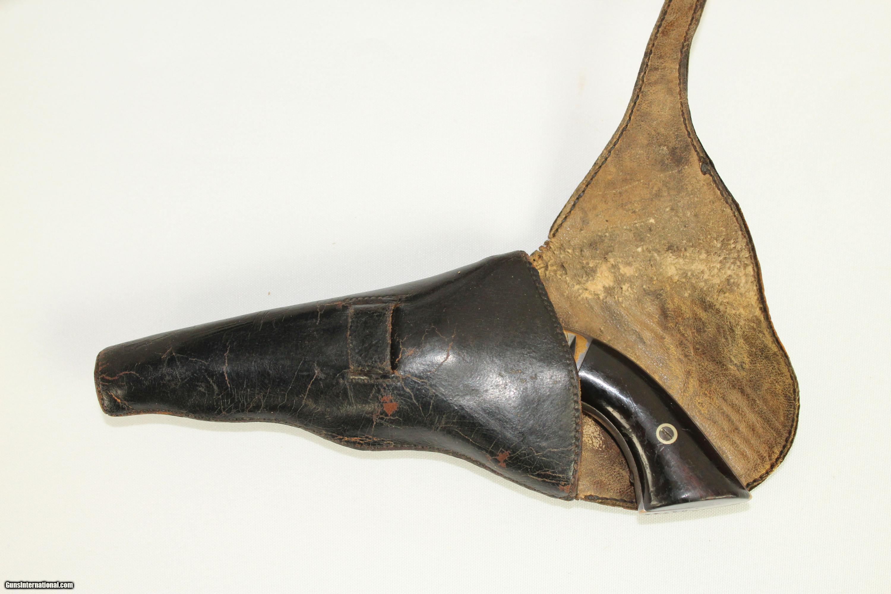 Description: Civil War ID’d S&W Model No. 1 Second Issue Revolver w Holster, Diary, Letters & Research Engraved by Captain Howard M. Smith of the 1st New York Dragoons Here we present an antique Smith & Wesson Model No. 1 Second Issue Revolver, engraved by Capt. Howard Smith of the 130th New York Infantry and 19th New York Cavalry (later called the 1st New York Dragoons). This piece also comes with its original holster, pictures and reams of research. In fact, there are 185 pages of letters and diary entries below, copied from the Library of Congress. In addition, there are muster papers, widow’s pension request, and excerpts of his home town’s history. Enjoy reading several of the excerpts from his diary and letters among the photos of the revolver. The first three pages are from early 1863, and the last five are from late 1864. Some notable figures mentioned in the diary are famous generals such as Sheridan and Lee, as well as Smith’s daily comrades. A bit about Capt. (Major in Nov. 1863 and eventually breveted Lieutenant-Colonel in May 1865 for “distinguished and meritorious services) Howard M. Smith: Howard M. Smith was a resident of Livingston County, New York, graduated from Rochester University and was a teacher and principal at the Mt. Morris Academy. He was mustered on August 11, 1862 at Portage, New York as Captain of Company B of the 130th Regiment—afterwards the 1st NY Dragoons. He was a very articulate man, as seen from his fantastic diary and letters to home. He also seems to have been a good leader and brave. His regiment saw heavy fighting at the Wilderness, Cold Harbor, Trevilan Station and other battlefields. He was a personal acquaintance of and served alongside of such notable figures as General Thomas Devin and General Alfred Gibbs, both of which he speaks about in his diary. He was married to Mary E. Joslyn in Nov. 1867; it seems most of his letters are addressed to her. After he left the Army, he settled in Buffalo, New York, where he was a coal merchant for 12 years with the company Smith, Howard & Sears. He and his wife Mary had a set of twins, Julian and Joselyn, in 1878. He died of “chronic nephritis” in 1890, according to his death certificate (copy included) in Buffalo, New York. A copy of his widow’s pension request is included in the documentation. The Smith & Wesson Model No. 1 Second Issue was made from 1860-68, this specimen being made 1863 or earlier, since he was promoted to Major in November of 1863. The backstrap is engraved “H.M.S. Capt.”, and the firearm was formerly acquired directly from his descendants by a collector. The revolver is chambered in .22 rimfire and held 7 shots. The small holster was made for this gun in particular, and has been the gun’s faithful companion for 153 years now. Captain Smith acquired this little piece to accompany his other standard issue kit. The revolver is in fine condition. The barrel still maintains a lot of blue, and most of the silver plate on the frame remains. The lettering is very clear. The condition of this little pistol, along with the very regular and detailed entries should tell you how meticulous this distinguished Union officer really was. Own the original! This is a legitimate antique and not a reproduction. This little pistol has it all! Condition, plus the research, letters and photos. Needless to say, these do not come around very often! Help preserve history and this man’s memory. Barrel is 3.125 inches in length. Caliber: .22 rimfire short The bore and firing mechanism are in excellent condition. Overall condition as seen in photos. Be prepared to preserve history and the Major’s memory if you purchase. Very Fast. Very Safe. FREE SHIPPING WORLDWIDE. Delivered directly to your door by express mail! Guaranteed AUTHENTIC & Includes CERTIFICATE OF AUTHENTICITY. ancestryguns $4500 #21502 SOLD Antique: Yes |