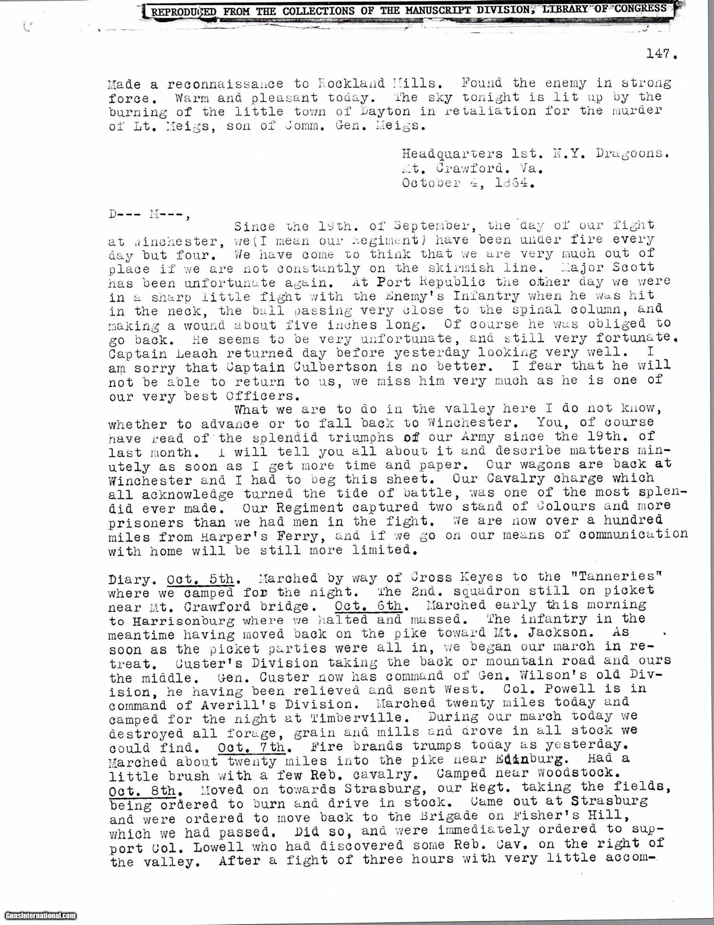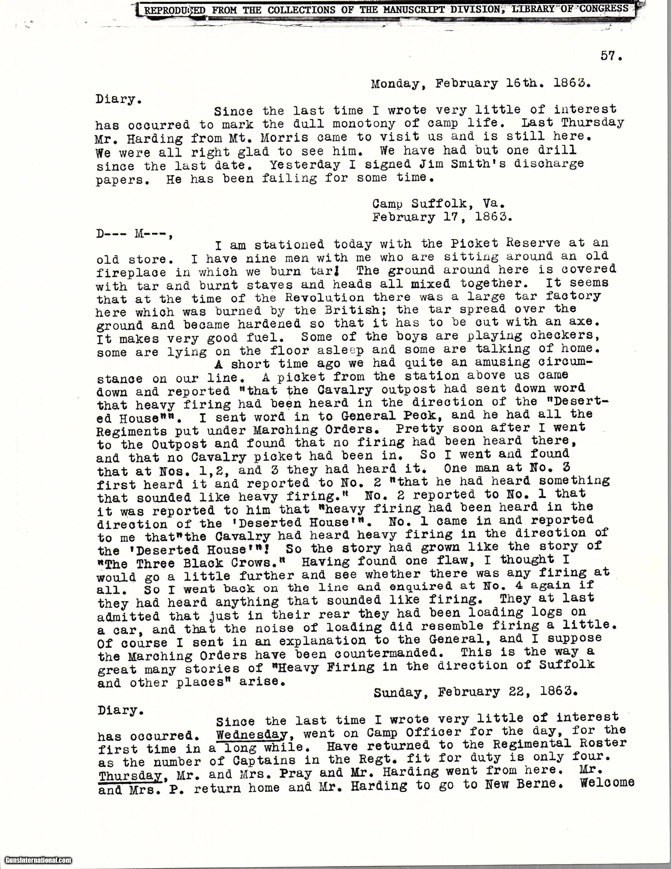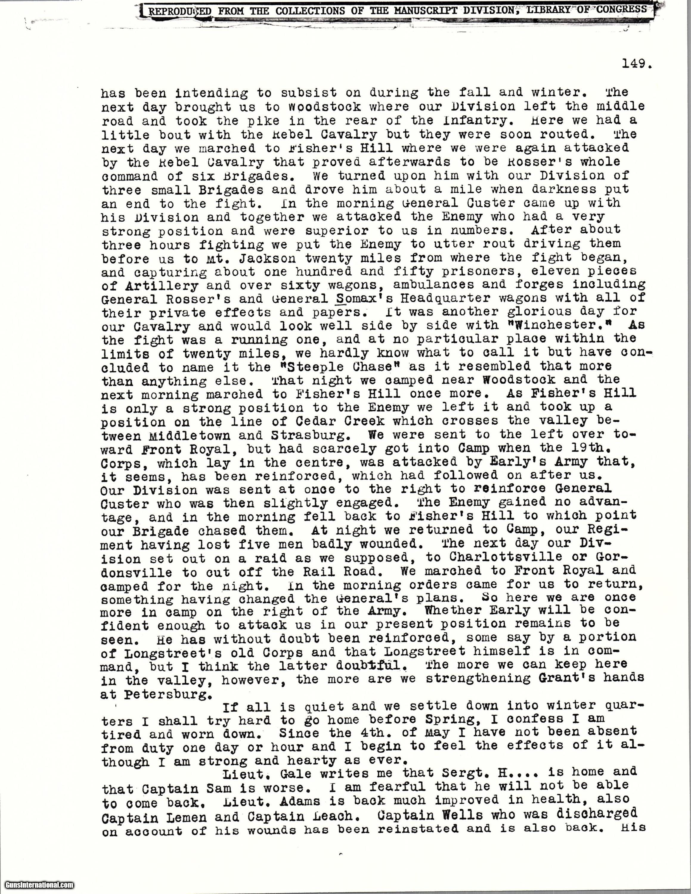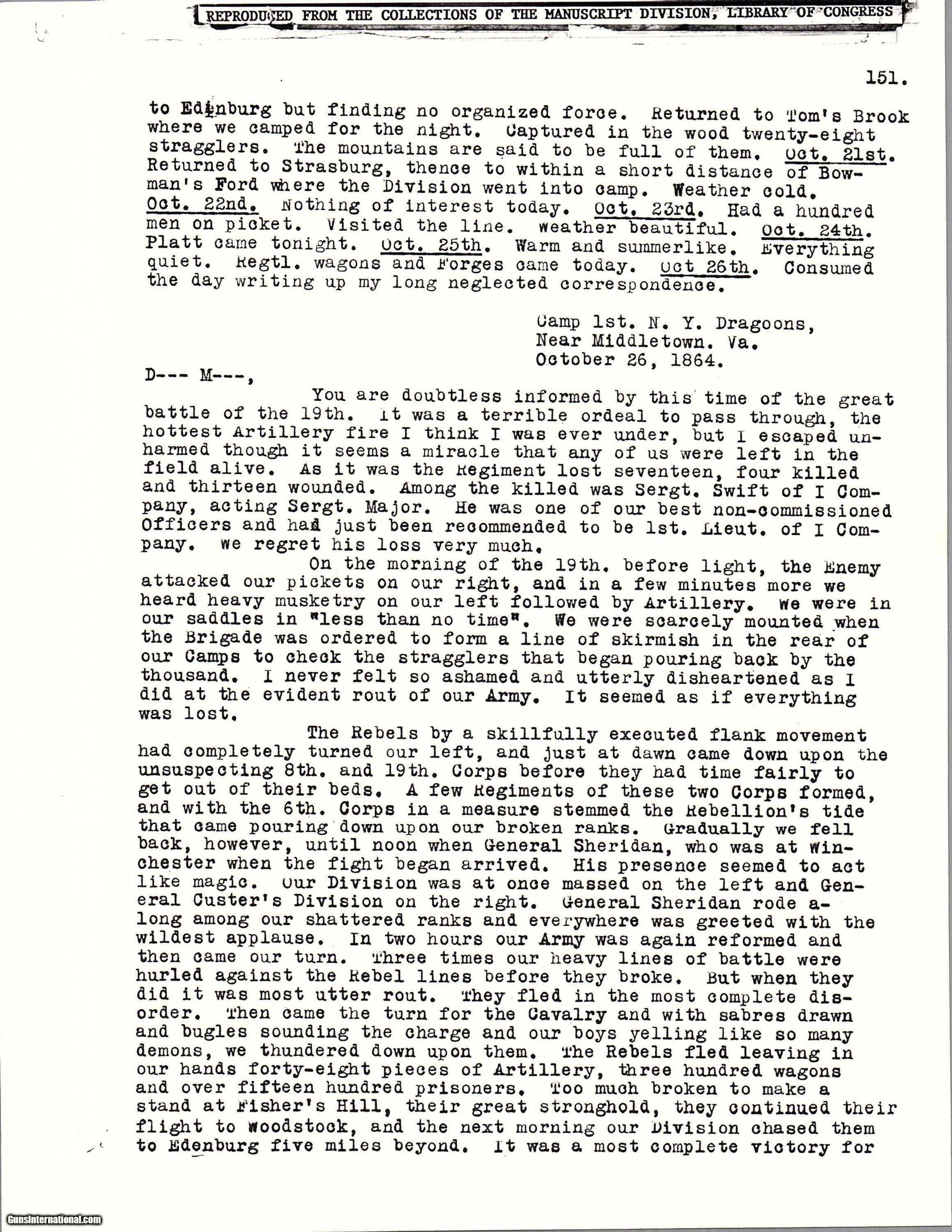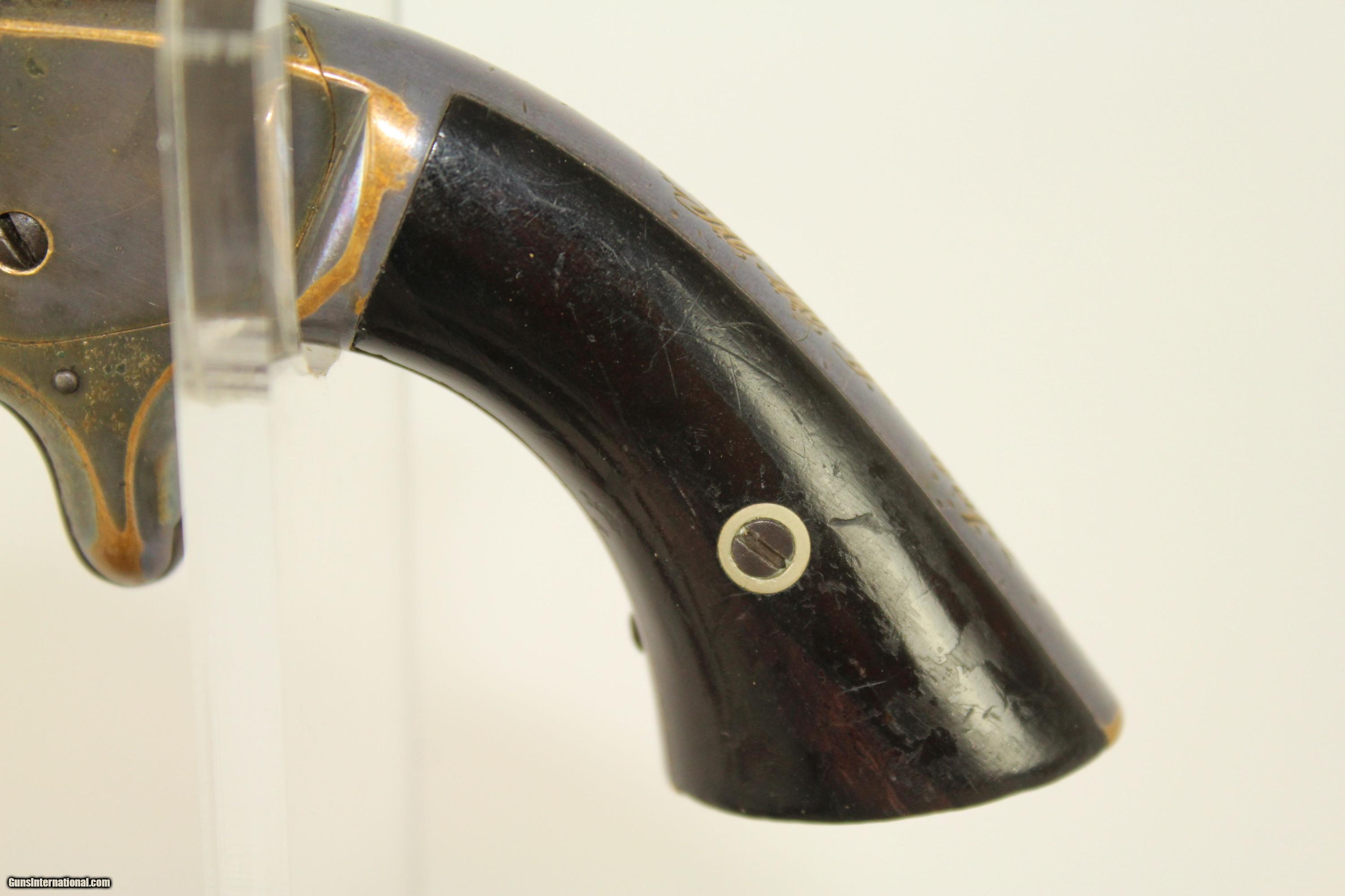 Description: Civil War ID’d S&W Model No. 1 Second Issue Revolver w Holster, Diary, Letters & Research Engraved by Captain Howard M. Smith of the 1st New York Dragoons Here we present an antique Smith & Wesson Model No. 1 Second Issue Revolver, engraved by Capt. Howard Smith of the 130th New York Infantry and 19th New York Cavalry (later called the 1st New York Dragoons). This piece also comes with its original holster, pictures and reams of research. In fact, there are 185 pages of letters and diary entries below, copied from the Library of Congress. In addition, there are muster papers, widow’s pension request, and excerpts of his home town’s history. Enjoy reading several of the excerpts from his diary and letters among the photos of the revolver. The first three pages are from early 1863, and the last five are from late 1864. Some notable figures mentioned in the diary are famous generals such as Sheridan and Lee, as well as Smith’s daily comrades. A bit about Capt. (Major in Nov. 1863 and eventually breveted Lieutenant-Colonel in May 1865 for “distinguished and meritorious services) Howard M. Smith: Howard M. Smith was a resident of Livingston County, New York, graduated from Rochester University and was a teacher and principal at the Mt. Morris Academy. He was mustered on August 11, 1862 at Portage, New York as Captain of Company B of the 130th Regiment—afterwards the 1st NY Dragoons. He was a very articulate man, as seen from his fantastic diary and letters to home. He also seems to have been a good leader and brave. His regiment saw heavy fighting at the Wilderness, Cold Harbor, Trevilan Station and other battlefields. He was a personal acquaintance of and served alongside of such notable figures as General Thomas Devin and General Alfred Gibbs, both of which he speaks about in his diary. He was married to Mary E. Joslyn in Nov. 1867; it seems most of his letters are addressed to her. After he left the Army, he settled in Buffalo, New York, where he was a coal merchant for 12 years with the company Smith, Howard & Sears. He and his wife Mary had a set of twins, Julian and Joselyn, in 1878. He died of “chronic nephritis” in 1890, according to his death certificate (copy included) in Buffalo, New York. A copy of his widow’s pension request is included in the documentation. The Smith & Wesson Model No. 1 Second Issue was made from 1860-68, this specimen being made 1863 or earlier, since he was promoted to Major in November of 1863. The backstrap is engraved “H.M.S. Capt.”, and the firearm was formerly acquired directly from his descendants by a collector. The revolver is chambered in .22 rimfire and held 7 shots. The small holster was made for this gun in particular, and has been the gun’s faithful companion for 153 years now. Captain Smith acquired this little piece to accompany his other standard issue kit. The revolver is in fine condition. The barrel still maintains a lot of blue, and most of the silver plate on the frame remains. The lettering is very clear. The condition of this little pistol, along with the very regular and detailed entries should tell you how meticulous this distinguished Union officer really was. Own the original! This is a legitimate antique and not a reproduction. This little pistol has it all! Condition, plus the research, letters and photos. Needless to say, these do not come around very often! Help preserve history and this man’s memory. Barrel is 3.125 inches in length. Caliber: .22 rimfire short The bore and firing mechanism are in excellent condition. Overall condition as seen in photos. Be prepared to preserve history and the Major’s memory if you purchase. Very Fast. Very Safe. FREE SHIPPING WORLDWIDE. Delivered directly to your door by express mail! Guaranteed AUTHENTIC & Includes CERTIFICATE OF AUTHENTICITY. ancestryguns $4500 #21502 SOLD Antique: Yes |