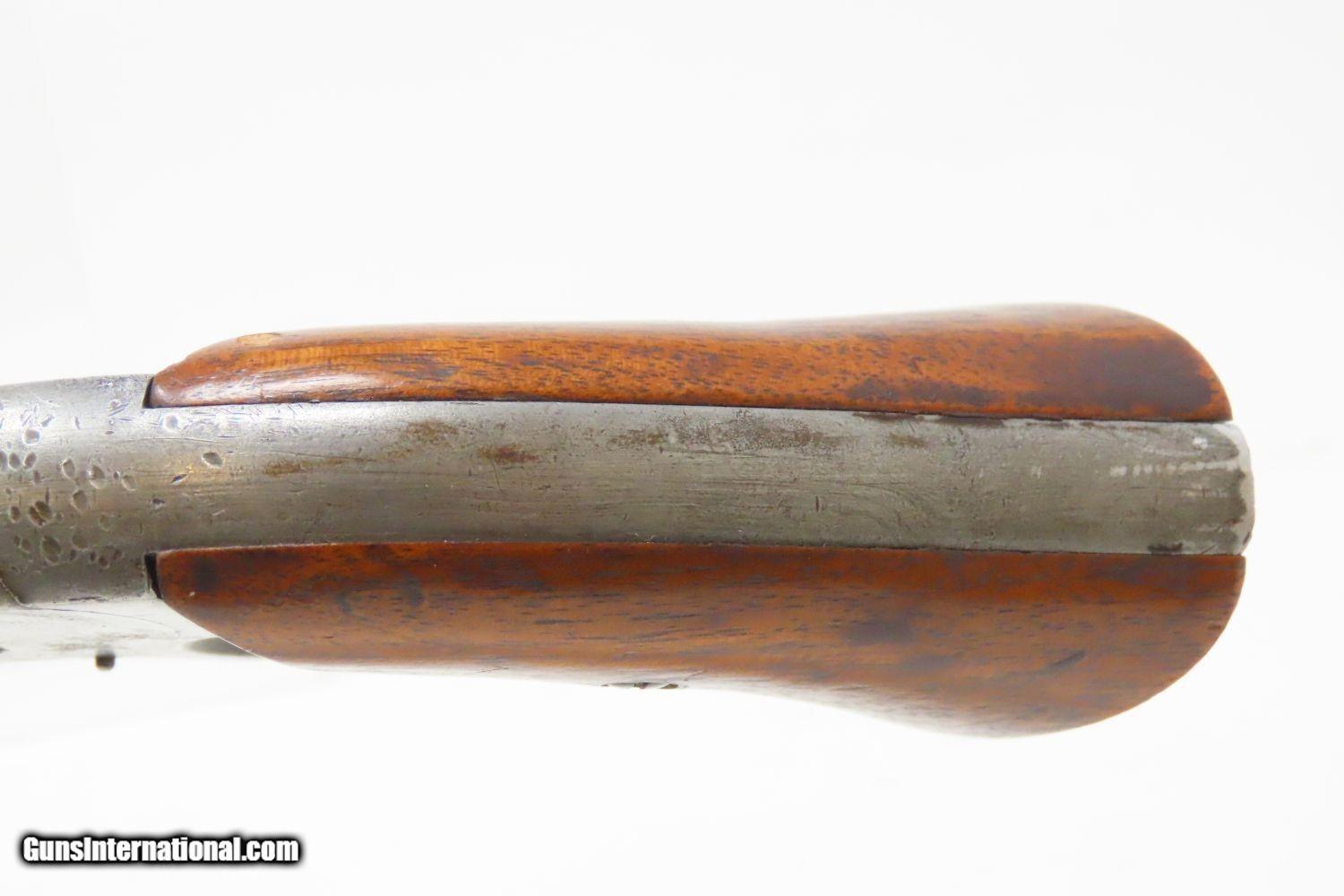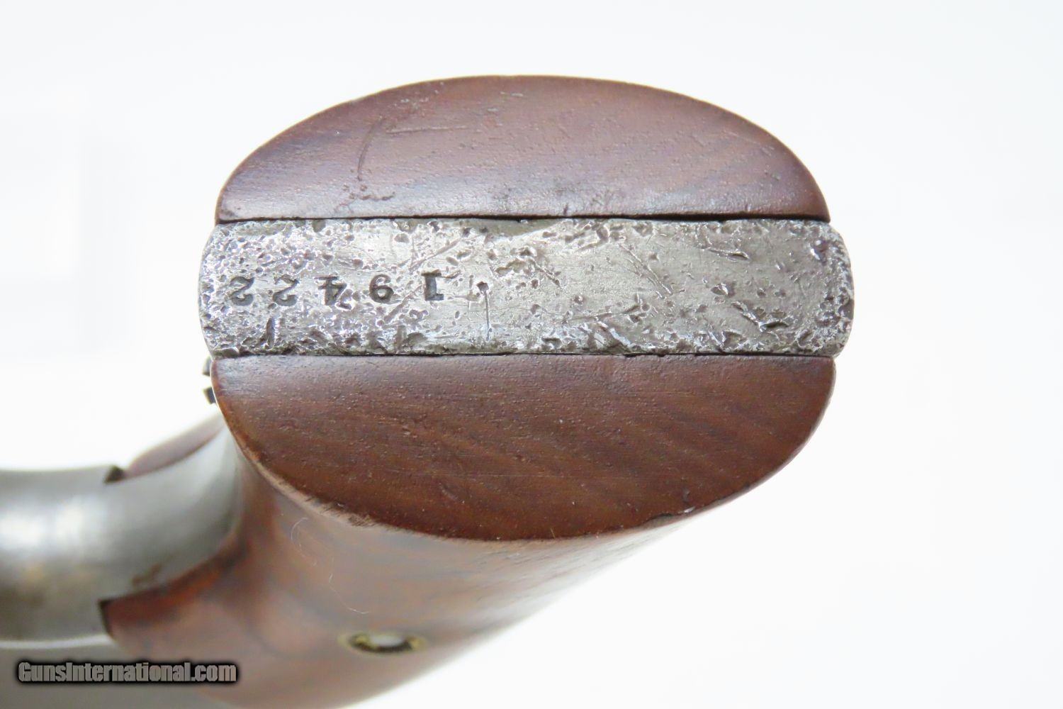 Description: CIVIL WAR Era Antique SMITH & WESSON No. 2 “OLD ARMY” .32 Caliber Revolver Made During the Civil War Era Circa 1862 Here we present an antique Smith & Wesson Model No. 2 Old Army Revolver, made circa 1862 in Springfield, Massachusetts. Smith & Wesson purchased the rights to the Rollin White patent for the bored through cylinder, which would forever change the development of revolving firearms. Beginning in 1857 they produced the Number 1, a 7-shot .22 rimfire pocket pistol, which was quite successful. This was fine for the commercial market, but S&W knew they could scale up their design for a pistol that could be worn on the belt in a holster. They began shipping their Number 2 “Army” Revolver, a 6-shot .32 caliber, just 2 months after the beginning of the American Civil War. Smith & Wesson continued to leverage their patent well beyond the war and they remained very popular with the public and on the frontiers. There was a total of 77,200 of these revolvers made during their production run from 1861 through 1874. Though it never received any large federal contracts, it was adopted at the state, unit and individual levels. Per Charles Pate, Kentucky ordered 731 Number 2 “Armies” from Kittredge & Co. late in 1862, and even more in 1863. He says that “Most, if not all, of the revolvers used to fill the Kentucky order were almost certainly under 10,000 in serial number.” He also lists individuals and units that used these revolvers, per records and personal correspondence. The 7th Kentucky Cavalry appears to be the only unit officially issued this handgun during the war. Among the most famous of users was future U.S. President Rutherford B. Hayes, who began his part in the war as Lieutenant Colonel and ended it with Brevet Brigadier General. Ulysses S. Grant wrote about him “his conduct on the field was marked by conspicuous gallantry as well as the display of qualities of a higher order than that of mere personal daring." Another name and legend from the Civil War who used the Number 2 was General George Armstrong Custer, who owned a pair of them. “Wild Bill” Hickok wore this gun the night he was assassinated while playing cards, his last hand now called the “Dead Man’s Hand” of Black Aces and 8s. This example has been around the block! Strong action. The top of the hammer spur was chipped at some point. Good bore. Good replacement grips. A good chance to own Smith & Wesson’s flagship revolver from the Civil War period! Own the original! This is a legitimate antique and not a reproduction. Barrel is 6 inches. Caliber: .32 Long Rimfire Overall condition as seen in photos. Very Fast. Very Safe. FREE SHIPPING WORLDWIDE. Delivered directly to your door by express mail! Guaranteed AUTHENTIC & Includes CERTIFICATE OF AUTHENTICITY. ancestryguns $1565 #210041 SOLD Antique: Yes |