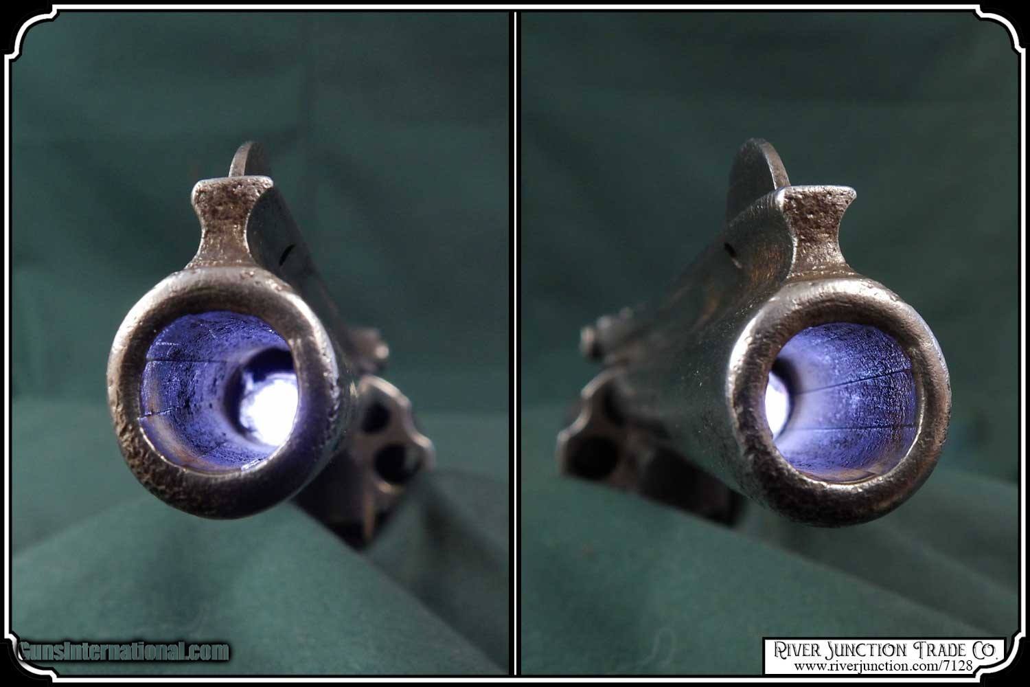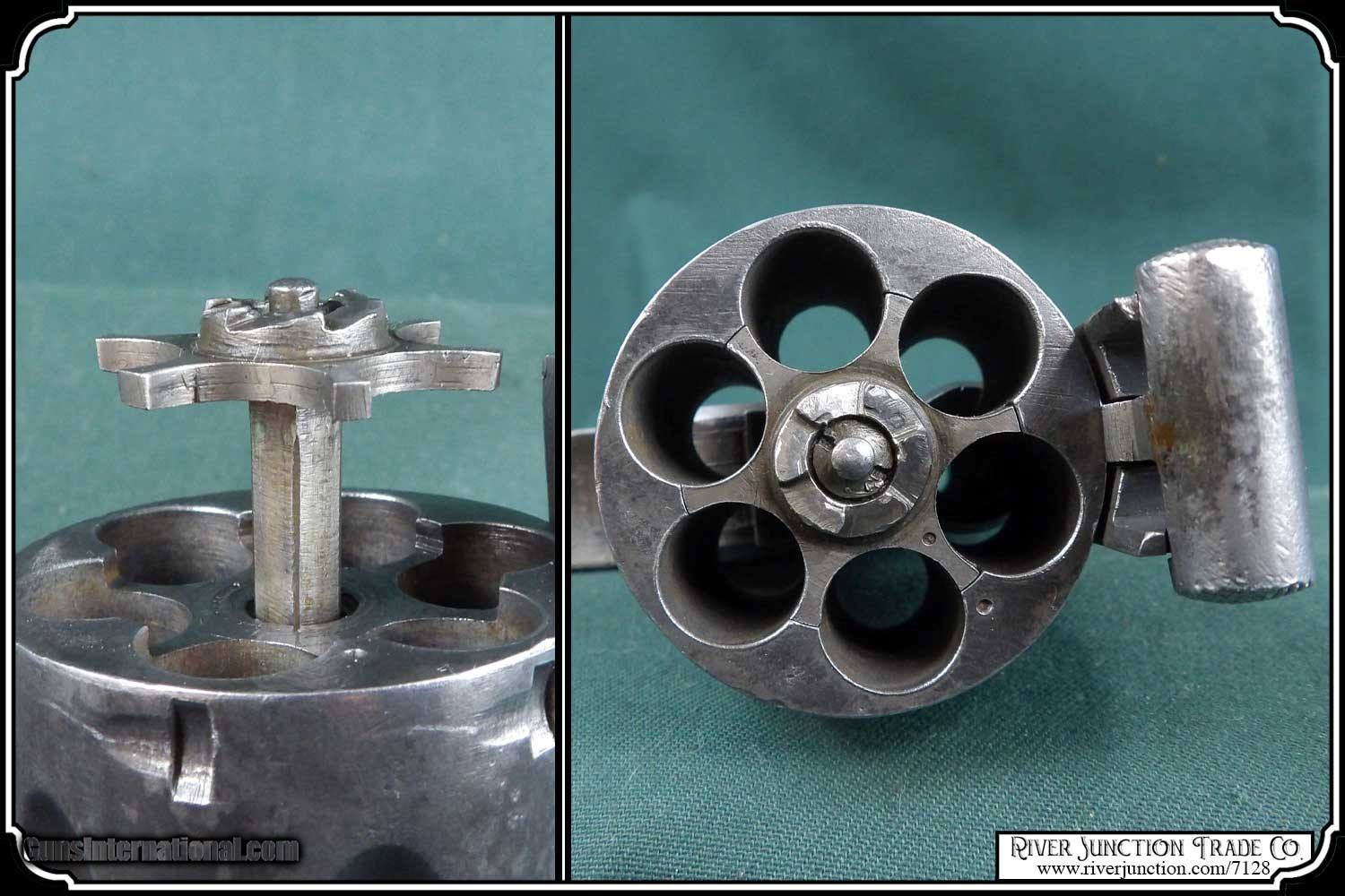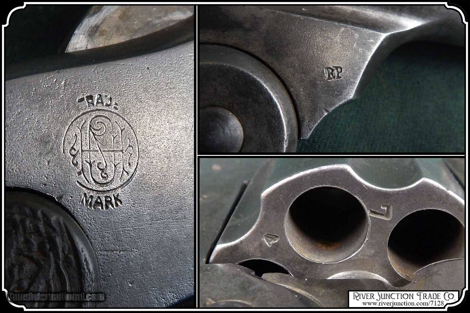 Description: This is a massive and stout Italian revolver, made by F Tettoni in Brescia. Top of the barrel rib is marked Revolver Mod 1916 Cal 10-35. In my reference book Cartridges of the World, it described this cartridge as follows. "This cartridge was developed for the Italian Model 1874 service revolver. The cartridge is similar to the .44 S&W Russian." This has outward appearance of being a copy of the Smith and Wesson First Model DA. Operates perfectly in double and single action. Breaks out to eject spent cartridges. Ejector works perfectly. No original finish remaining. Skull cracker butt, has a lanyard ring. I am not sure if this was actually an Italian service revolver. The bore has deep rifling. Sold as an Antique no guarantees, warranties, or liabilities for any actual usage. If any firearms are to be used for shooting purposes, a qualified gunsmith should inspect them first. Price: $795.00 Buy Now Contact Seller |