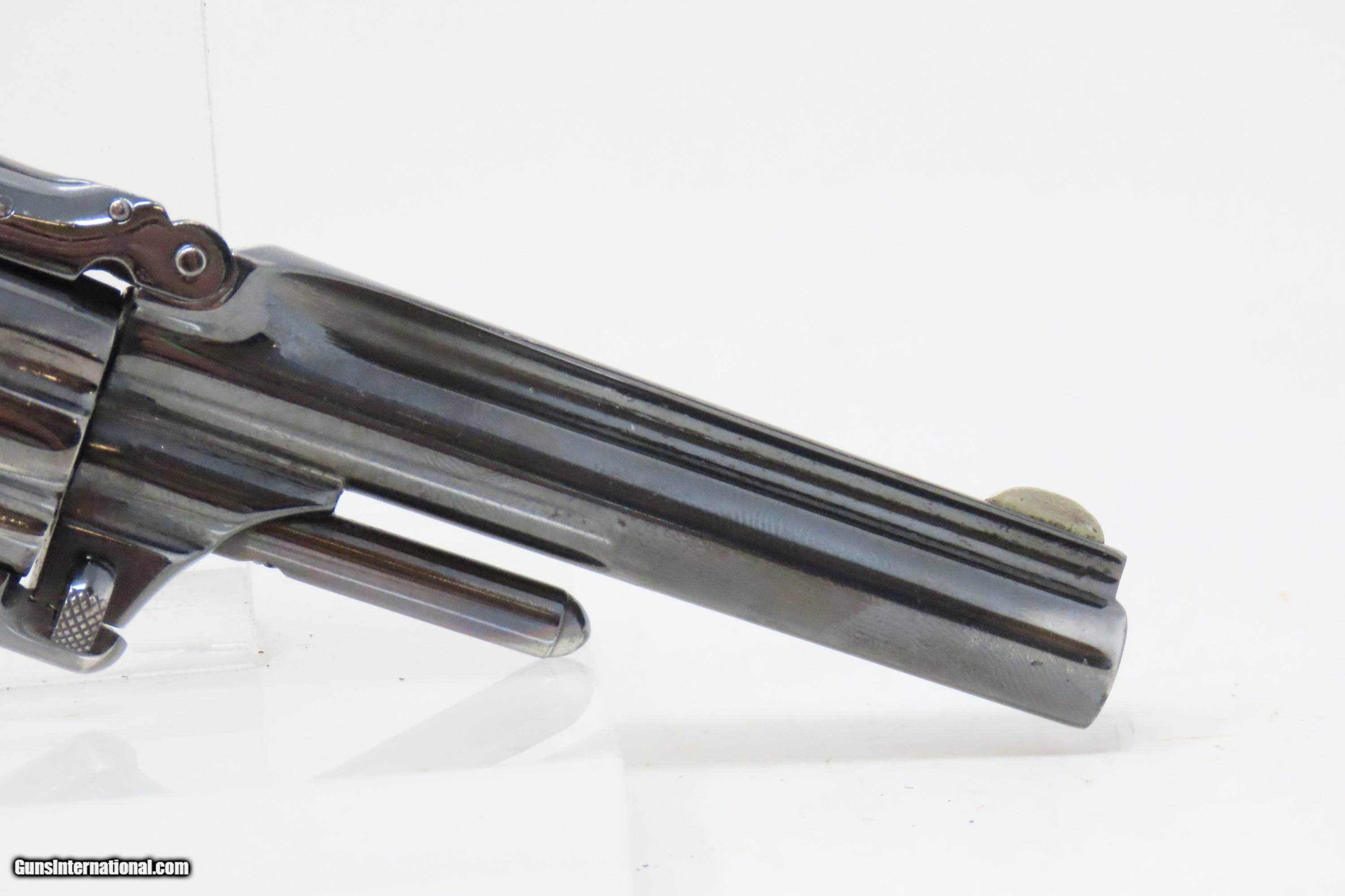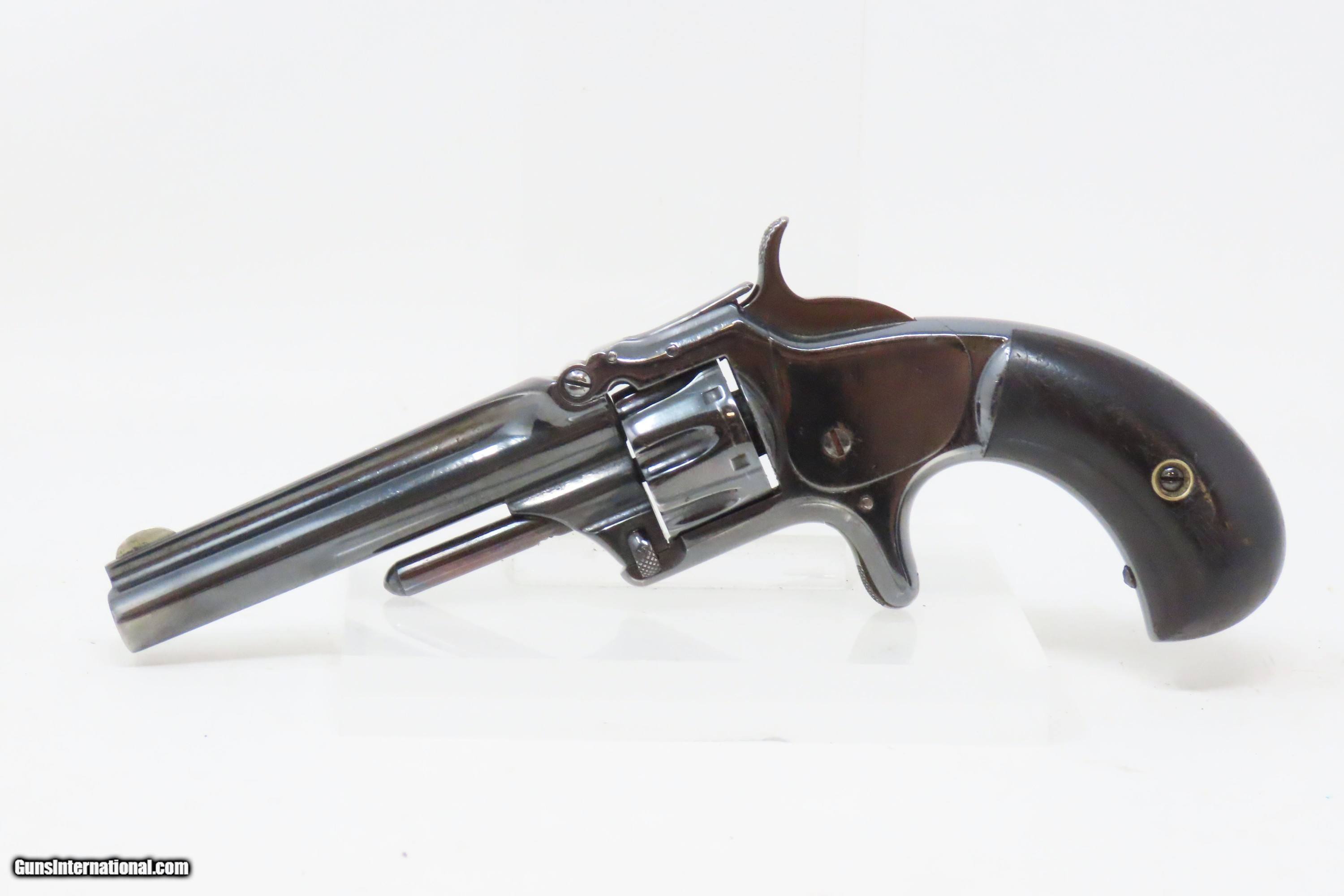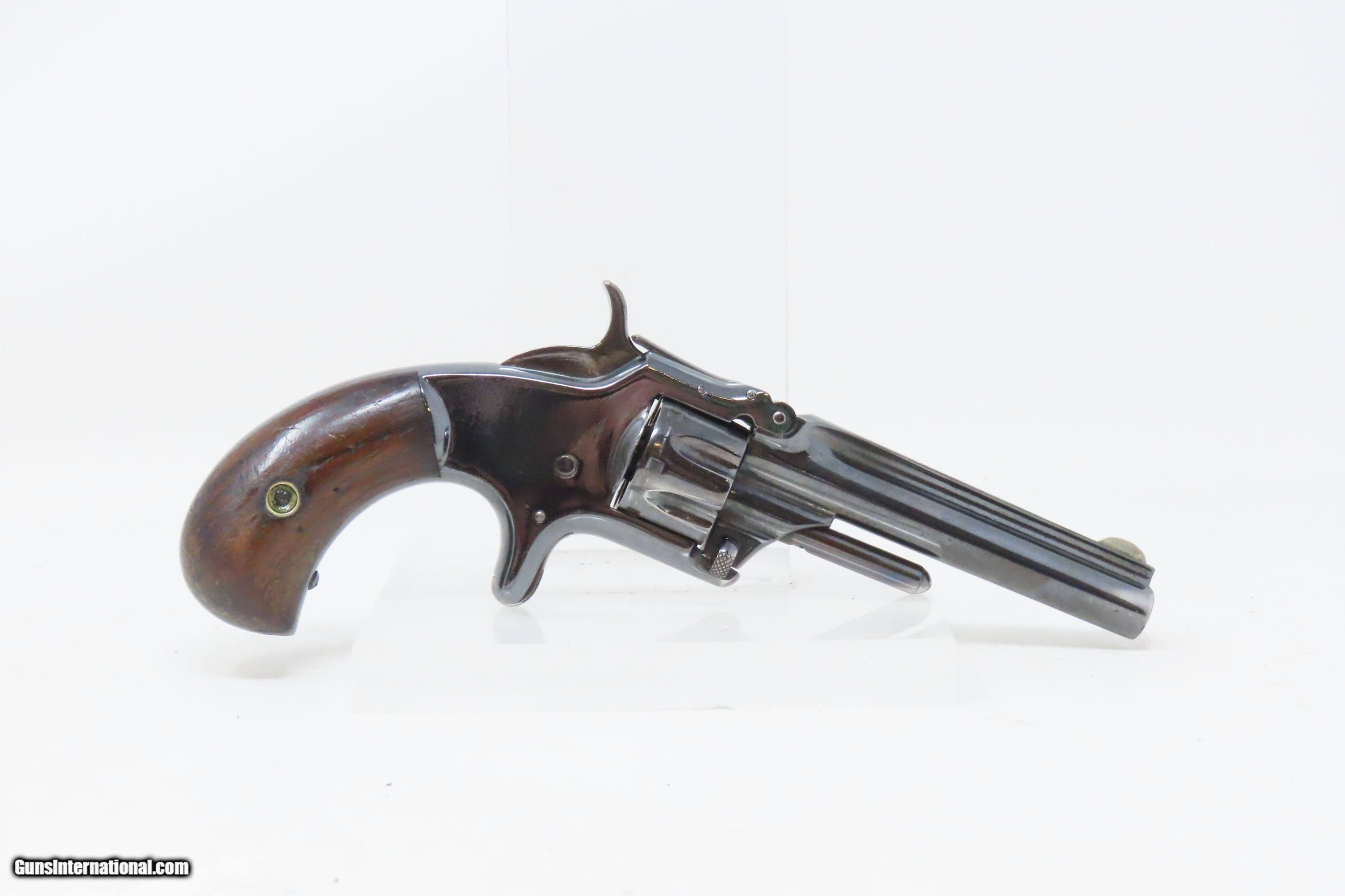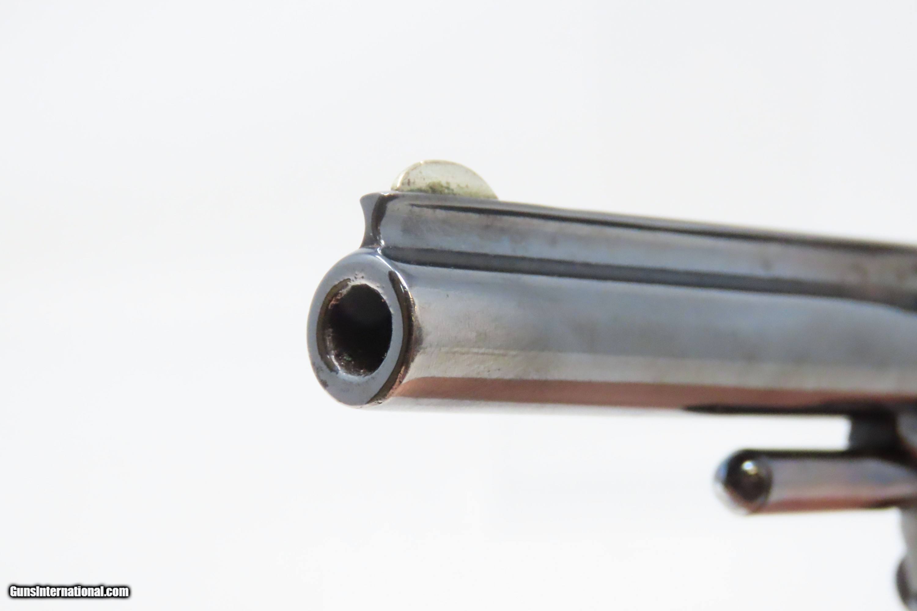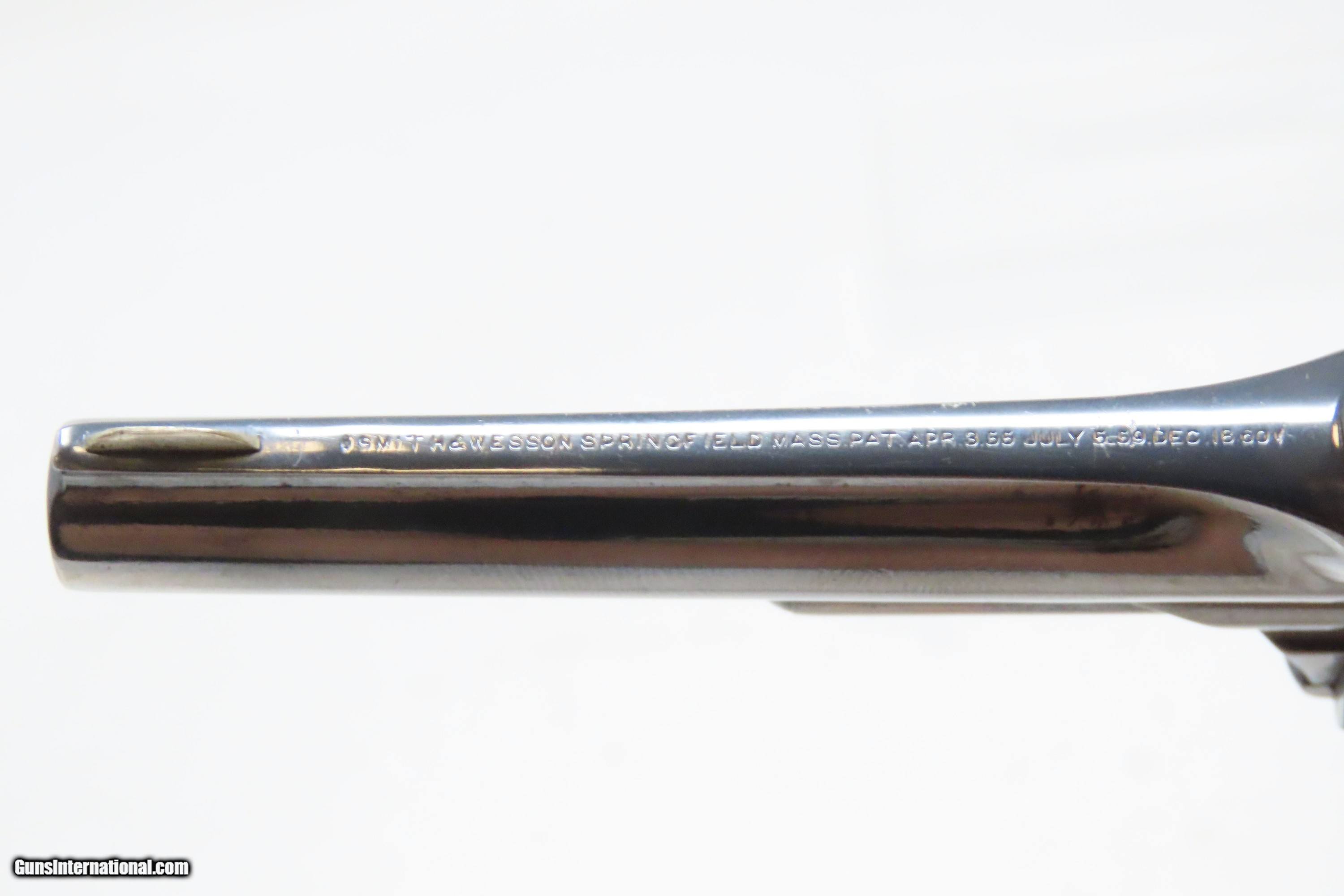 Description: FACTORY LETTERED Very Nice OLD WEST Antique SMITH & WESSON No. 1 Revolver 19th Century POCKET CARRY for the Armed Citizen Here we present an antique Factory Lettered Smith & Wesson Number 1, Third Issue Revolver, made in 1873 with a production run between 1868-81. The No. 1 was Smith & Wesson’s first metallic cartridge firearm. It utilized the idea of the “bored through cylinder”, which was patented by Rollin White and subsequently exclusively licensed by Smith & Wesson. This concept has forever changed revolving firearms design, and is the same idea used in revolvers today. S&W, via Rollin White himself, aggressively sued any patent infringers and were able to hold their monopoly on the American market for cartridge revolvers from about 1857 to 1870, whereupon their patent expired. The results were a very profitable business, a broke Rollin White, and a grudging U.S. Chief of Ordnance Alexander Dyer, who was still angry in 1870 about not being able to use the technology during the Civil War. The U.S. government ended up giving Colt their contracts since they valued the larger .44 caliber in the Colt 1860 Armies over the .32 caliber full sized No. 2 Armies. The Third Issue was S&W’s final improved version of the revolver. The rounded birds head grips, fluted cylinder and round barrel made this an even sleeker variant of the revolver that started it all. This small revolver is a 7-shot .22 rimfire. It was specifically designed to be a pocket gun, being very small and light. For those not wanting or needing a full-sized gun or for those who wanted a backup this revolver was the ideal firearm for the turbulent 19th century. The included factory letter confirms the current barrel length, caliber, grips, and finish when the revolver was shipped to M.W. Robinson of New York, NY, on December 23, 1873 as part of a 250 gun shipment. M.W. Robinson was Smith & Wessons largest distributor. The overall condition is good. The action is strong, but the cylinder does not index properly. Semi-bright bore, nice rifling. Both grips are solid with average handling wear. Markings are legible. This example has been refinished. Own the original! This is a legitimate antique and not a reproduction. Barrel is 3-3/16 inches. Caliber: .22 Rimfire Overall condition as seen in photos. Very Fast. Very Safe. FREE SHIPPING WORLDWIDE. Delivered directly to your door by express mail! Guaranteed AUTHENTIC & Includes CERTIFICATE OF AUTHENTICITY. ancestryguns $1200 #233298 SOLD Antique: Yes |