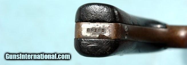 Description: FRONTIER ERA SMITH & WESSON MODEL 2 SECOND ISSUE .38 S&W CAL. SINGLE ACTION SPUR TRIGGER POCKET REVOLVER CA. 1880’S. 5 shot with 3 ¼” barrel. Good markings and barrel address with “1880” last patent date. All original except the grips which are of period of use custom rosewoods. Good to very good overall with old dark original metal patina. Grips excellent. Working order and good bore. SOLD Antique: Yes |