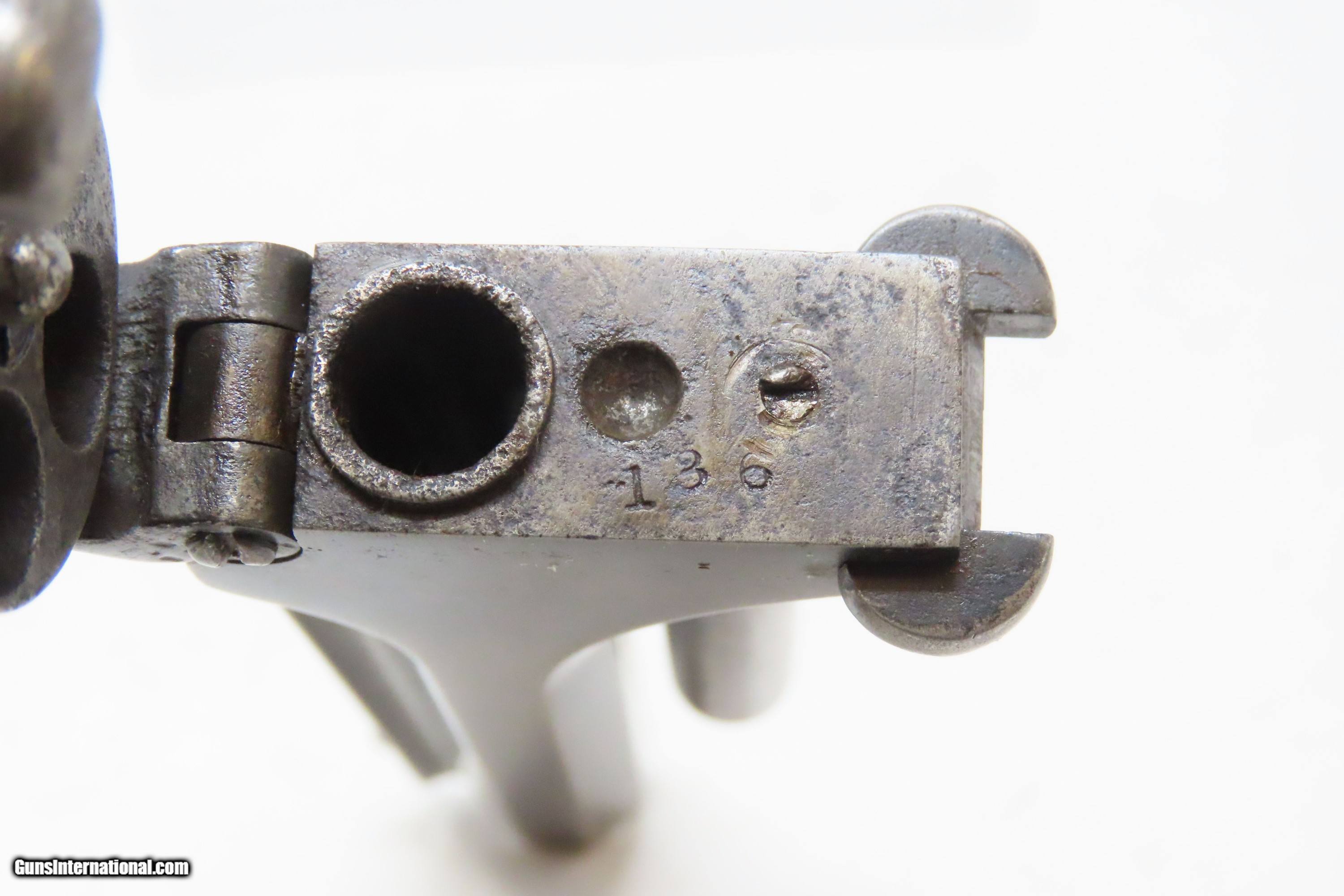 Description: FRONTIER Scarce Antique SMITH & WESSON No. 1 ½ .32 RF Revolver WILD WEST One of only 26,300 1st Issue Spur Trigger Revolvers Here we present an antique Smith & Wesson First Issue Model Number 1-1/2 .32 Caliber Rimfire Revolver, made circa 1865-68 in Springfield, Massachusetts. The No. 1 was Smith & Wesson’s first metallic cartridge firearm. It utilized the idea of the “bored through cylinder”, which was patented by Rollin White and subsequently exclusively licensed by Smith & Wesson. This concept has forever changed revolving firearms design, and is the same idea used in revolvers today. S&W, via Rollin White himself, aggressively sued any patent infringers and were able to hold their monopoly on the American market for cartridge revolvers from about 1857 to 1870, whereupon their patent expired. The results were a very profitable business, a broke Rollin White, and a grudging U.S. Chief of Ordnance Alexander Dyer, who was still angry in 1870 about not being able to use the technology during the Civil War. The S&W Model No. 1-1/2 Revolver is simply a scaled-up version of the No. 1, down to the aesthetics. The .32 caliber continued to evolve just as the .22 caliber version, both in features and aesthetics. It was also a commercial success and was well-received by the buying public seeing 26,300 of the First Issue produced and over 100,000 of the updated Second Issue. The overall condition is good. Strong action. The bore is in good shape and has retained a nice shimmer. Markings are legible. Both grips are solid with an average amount of handling wear. This example is refinished. Here is a very nice S&W revolver from the glory days of the Old West! Own the original! This is a legitimate antique and not a reproduction. Barrel is 3-1/2 inches. Caliber: .32 Rimfire Overall condition as seen in photos. Very Fast. Very Safe. FREE SHIPPING WORLDWIDE. Delivered directly to your door by express mail! Guaranteed AUTHENTIC & Includes CERTIFICATE OF AUTHENTICITY. ancestryguns $1800 #234111 SOLD Antique: Yes |