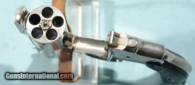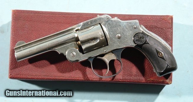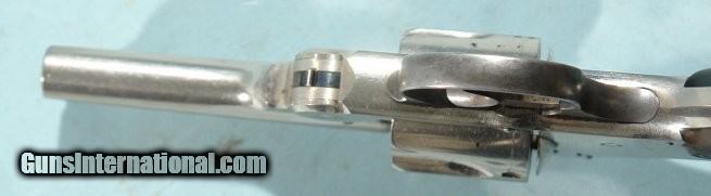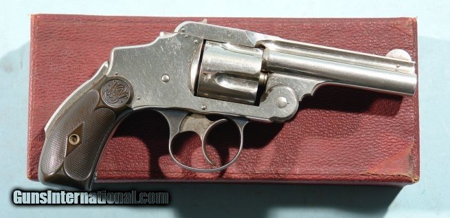 NEAR MINT IN ORIG. BOX ANTIQUE 2ND MODEL SMITH & WESSON NEW DEPARTURE SAFETY HAMMERLESS "LEMON-SQUEEZER" NICKEL .38S&W REVOLVER.