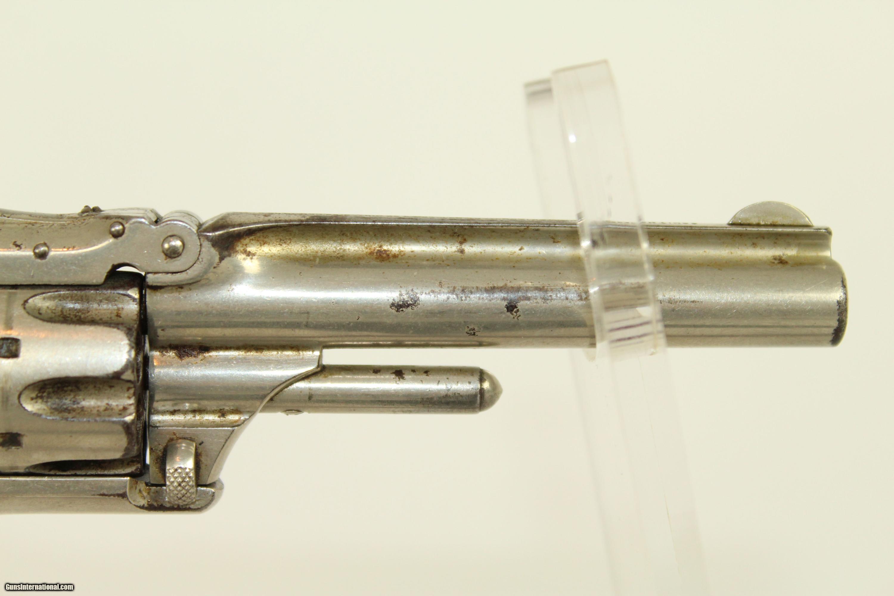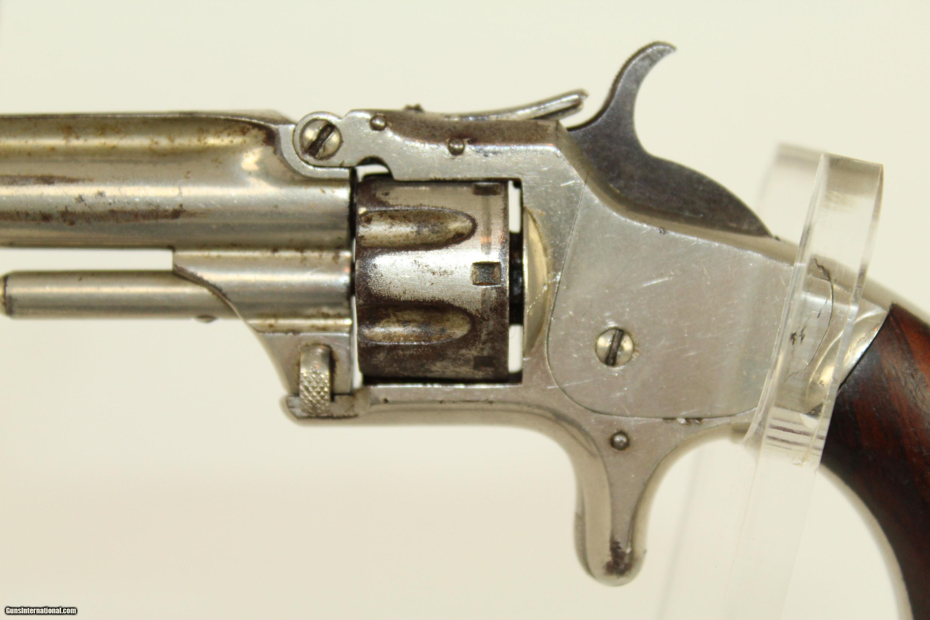 Description: OLD WEST Antique SMITH & WESSON No. 1 Revolver 19th Century POCKET CARRY for the Armed Citizen Here we present an antique Smith & Wesson Number 1 Third Issue Revolver, made circa 1873. The No. 1 was Smith & Wesson’s first metallic cartridge firearm. It utilized the idea of the “bored through cylinder”, which was patented by Rollin White and subsequently exclusively licensed by Smith & Wesson. This concept has forever changed revolving firearms design, and is the same idea used in revolvers today. S&W, via Rollin White himself, aggressively sued any patent infringers and were able to hold their monopoly on the American market for cartridge revolvers from about 1857 to 1870, whereupon their patent expired. The results were a very profitable business, a broke Rollin White, and a grudging U.S. Chief of Ordnance Alexander Dyer, who was still angry in 1870 about not being able to use the technology during the Civil War. The U.S. government ended up giving Colt their contracts since they valued the larger .44 caliber in the Colt 1860 Armies over the .32 caliber full sized No. 2 Armies. This small revolver is a 7-shot .22 rimfire. It was specifically designed to be a pocket gun, being very small and light. For those not wanting or needing a full-sized gun or for those who wanted a backup this revolver was the ideal firearm for the turbulent 19th century. The Third Issue was S&W’s final improved version of the revolver. The rounded birds head grips, fluted cylinder and round barrel made this an even sleeker variant of the revolver that started it all. This specimen is in fine condition. It retains almost all of its original nickel finish. All markings are clear and legible. The grips and the bore are in very good condition. The action is fine. Own the original! This is a legitimate antique and not a reproduction. Barrel is 3-3/16 inches in length. Caliber: .22 rimfire (short) The bore is in good condition and the action is fine. Overall condition as seen in photos. Very Fast. Very Safe. FREE SHIPPING WORLDWIDE. Delivered directly to your door by express mail! Guaranteed AUTHENTIC & Includes CERTIFICATE OF AUTHENTICITY. ancestryguns $800 #21703 SOLD Antique: Yes |